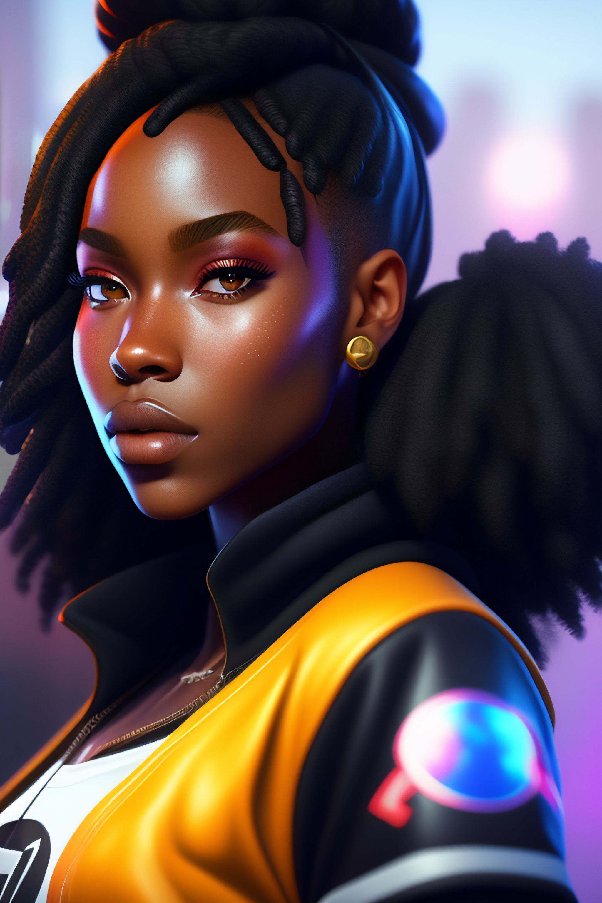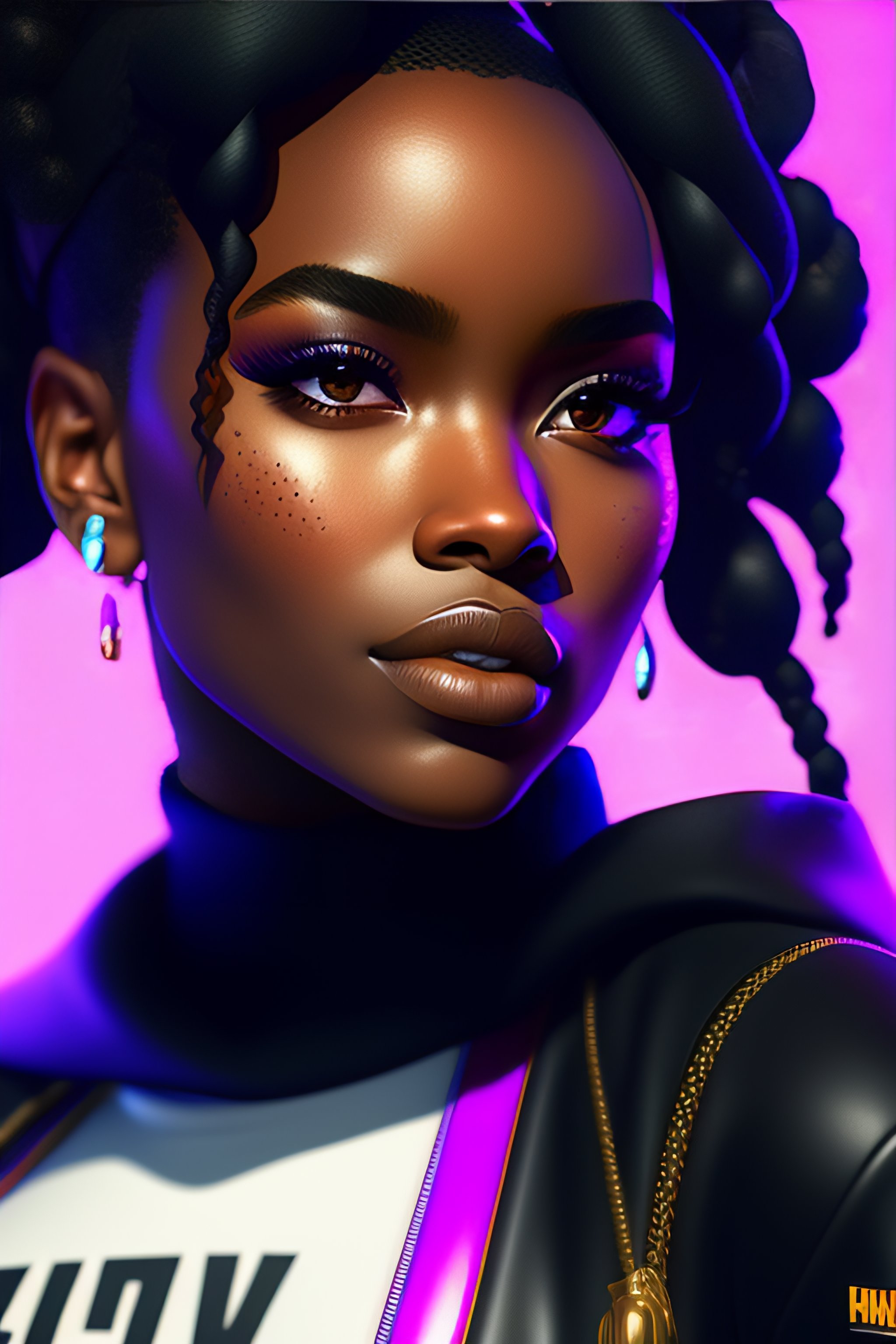 A black girl as fantasy personification of hiphop, character design, 9 0 s inspired clothing, unreal engine, highly detailed, smooth, digital illustration by artgerm, tooth wu, studio ghibli, sharp focus, artstation. musical notes, black power fist. a police car, makoto shinkai, global illumination, blender, maya 8 k