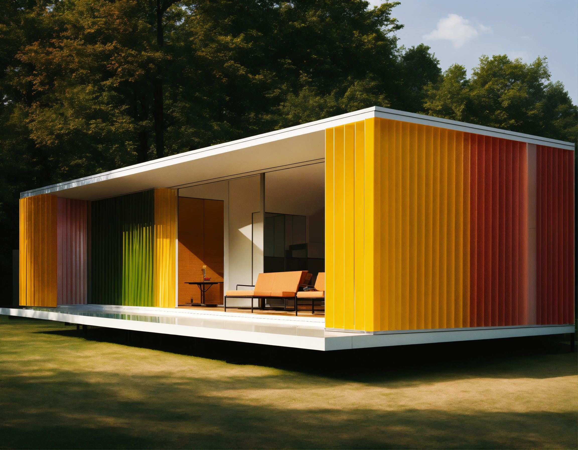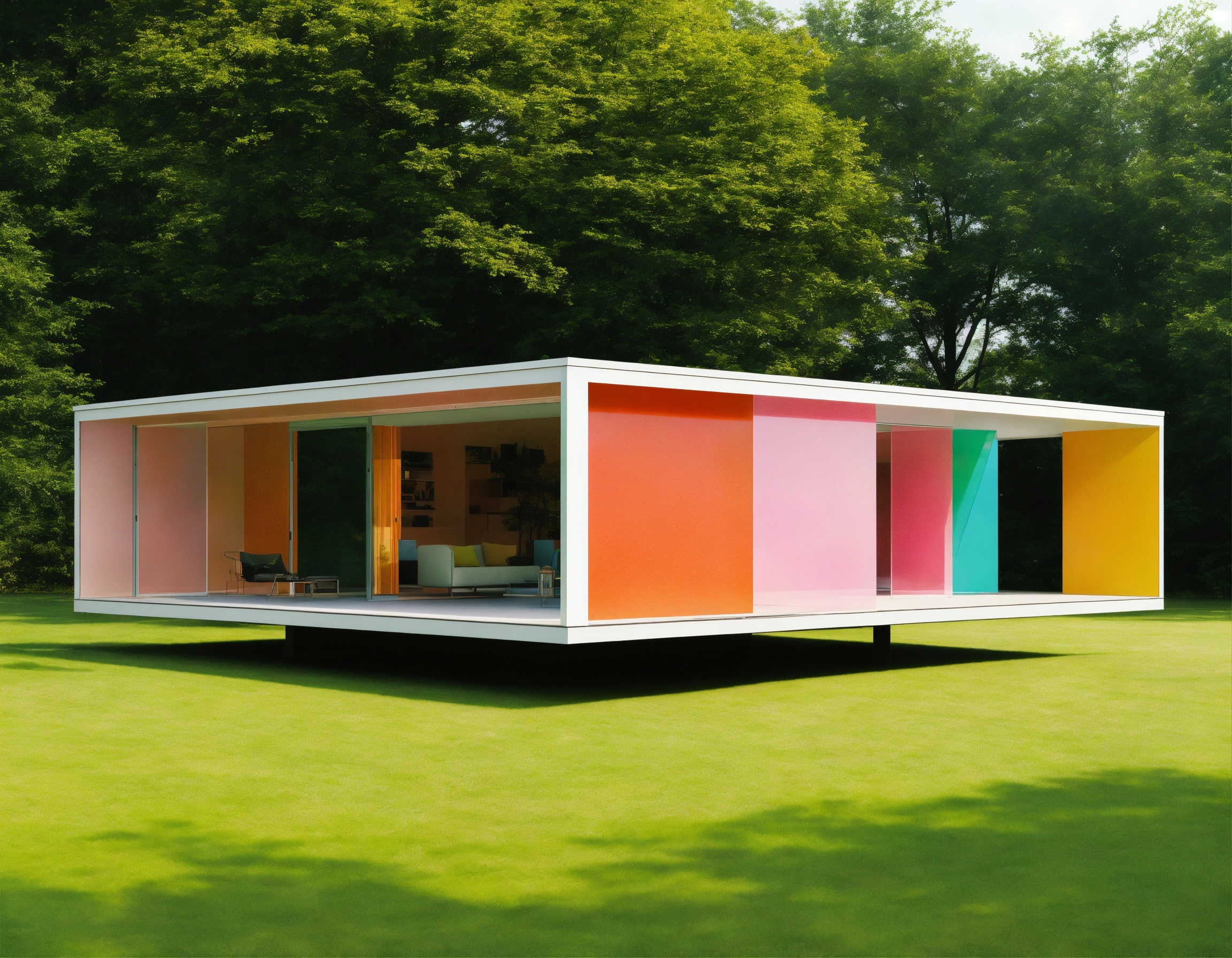 Ludwig mies van der rohe minimalist colorful plastic house photorealistic