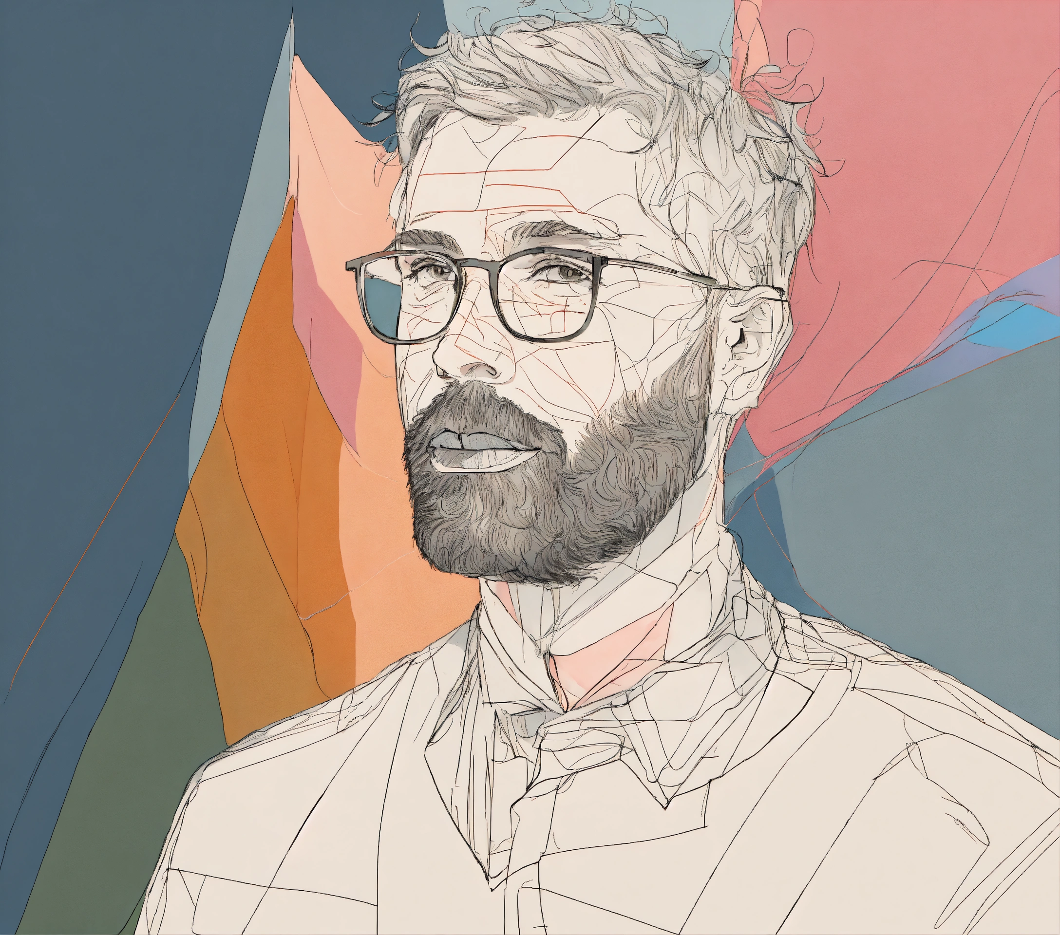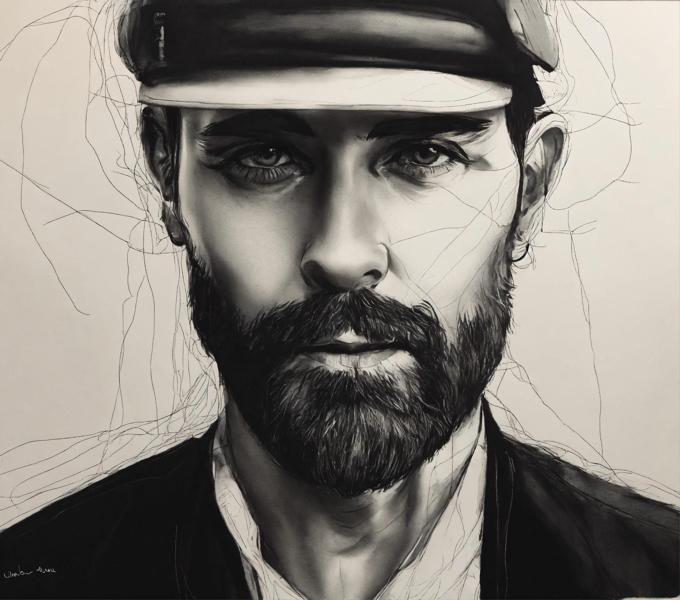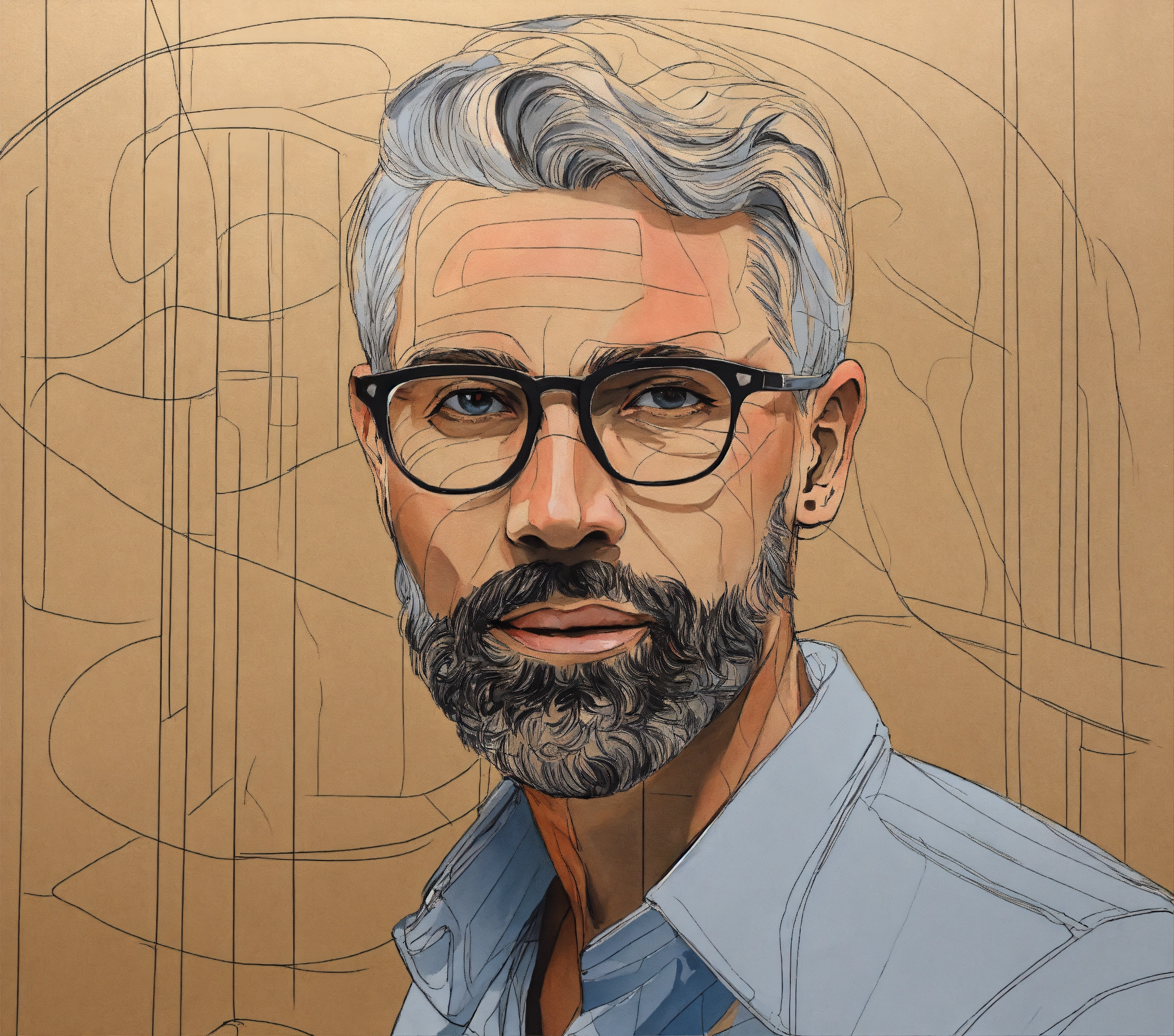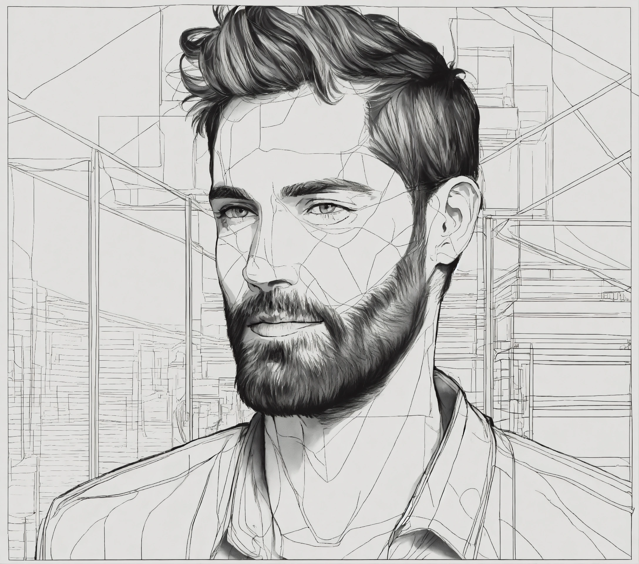 Un portrait en style "one line art" d'un homme d'environ 40 ans