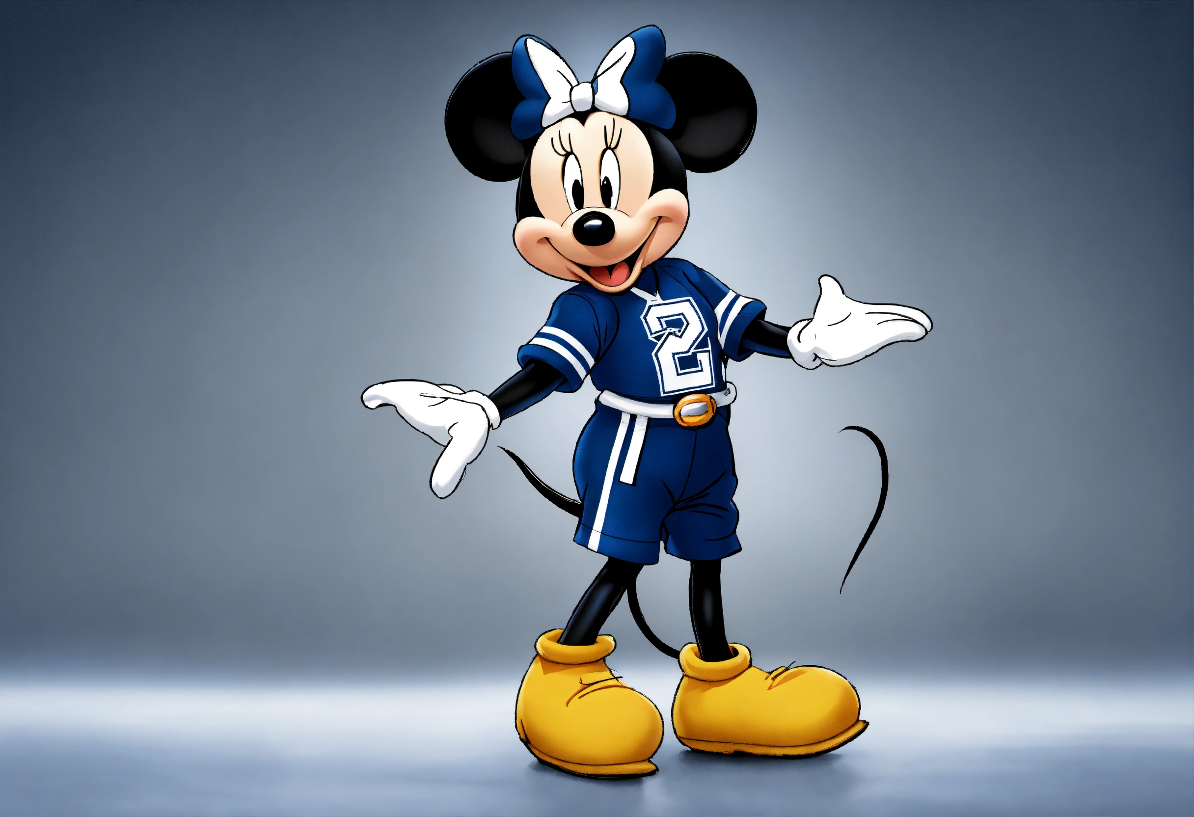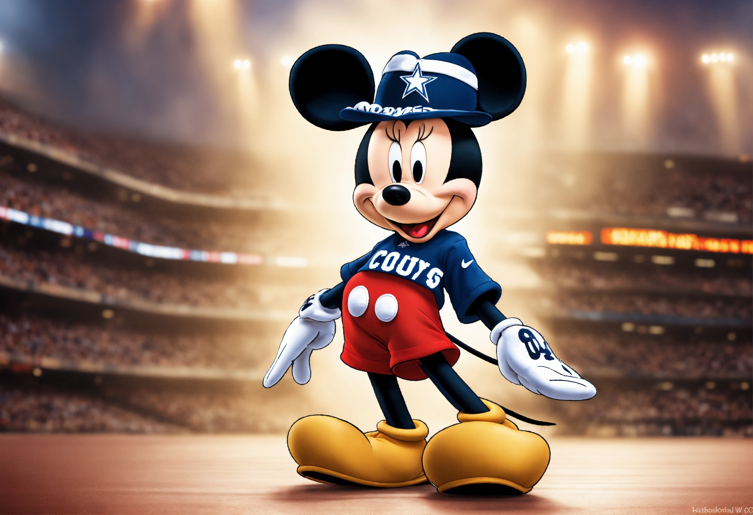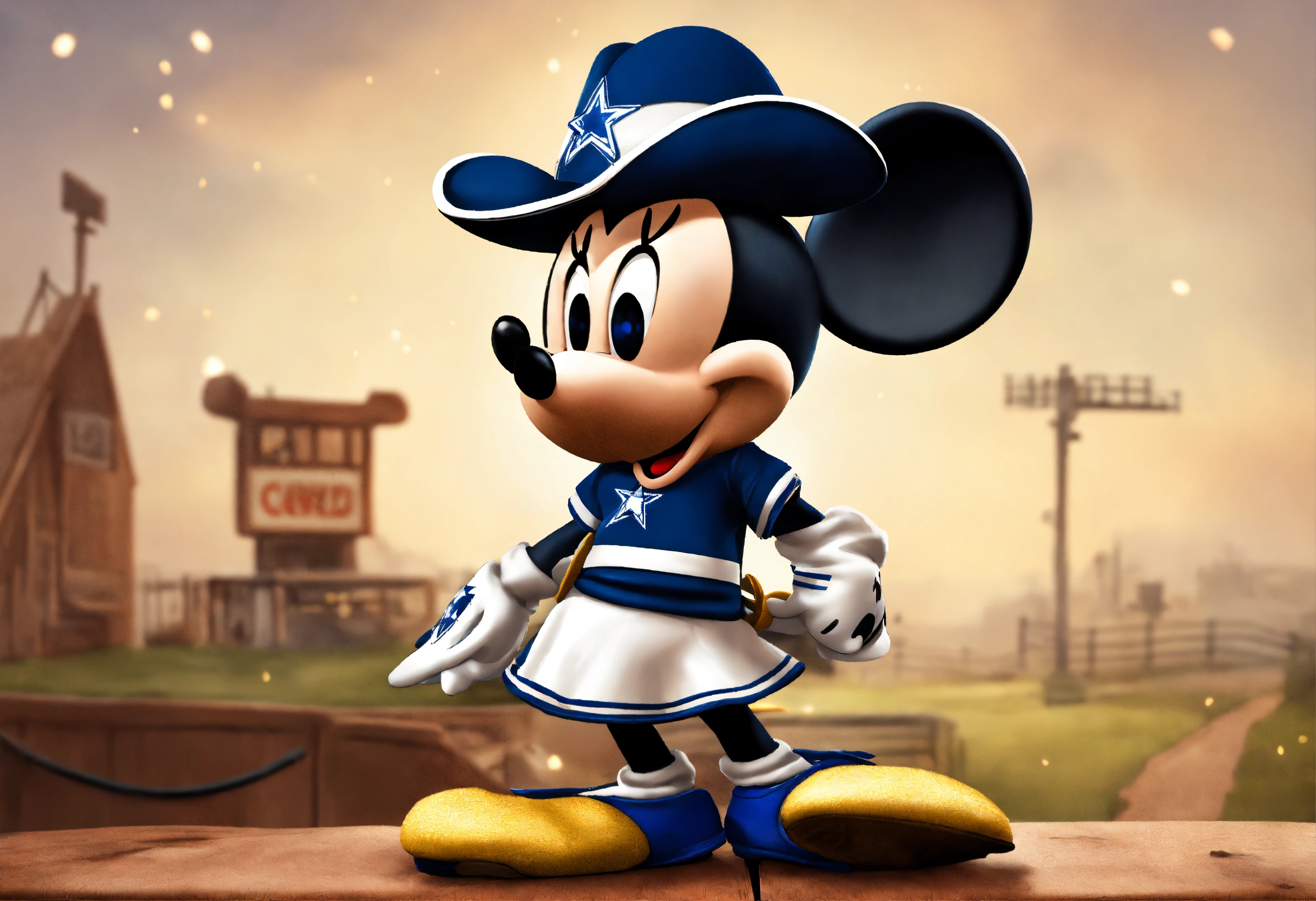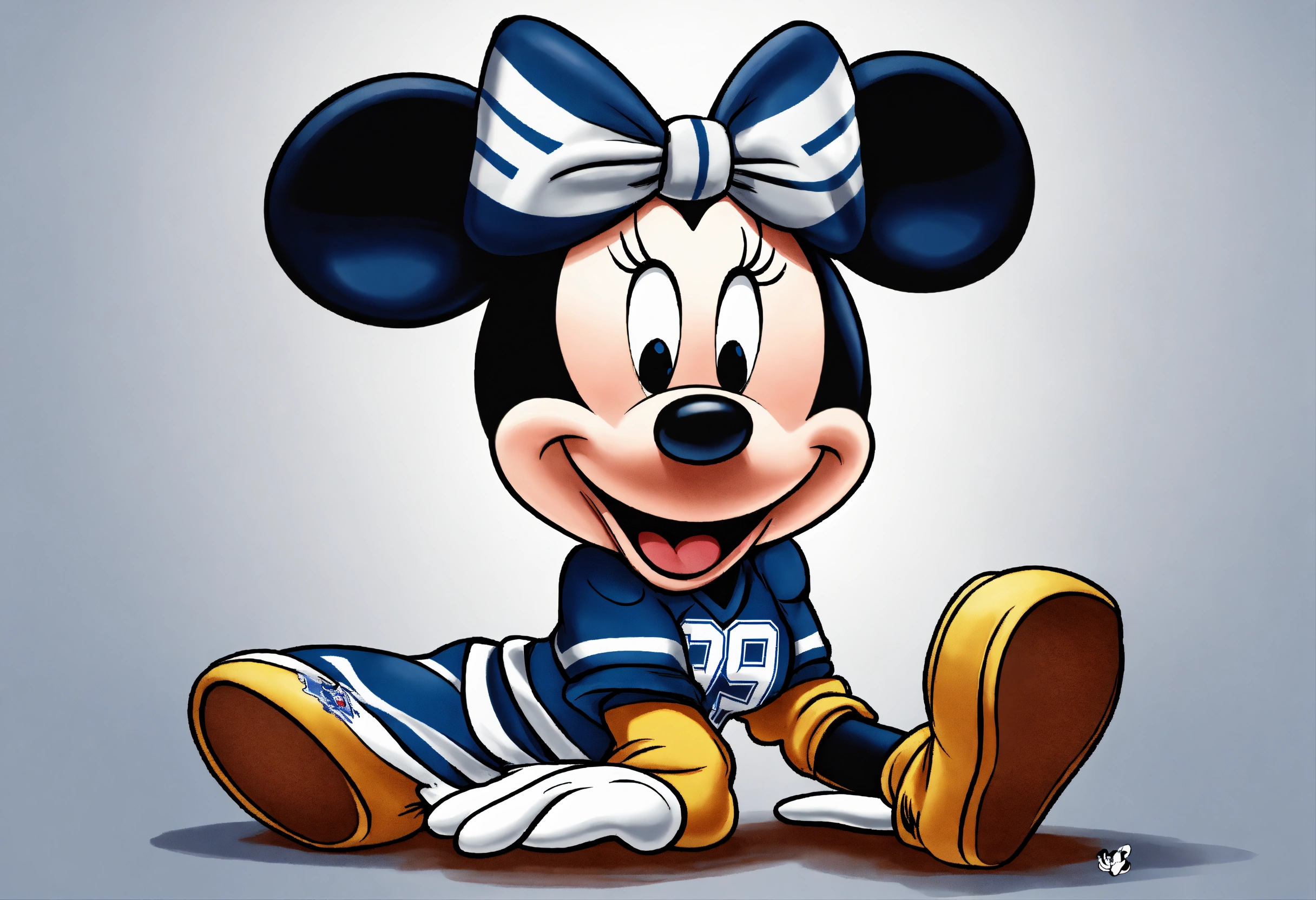 Digital art of minnie mouse wearing a cowboys jersey on a white background