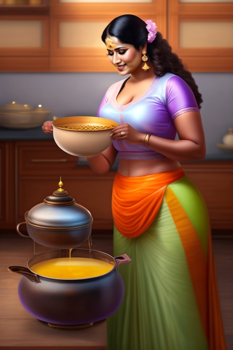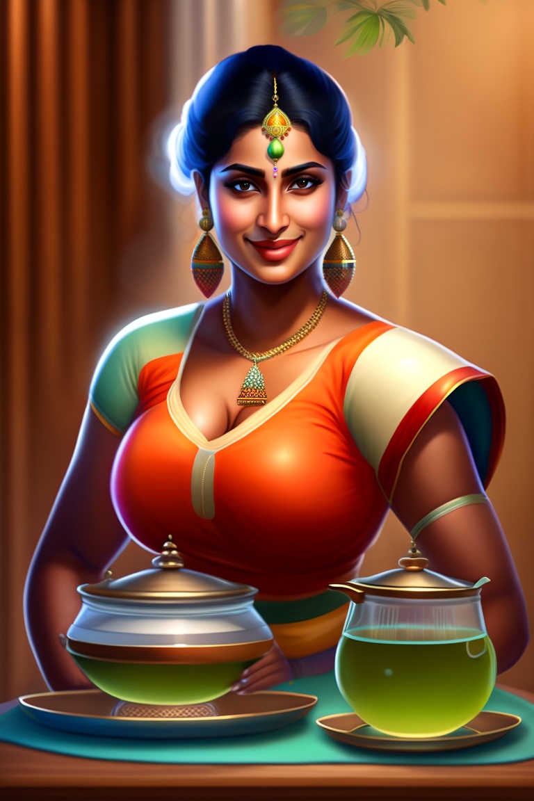 A indian beautiful bhabi making tea, big bra having a, good figure, wearing a sleeve less blouse and showing clean shaved armpit.