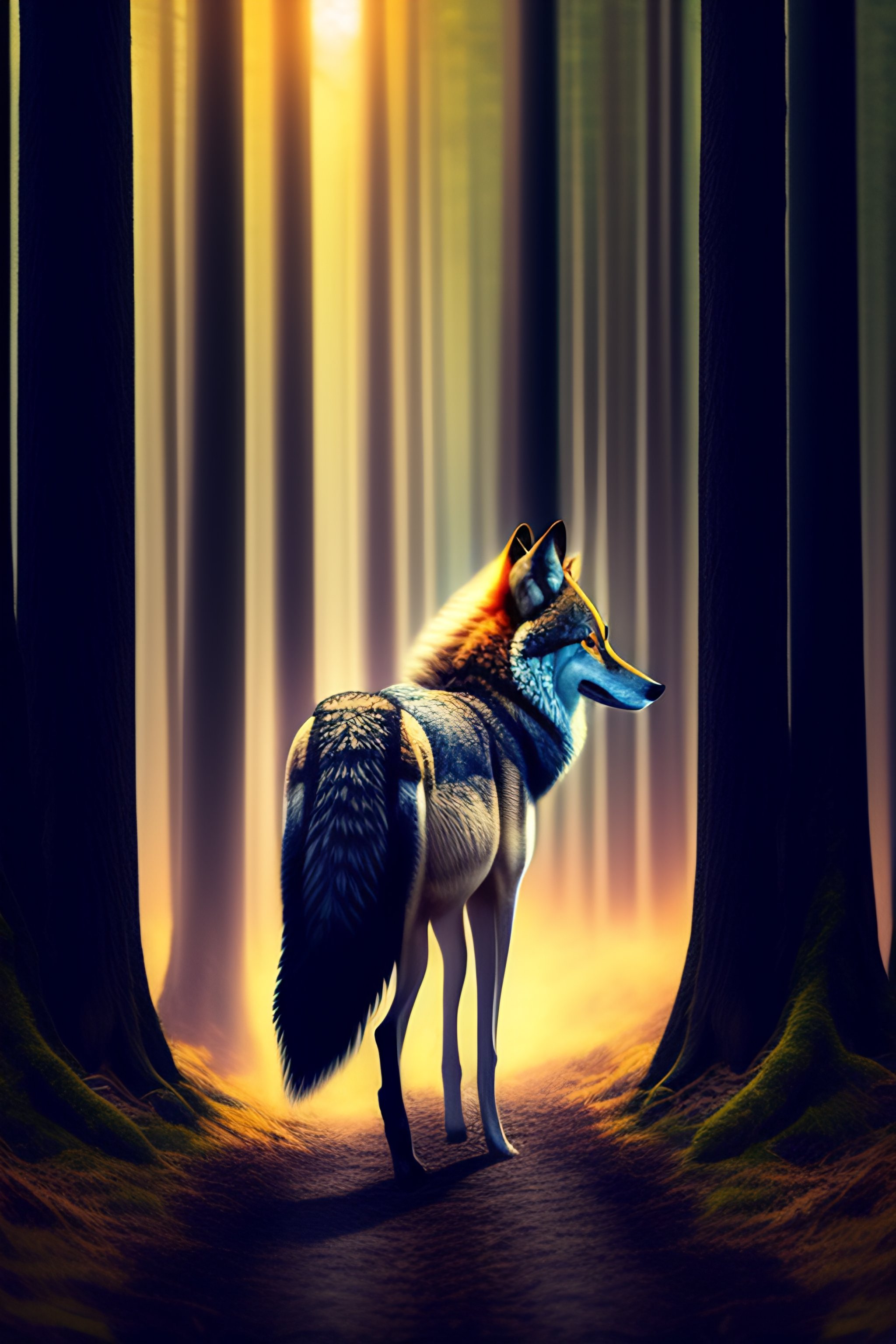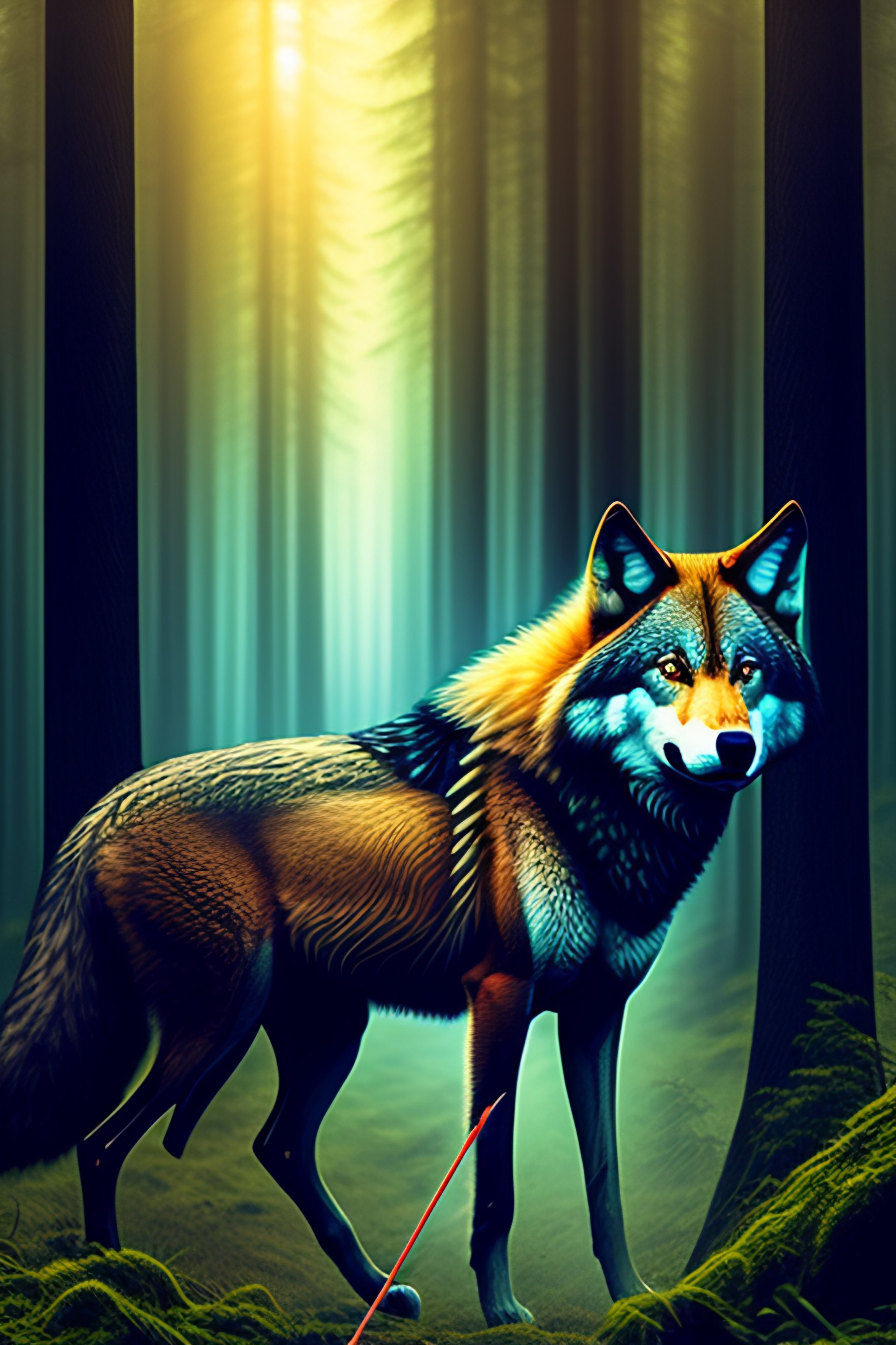 Wolf in the woods with arrows in his back fighting for his life modern