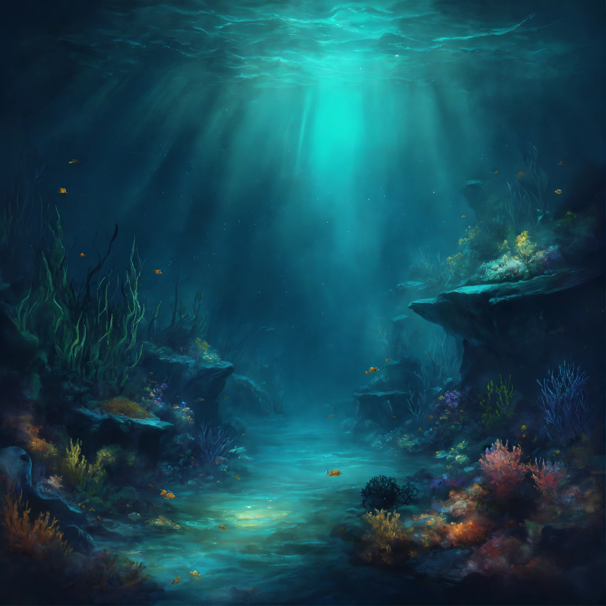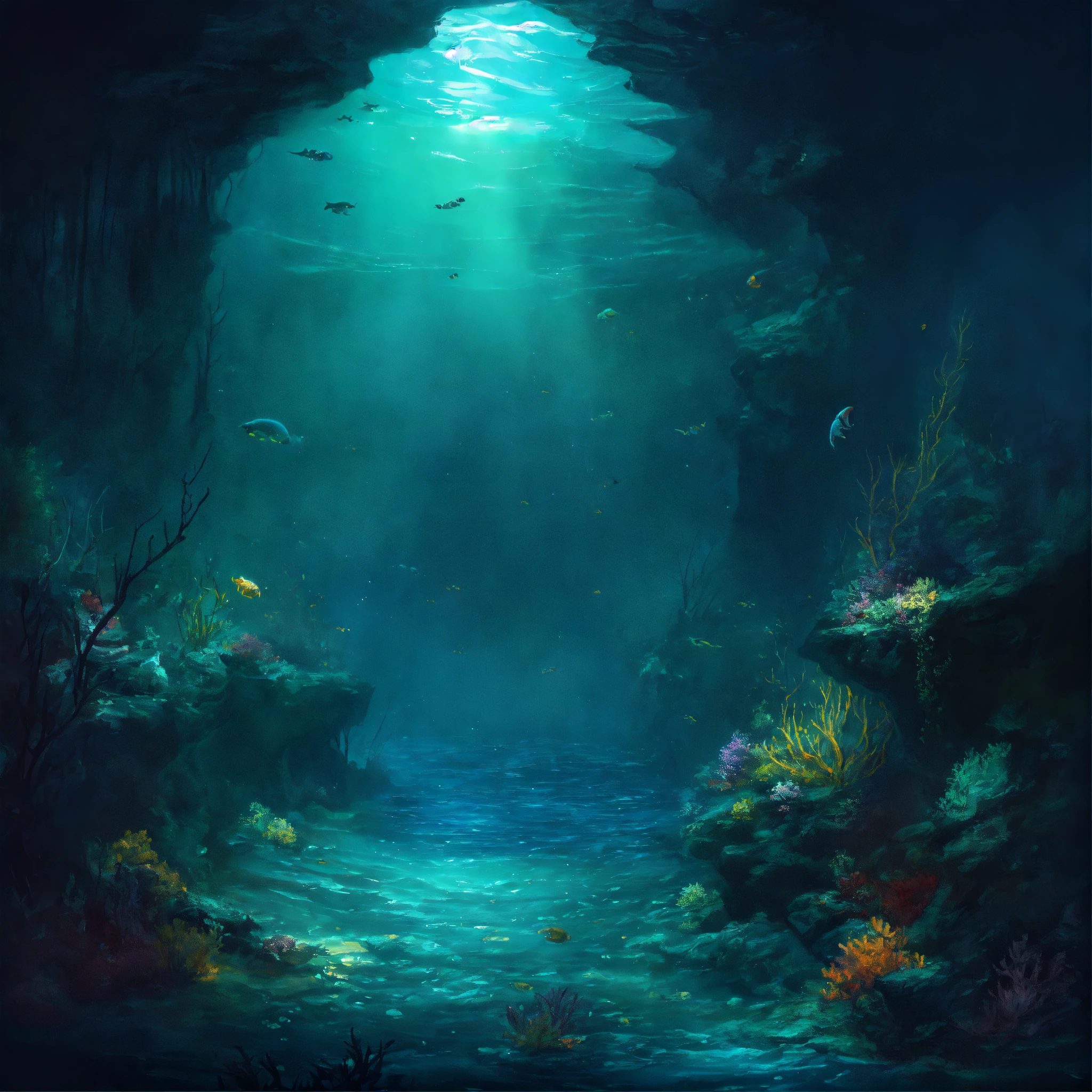 Concept art the dark deep sea abyssal ocean floor, dark, lightless, abyss, oil painting style, highly detailed, brush strokes, 8k