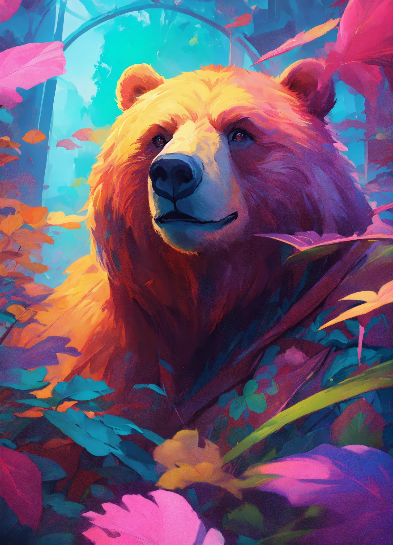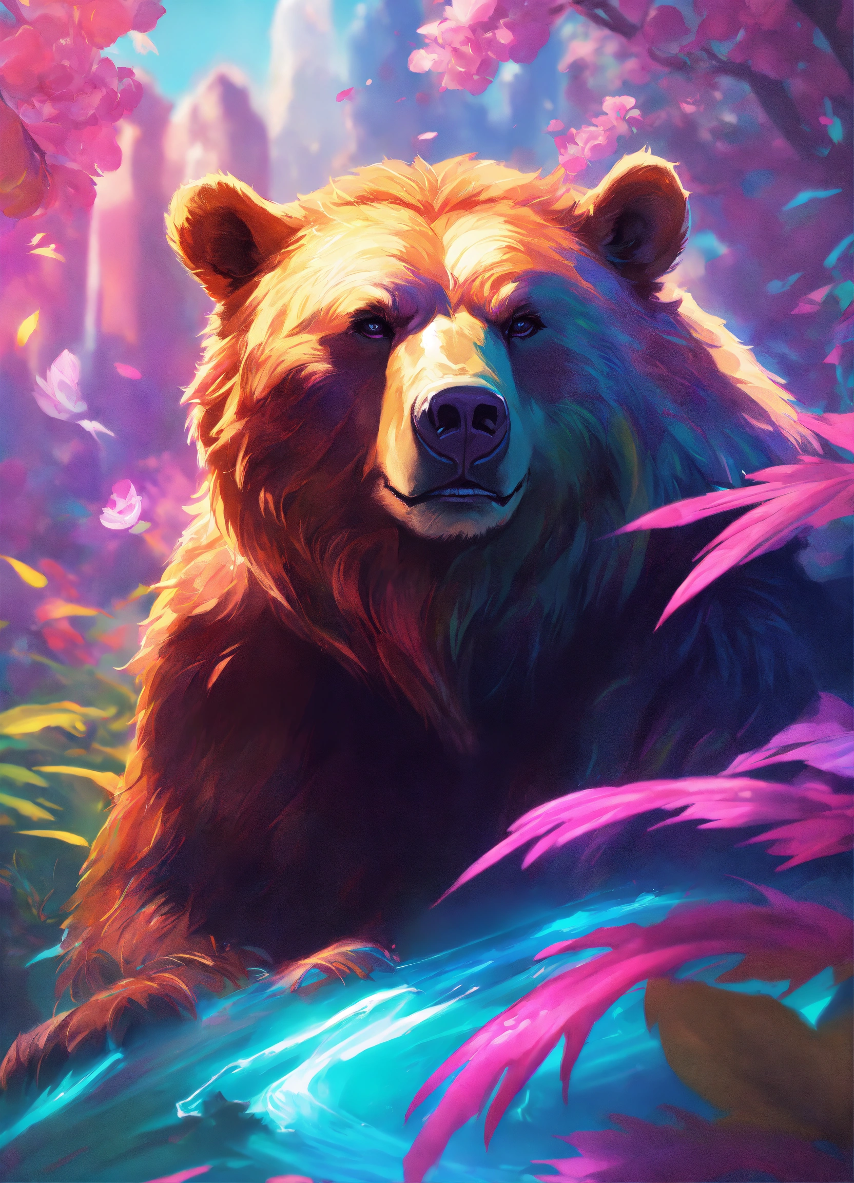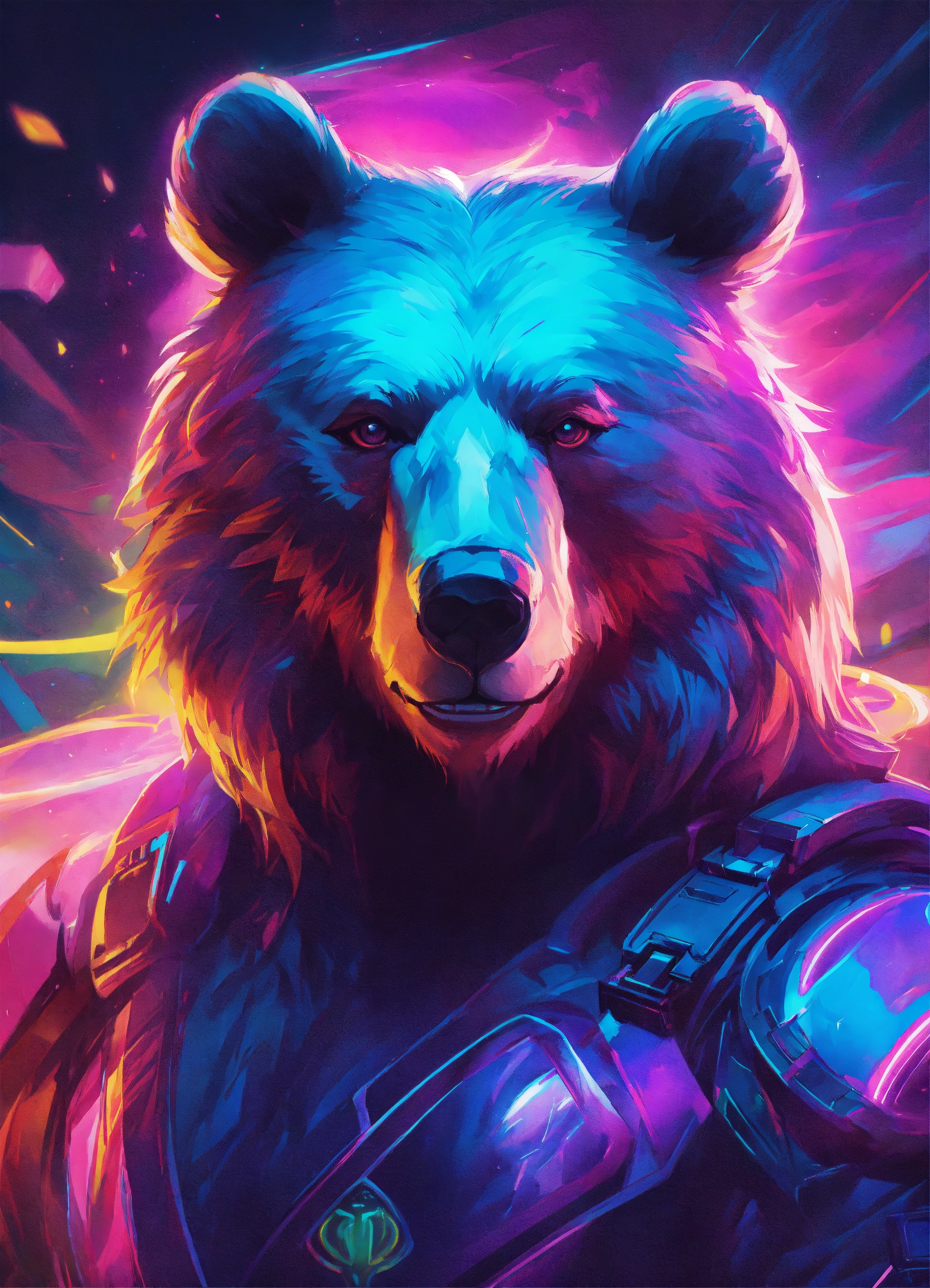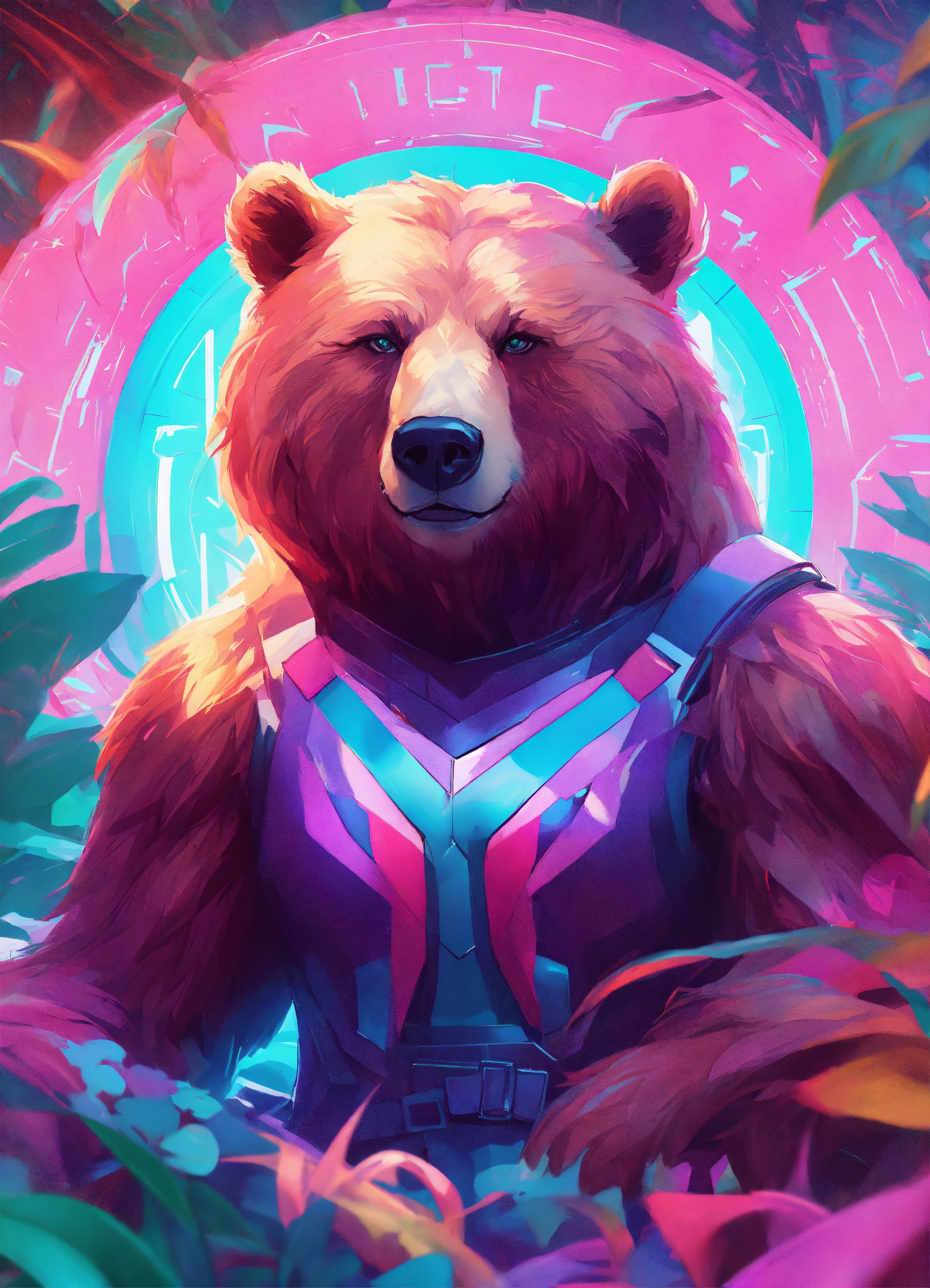 Bear, league of legends, vaporwave aesthetic, colorful, psychedelic, digital painting, artstation, concept art, smooth, sharp focus, illustration, art by artgerm and greg rutkowski and alphonse mucha, wide shot, nikon 14 mm