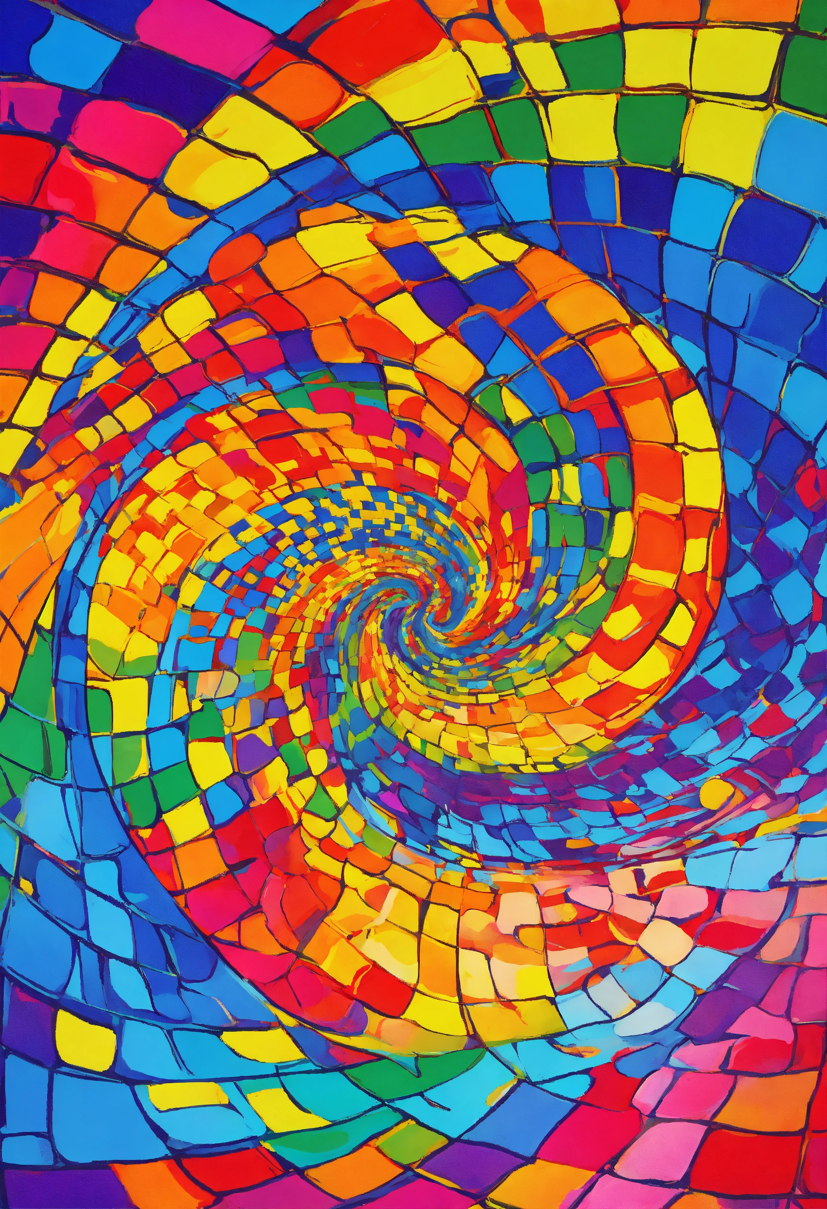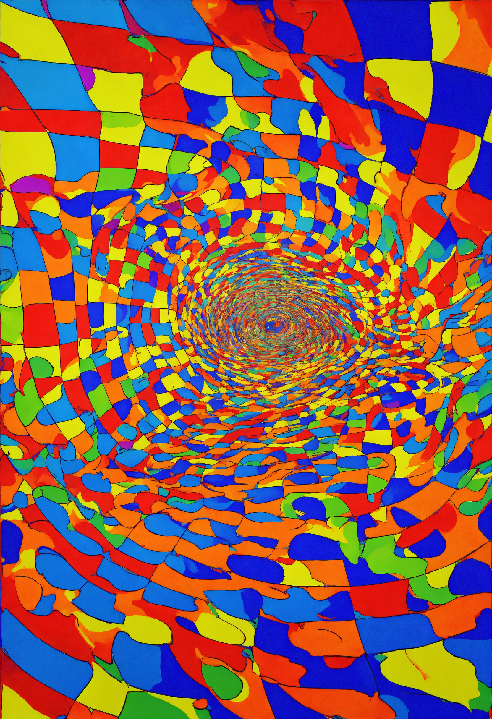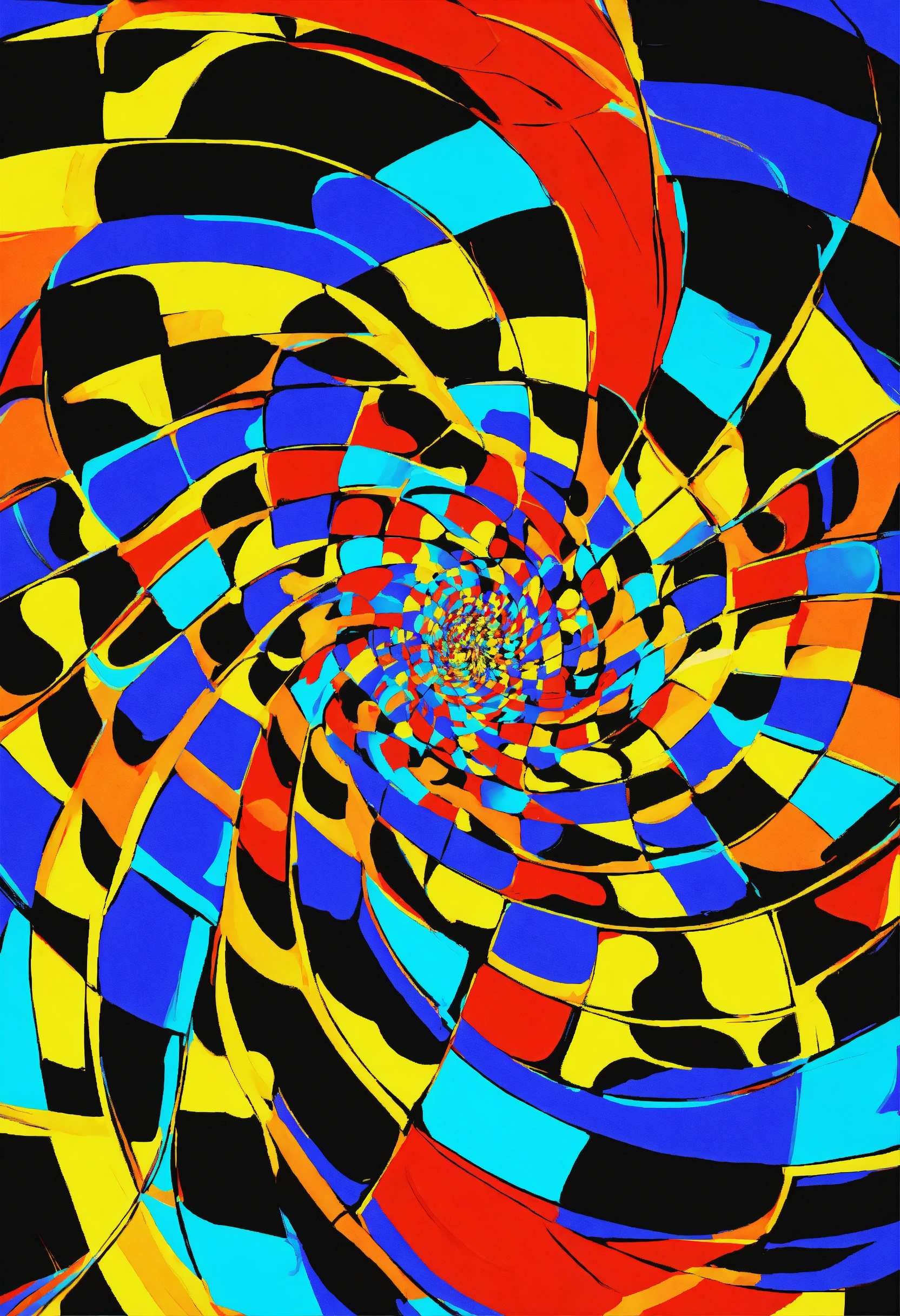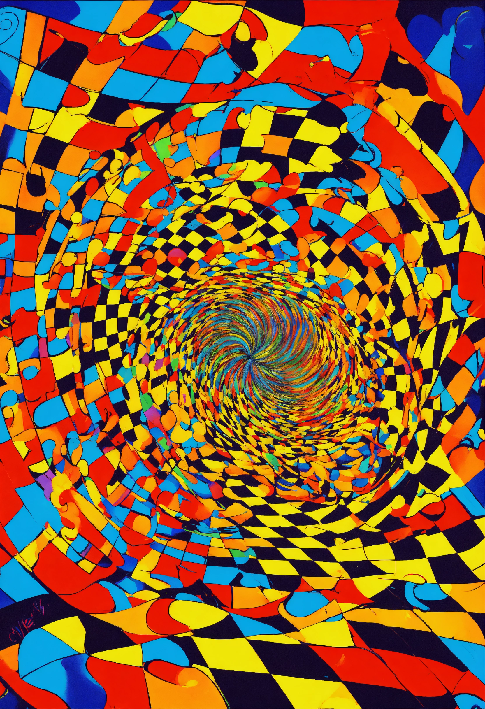 Vortex swirl psychedelic checkered flag in the style of peter max