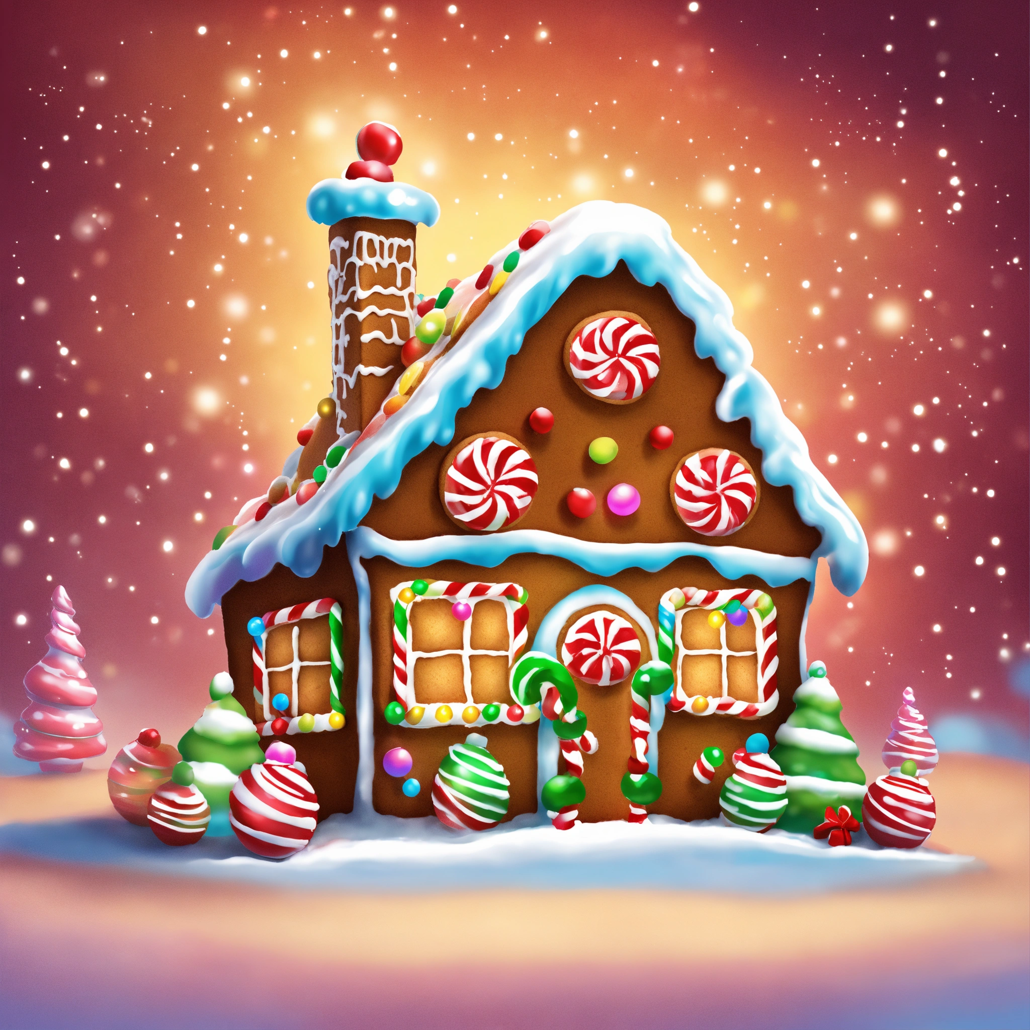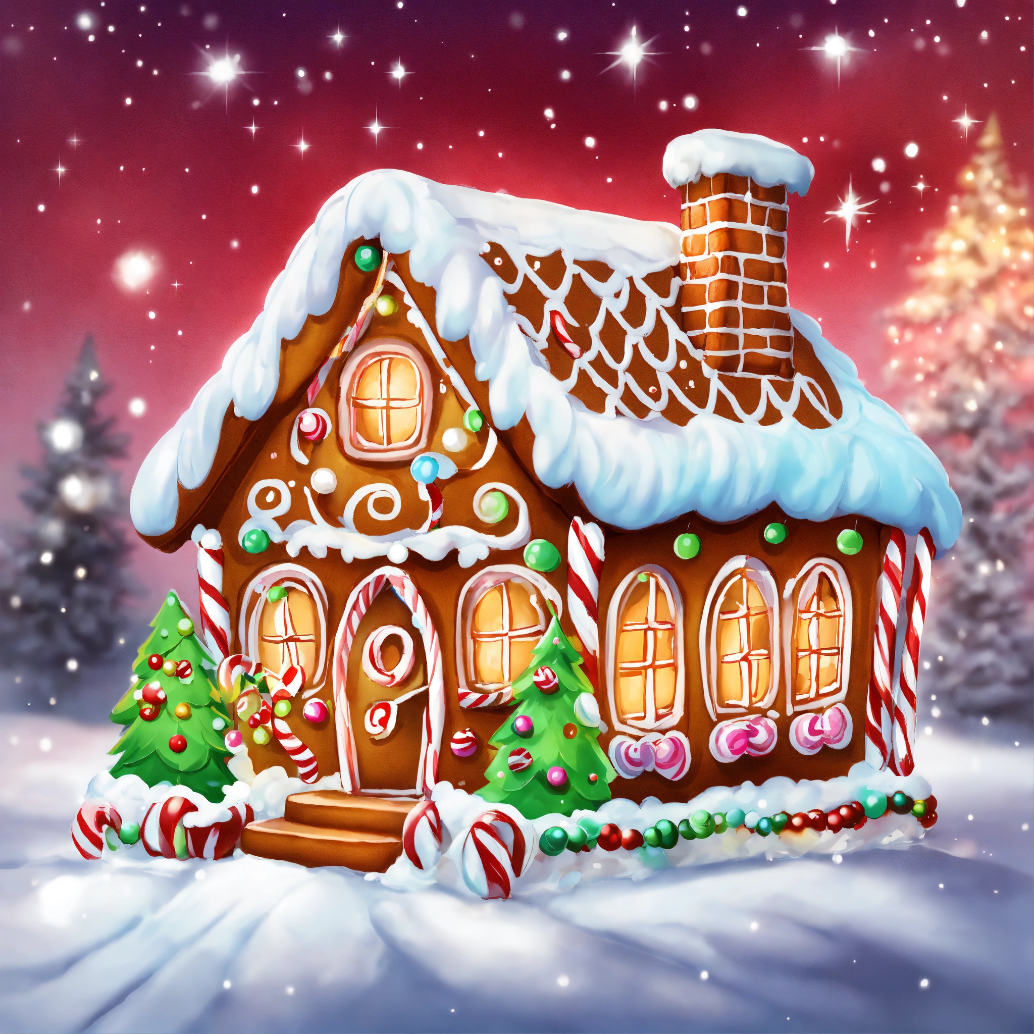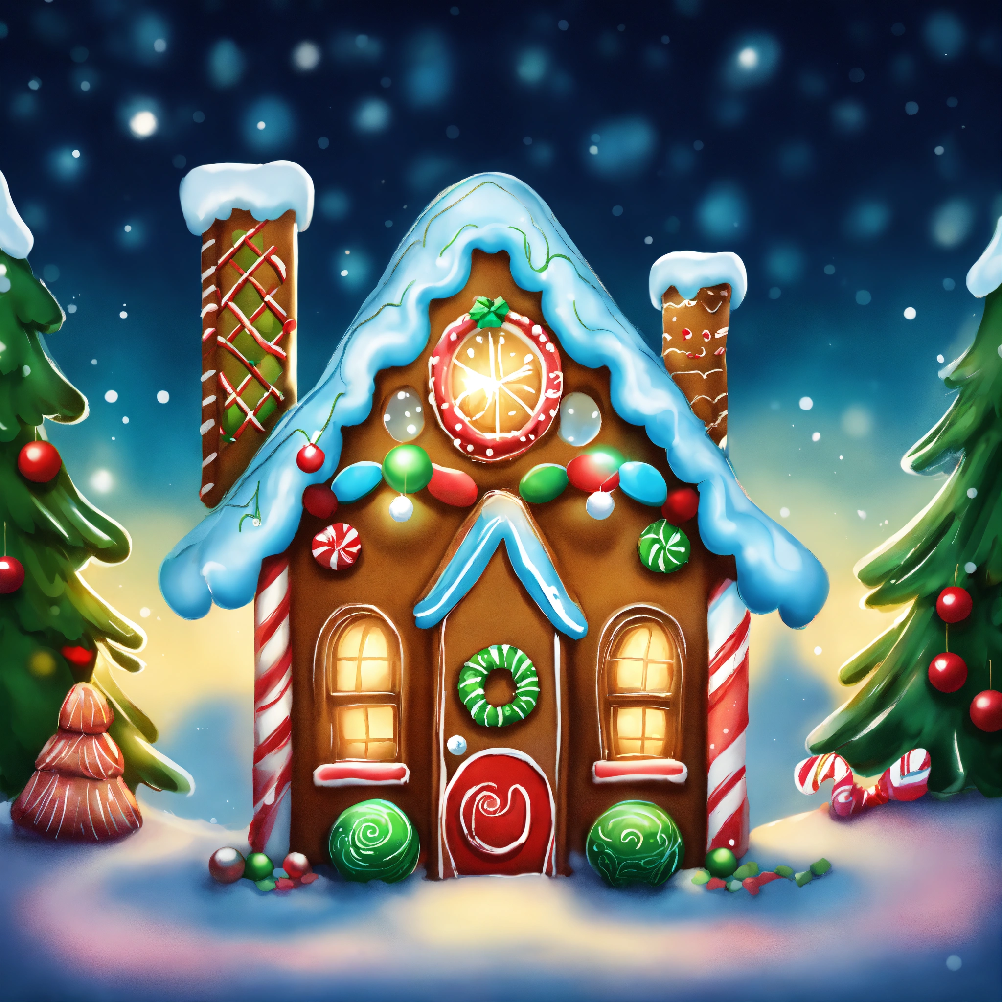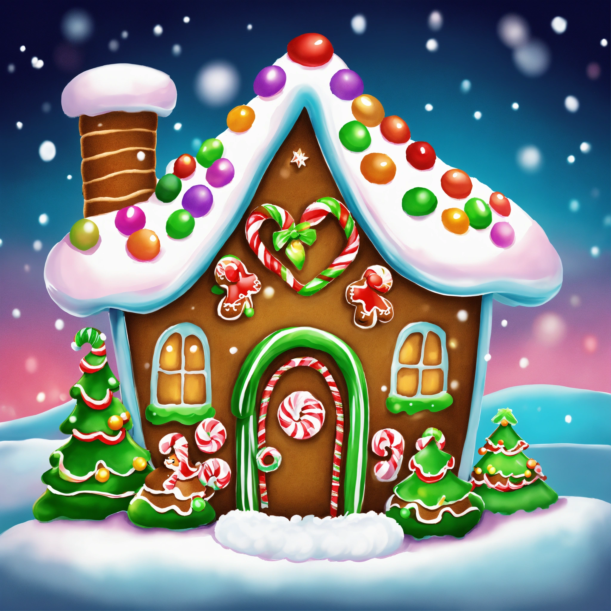 Air brush art of a digital illustration of cute christmas gingerbread house whimsical