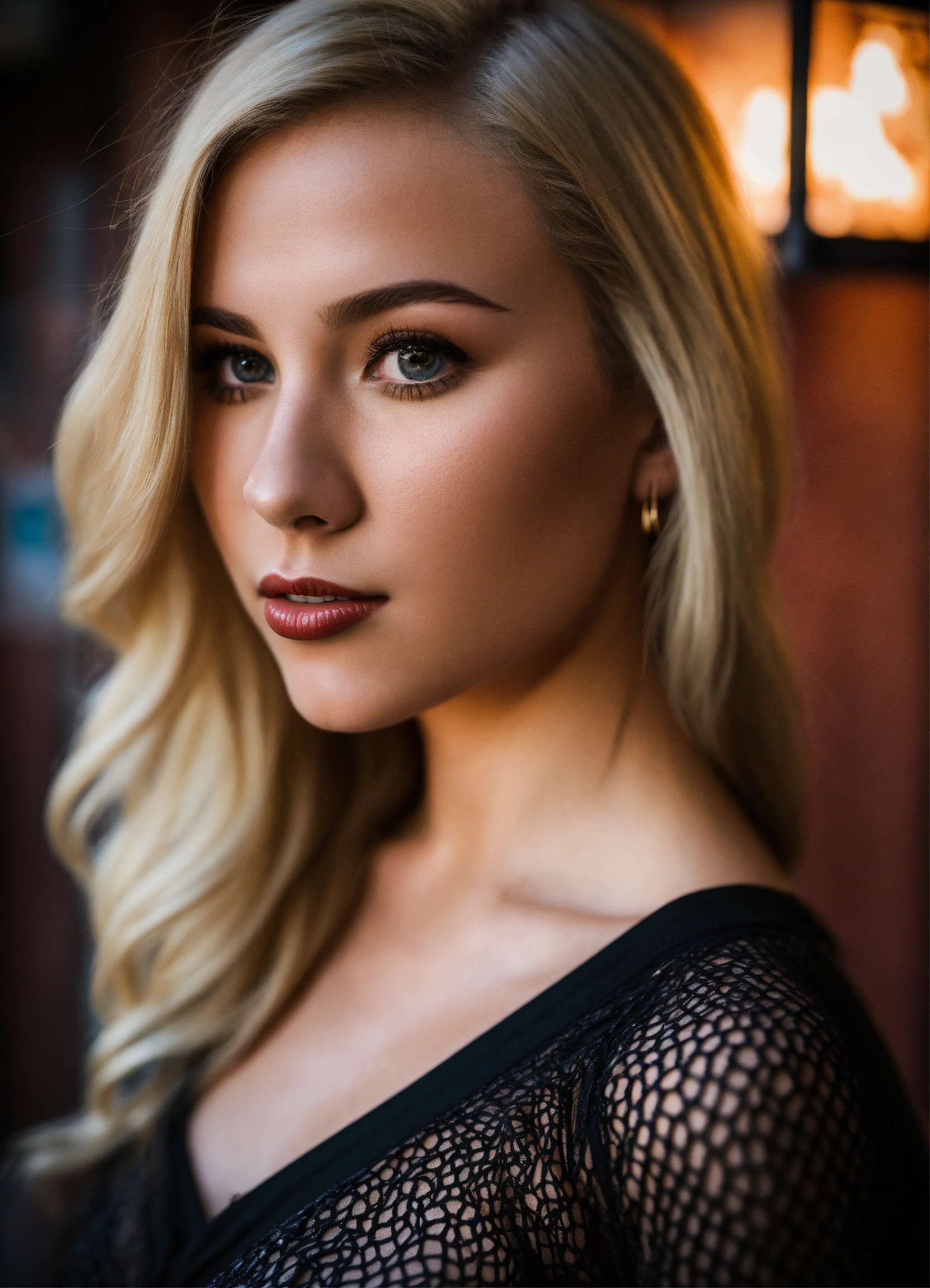 A real photo of a hot 27 year old blonde girl, she is wearing a very tight black fishnet, she stands in an old western town