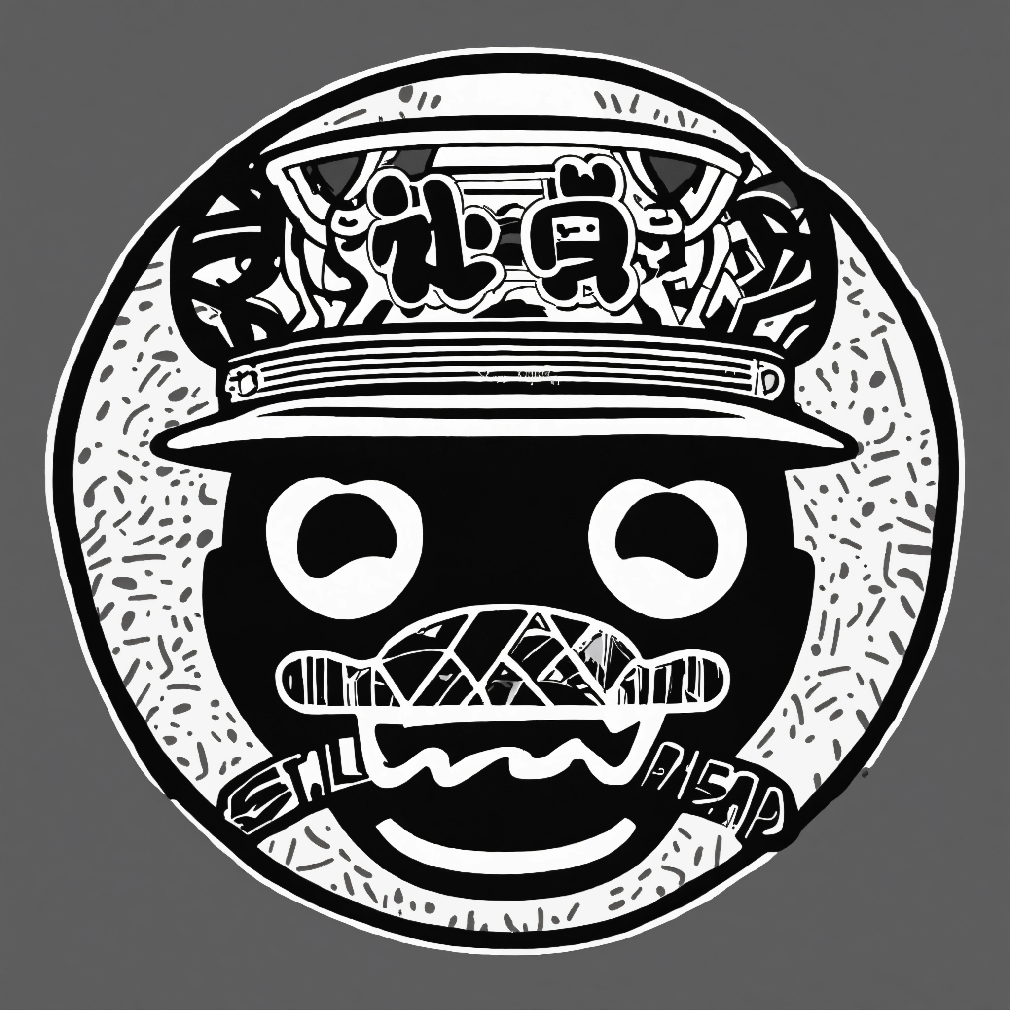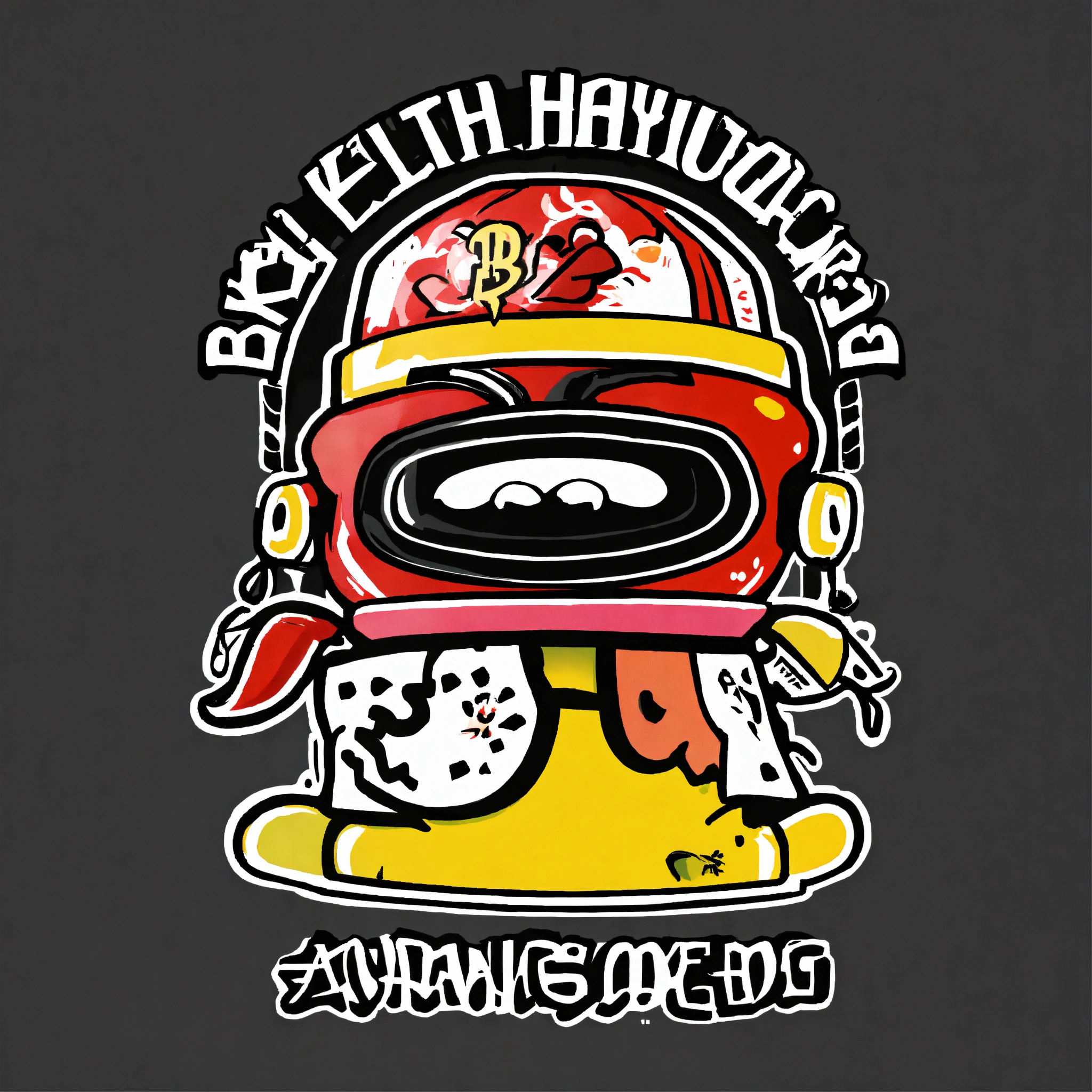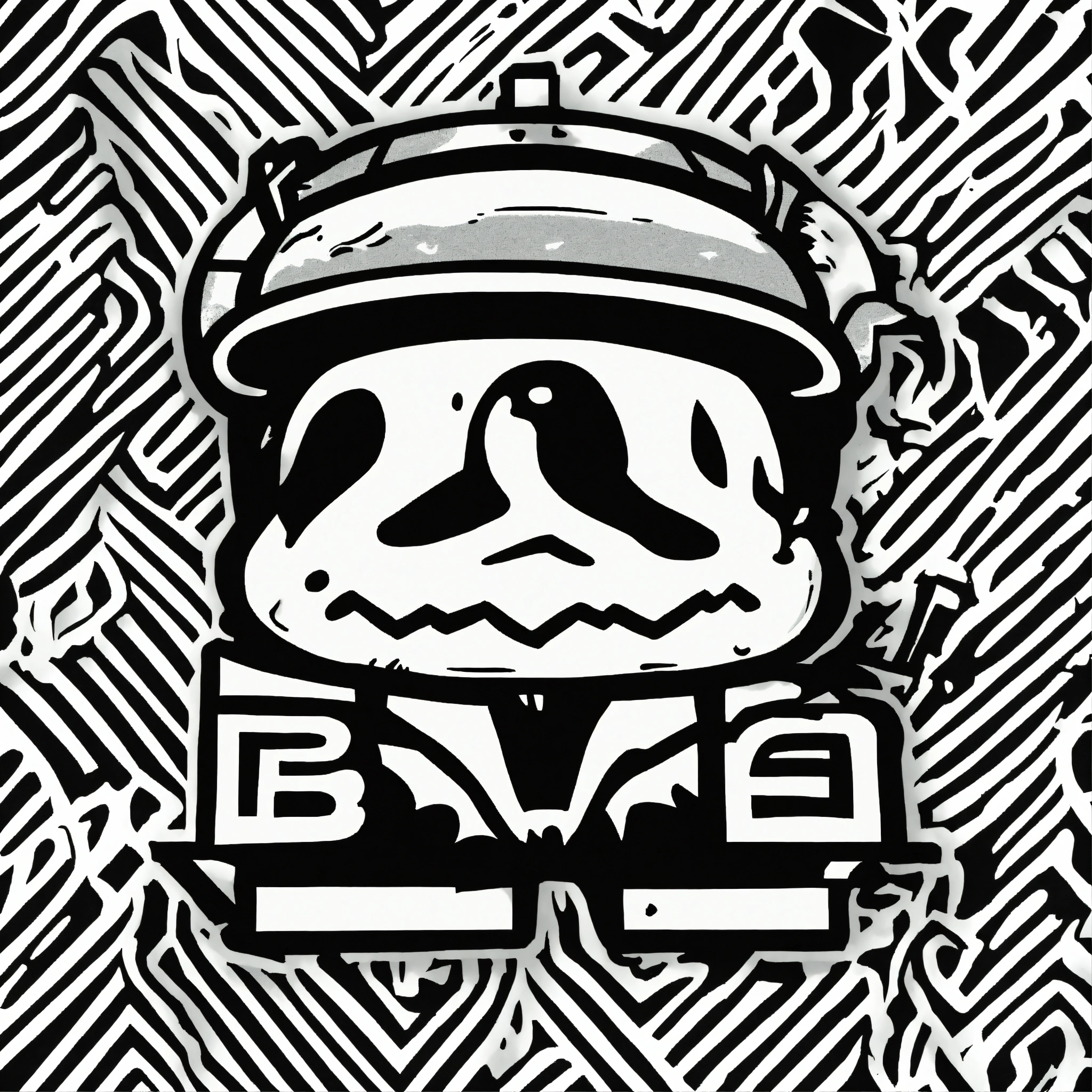 Keith harring style japanese bape graffiti cartoon logo design of a logo bape mascot, nigo boondock's inspired flat vector, fashion company logo, andy warhol style, color black and white, white background.