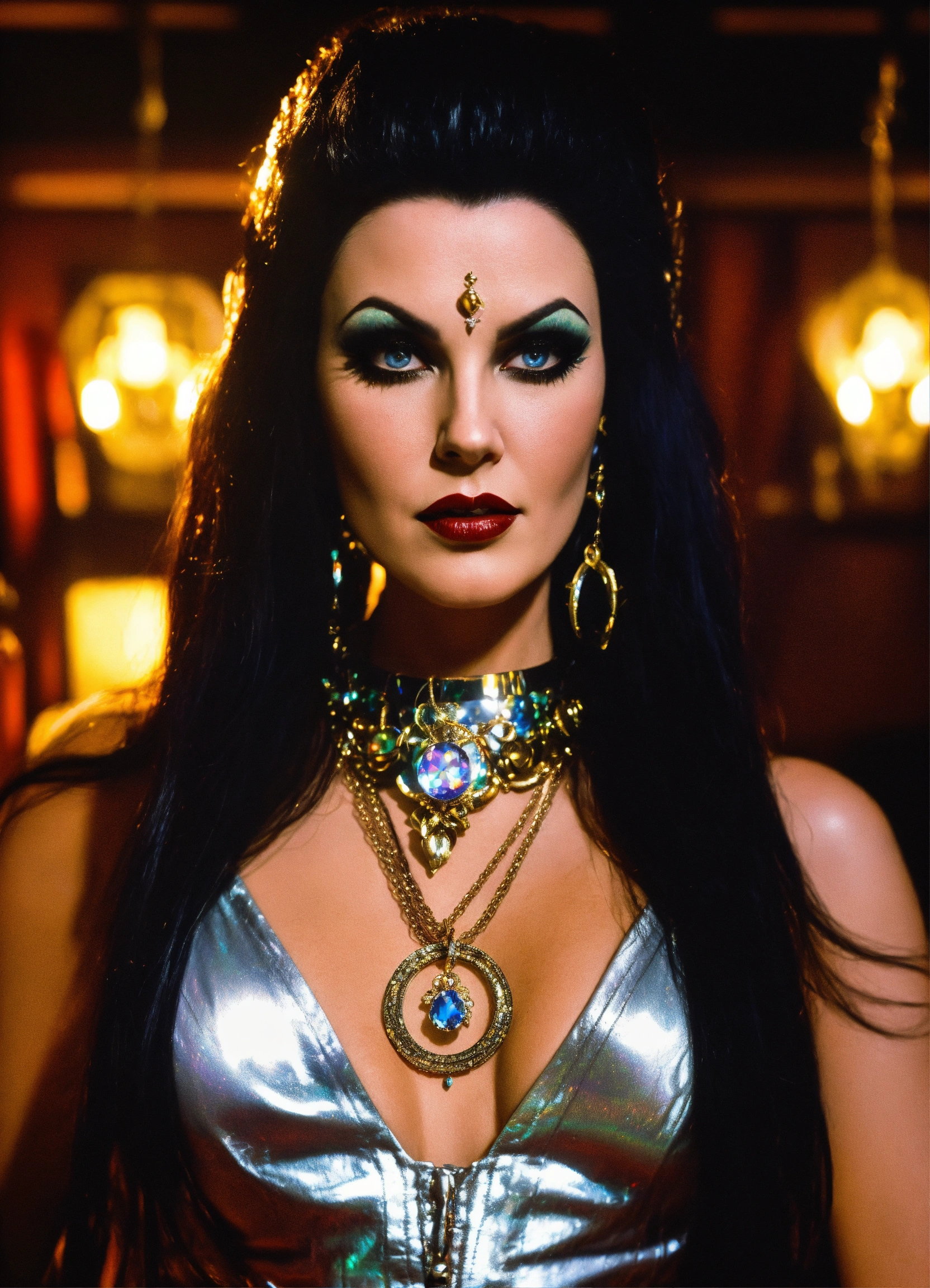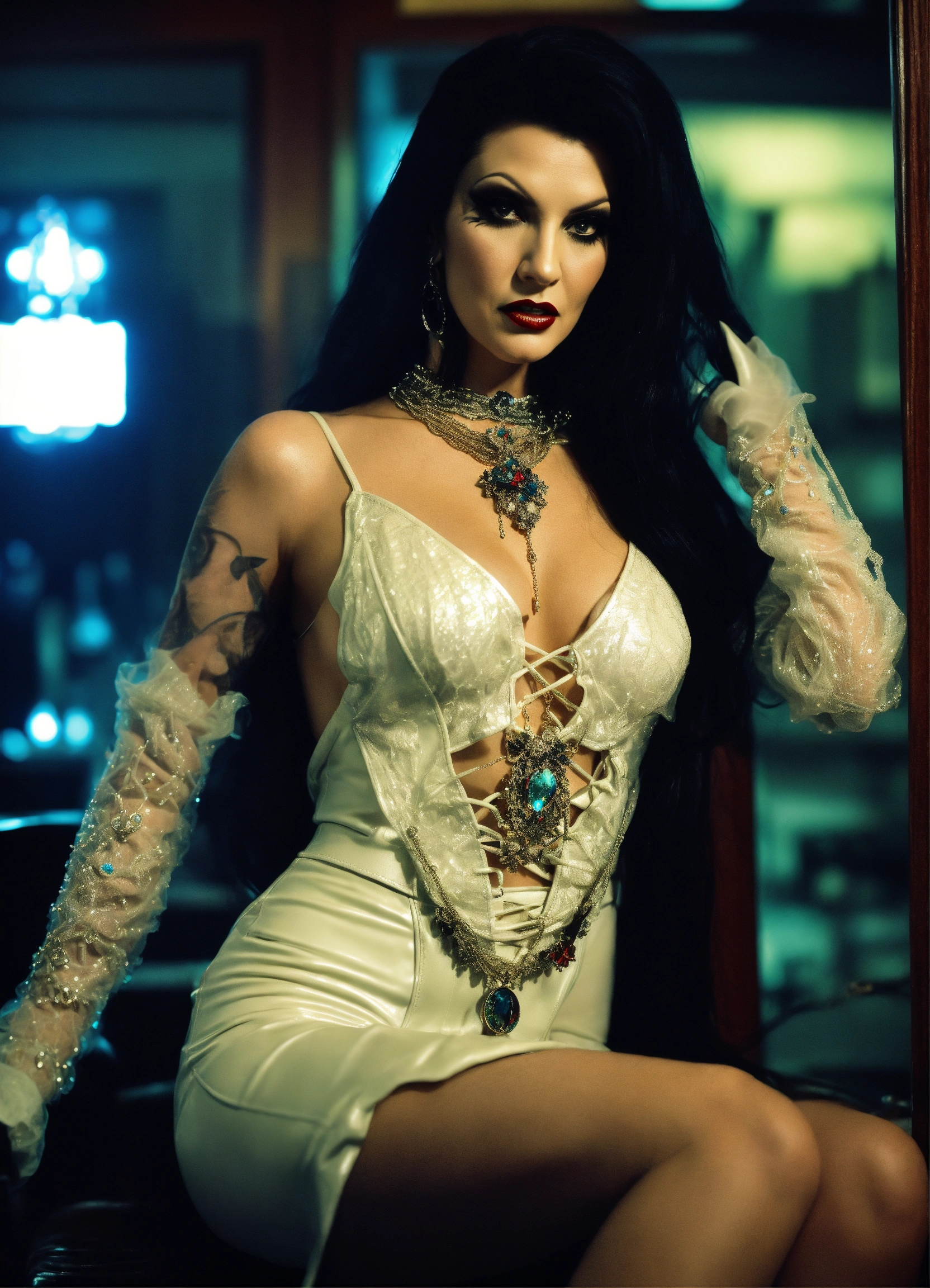 Extremely powerful very evil satanic occult demonic goth hypnotist "lily munster julie strain evilynn vamperilla elvira", wearing white holographic leather outfit with boots & "entrancing jewelry" using a small pendant necklace to put you in a trance with her hypnotic doom gaze at your desk at work, her powerful eyes bring you to your knees, mindless & helpless, most powerful sorceress in existence, obey without question, her power immeasurable, the most powerful witch in the office taking control of a bank manager's mind at a local bank under her powerful spell bringing him to his knees toying with her hypnotizing pendant and manipulate his weak mind with absolute control, corporate takeover with a snap of her gloved fingers your thoughts lost in the depths of her eyes with no escape her mind puppet