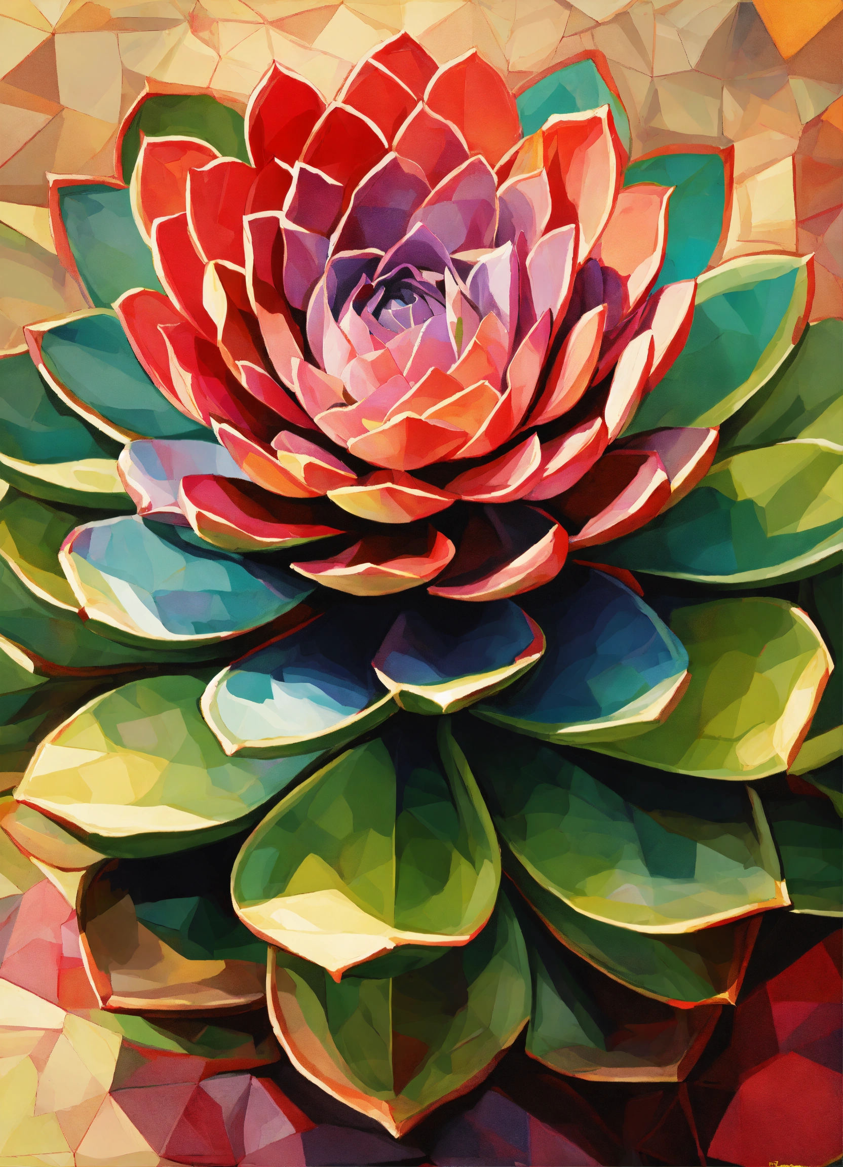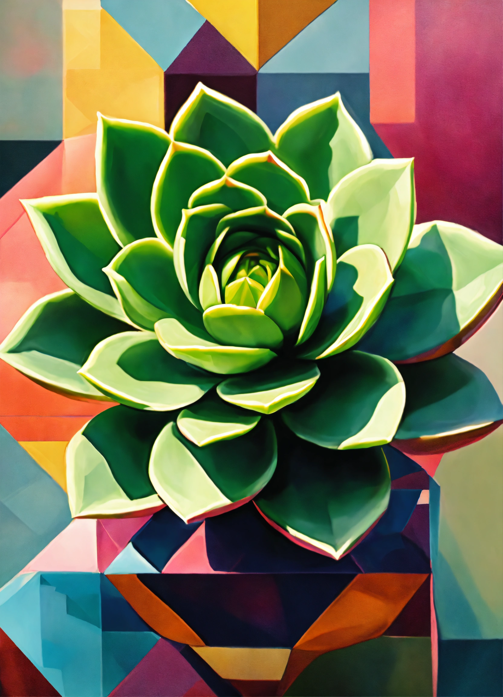 Geometric colorful succulent realistic cubist art