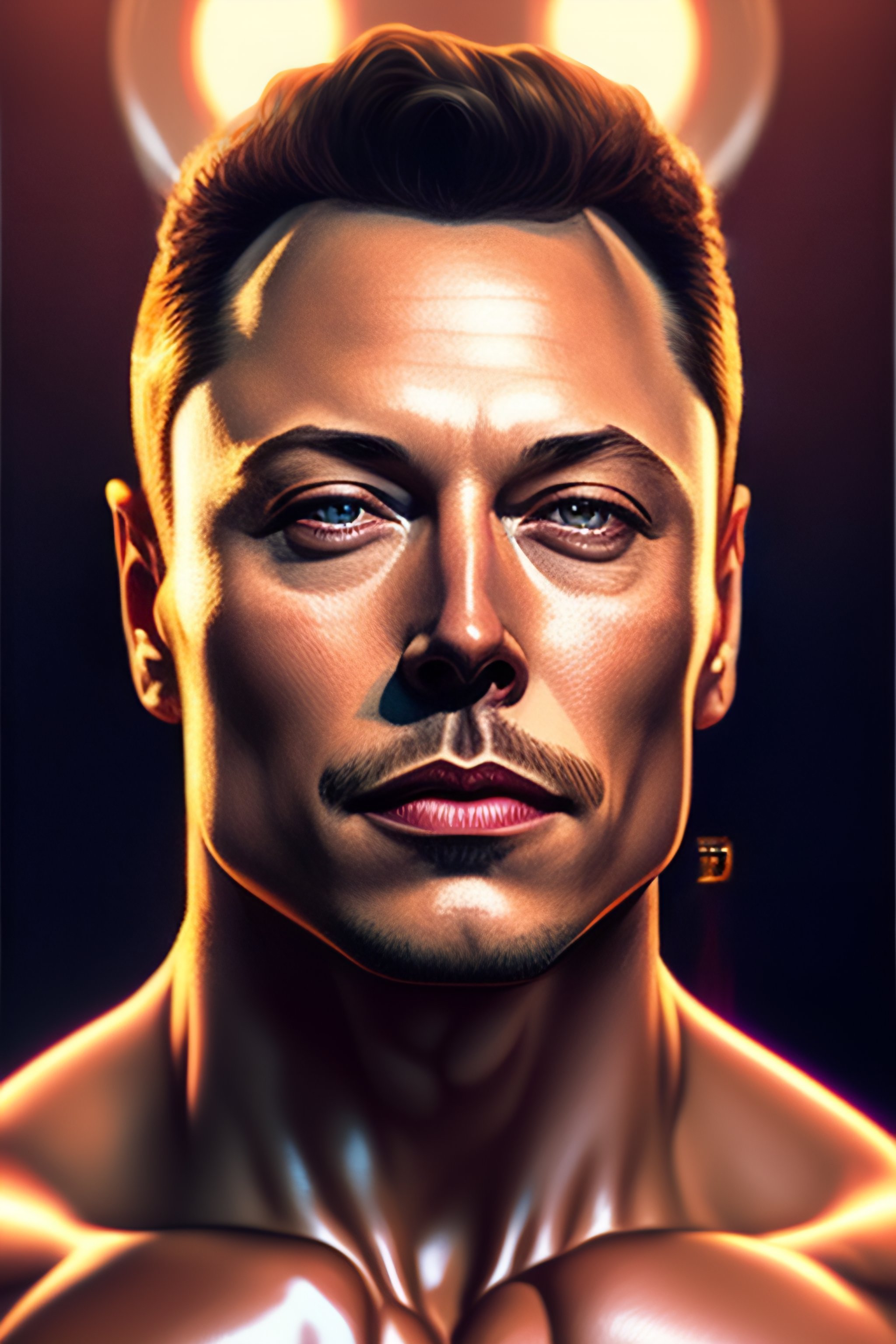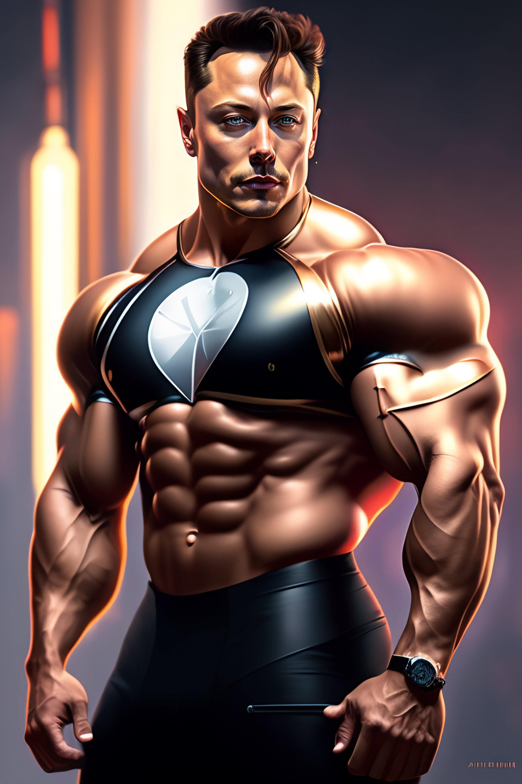 Bodybuilder elon musk shortless, realistic portrait, symmetrical, highly detailed, digital painting, artstation, concept art, smooth, sharp focus, illustration, cinematic lighting, art by artgerm and greg rutkowski and alphonse mucha