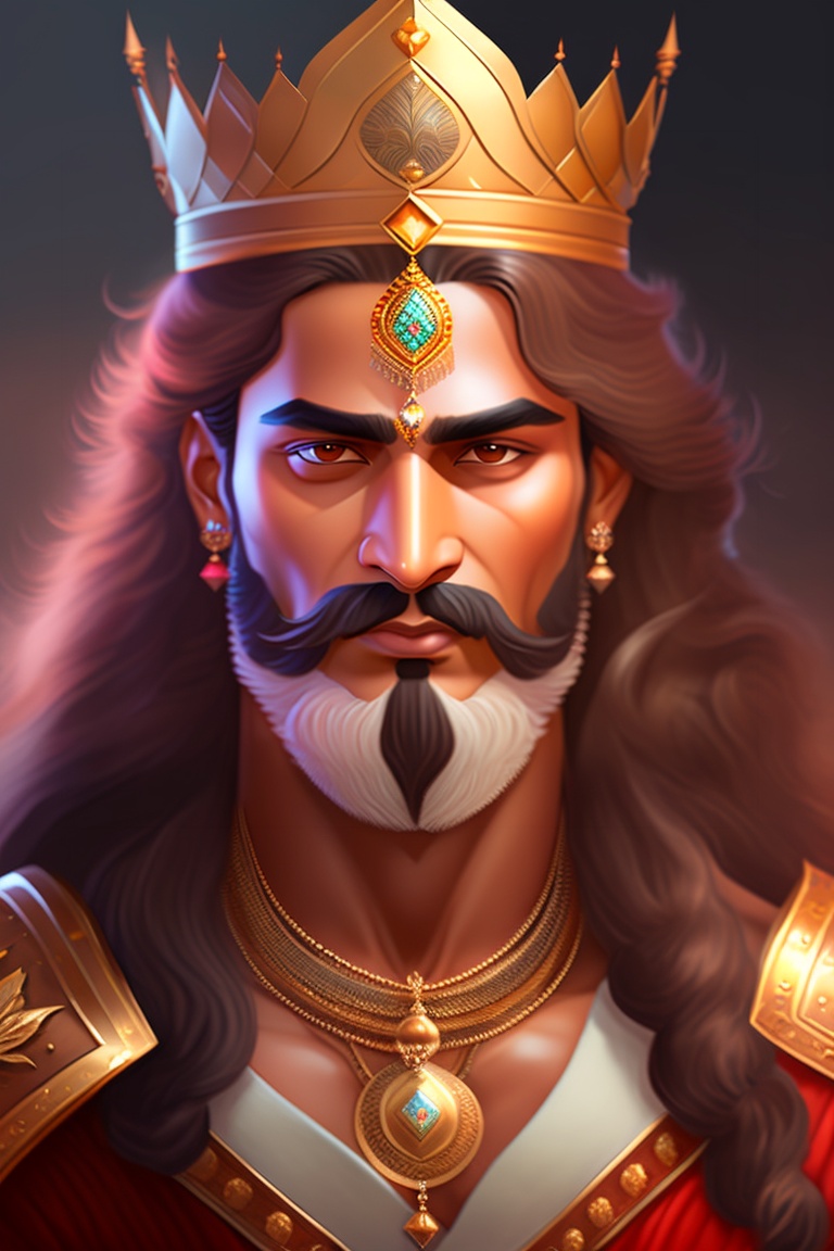 Vijay as rajput king, beard, long hair, amazing, muscular, intricate, highly detailed, digital painting, artstation, concept art, sharp focus, illustration, art by greg rutkowski and alphonse mucha