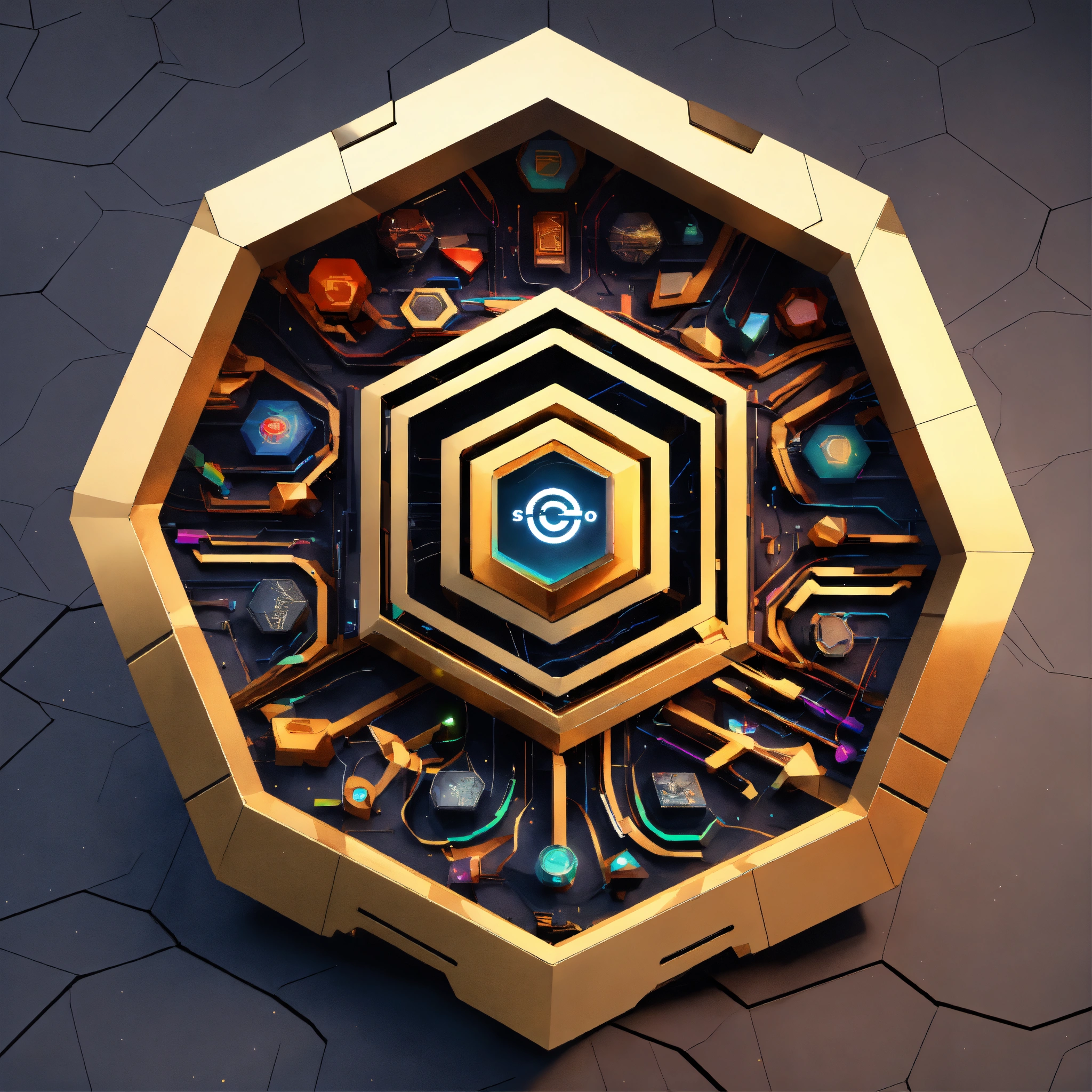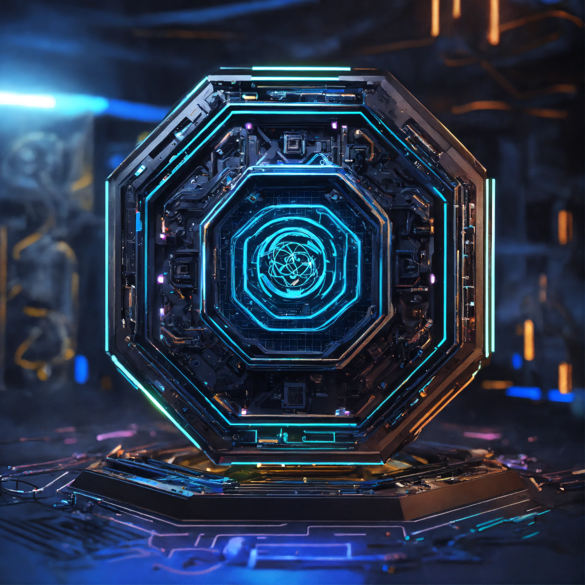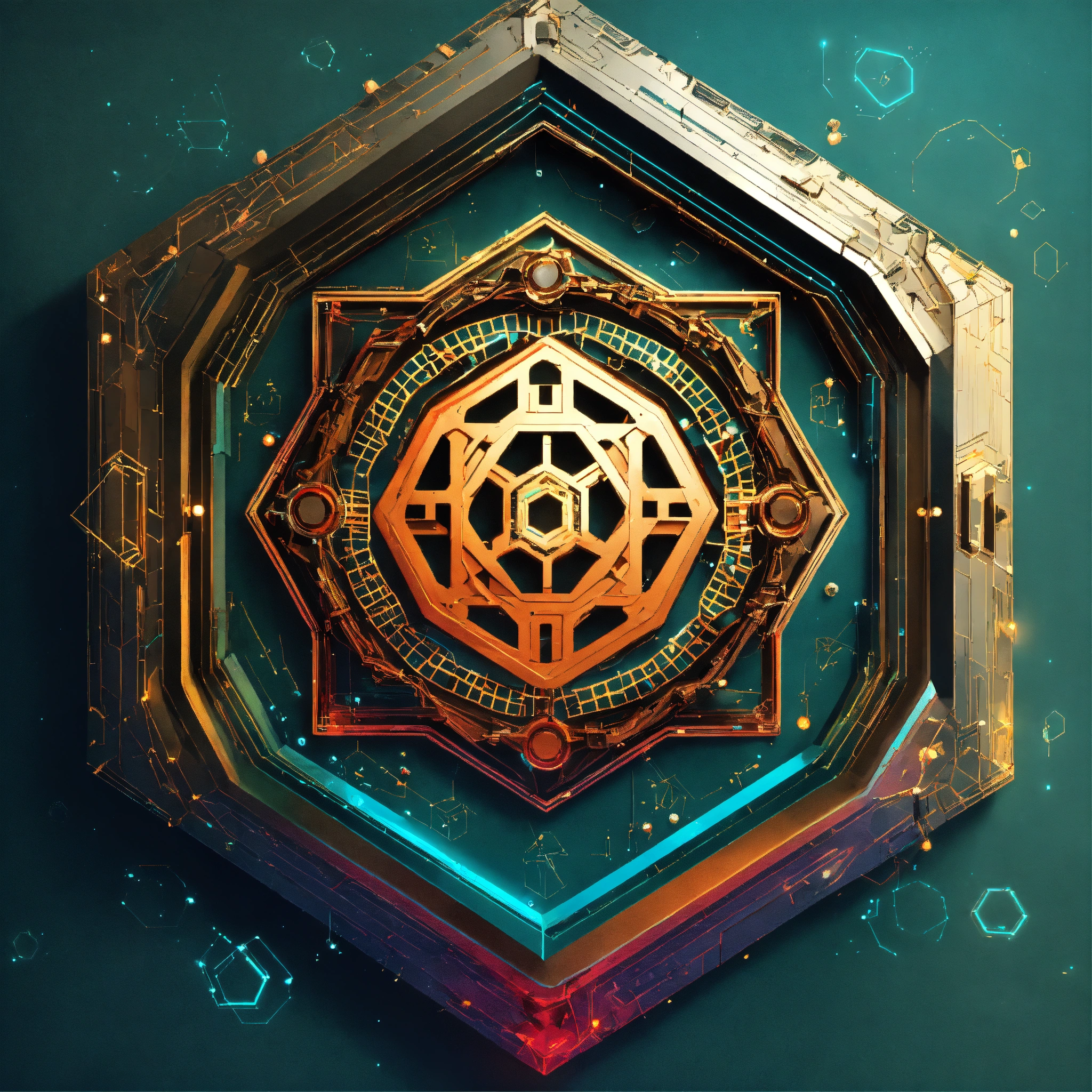Logotipo enmarcado en un hexagono 3d, de vórtice temporal, con estilo stargate, circuitos de microprocesador quantico, y componentes orgánicos, sofisticación, corporativo moderno, sin texto, moderno, arte vectorial, logo, icono de cerebro, ciberspace, google, seo.