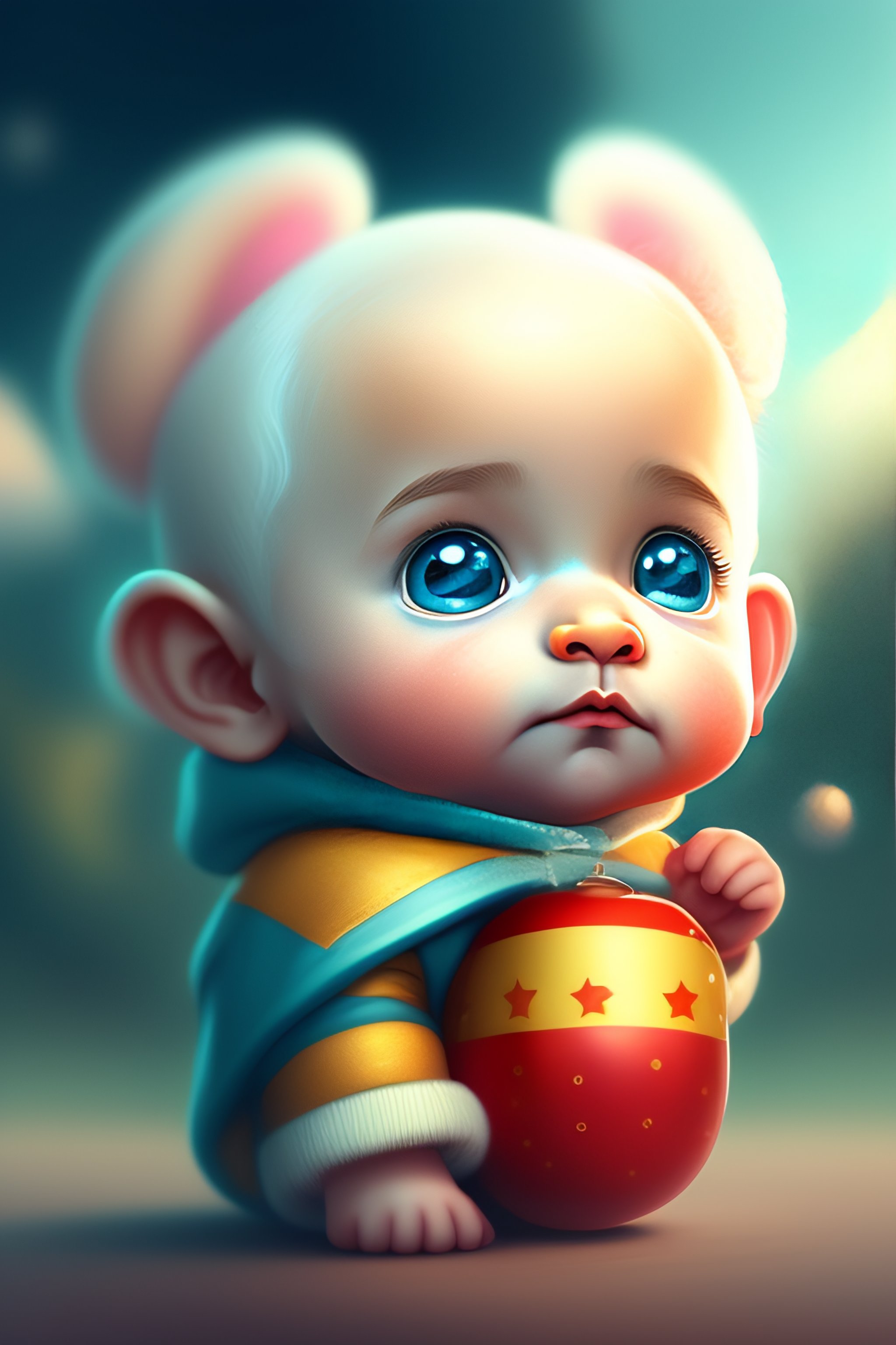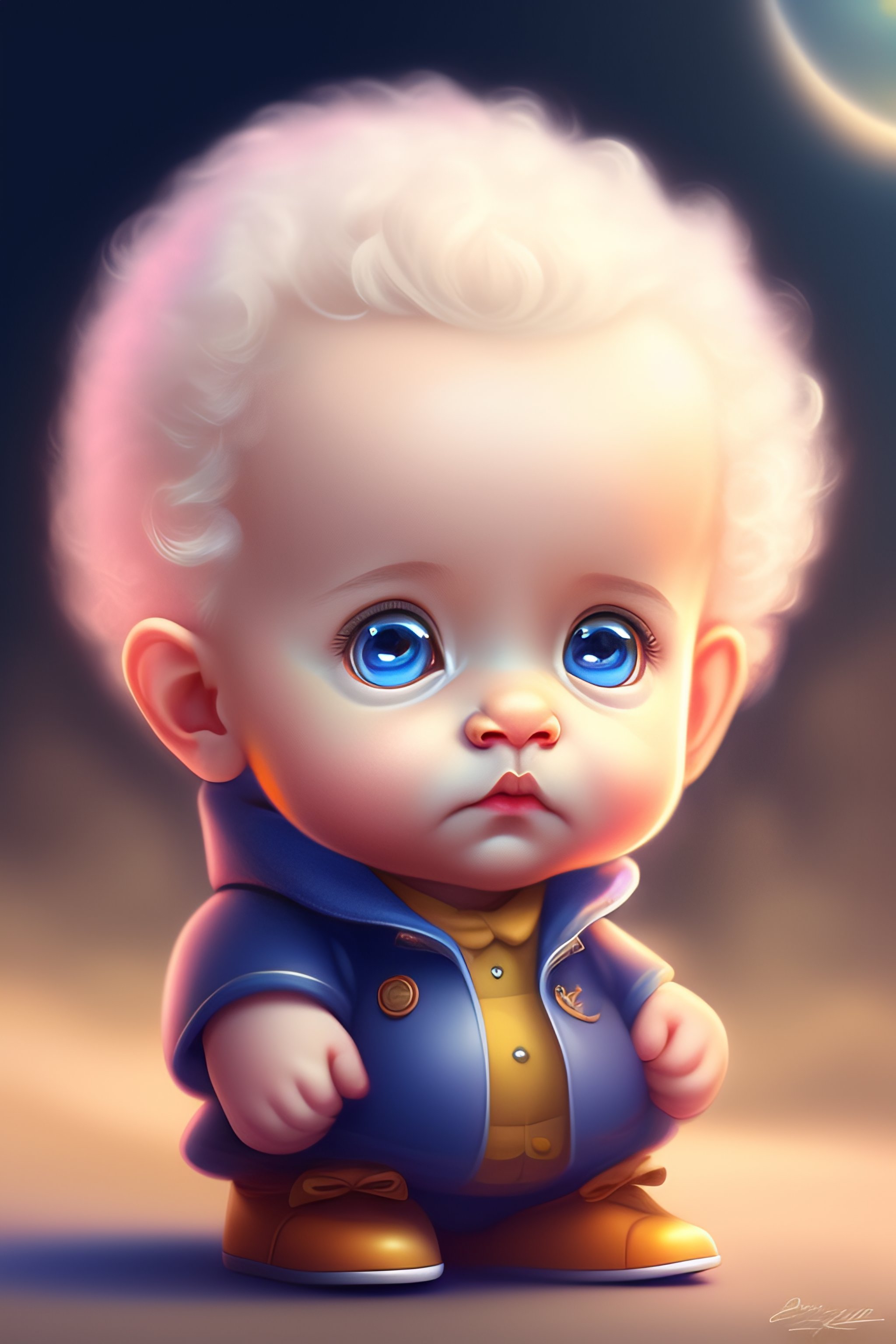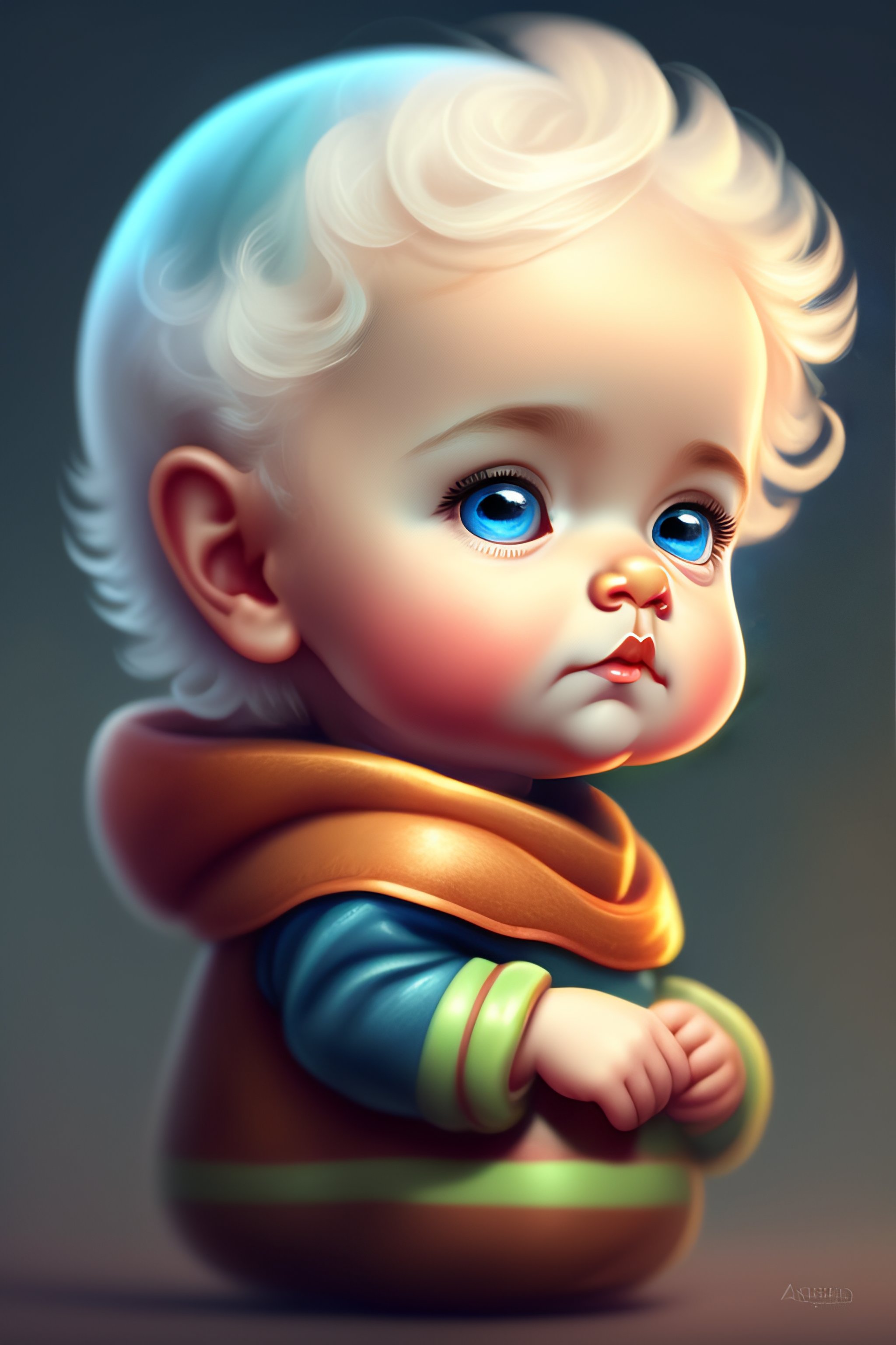 Cute and adorable cartoon baby alfred einstein, fantasy, dreamlike, surrealism, super cute, trending on artstation