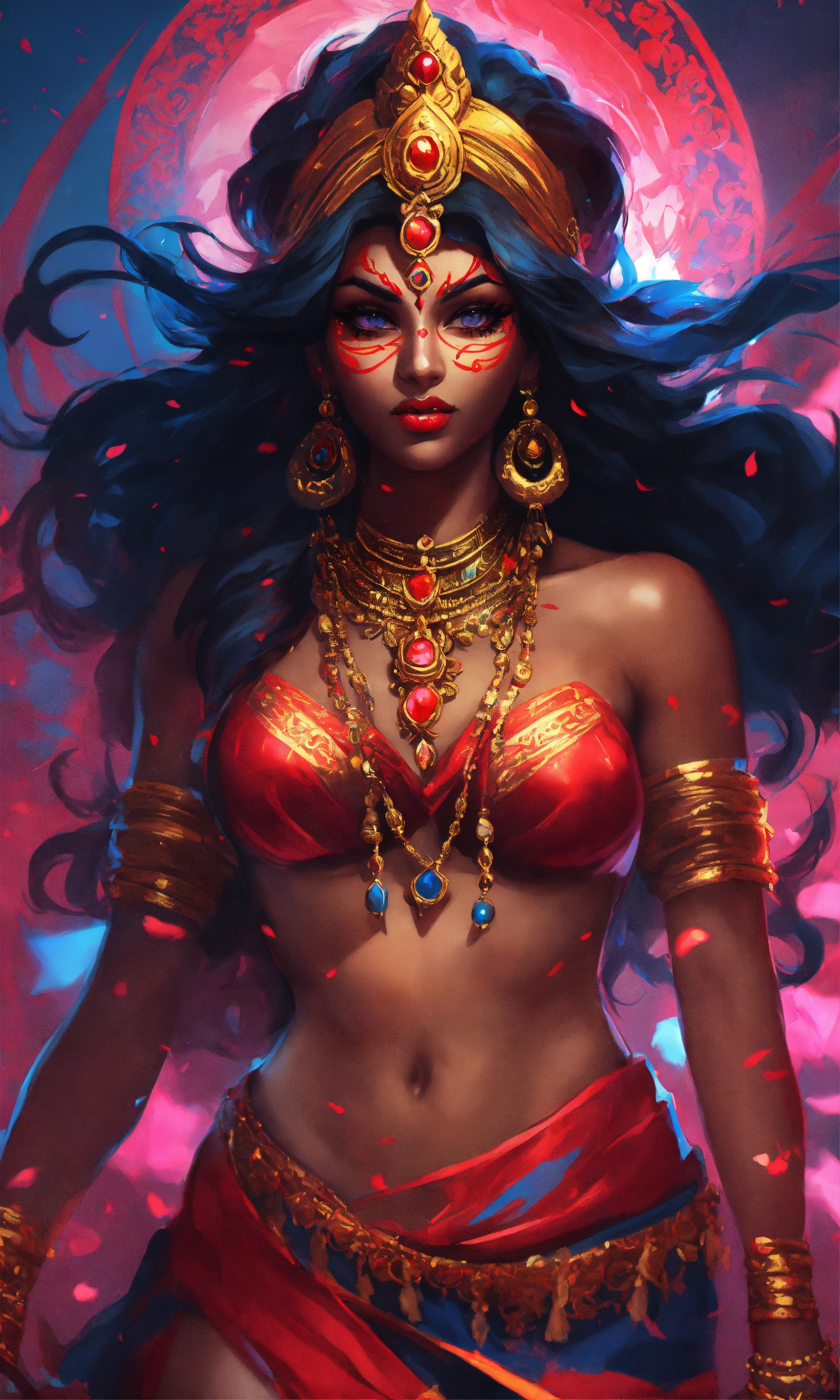 Portrait of goddess kali, stunning beautiful artwork, toned body, 8k, maximalist, by artgerm, 8k anime artwork, 8k photo, trending on artstation