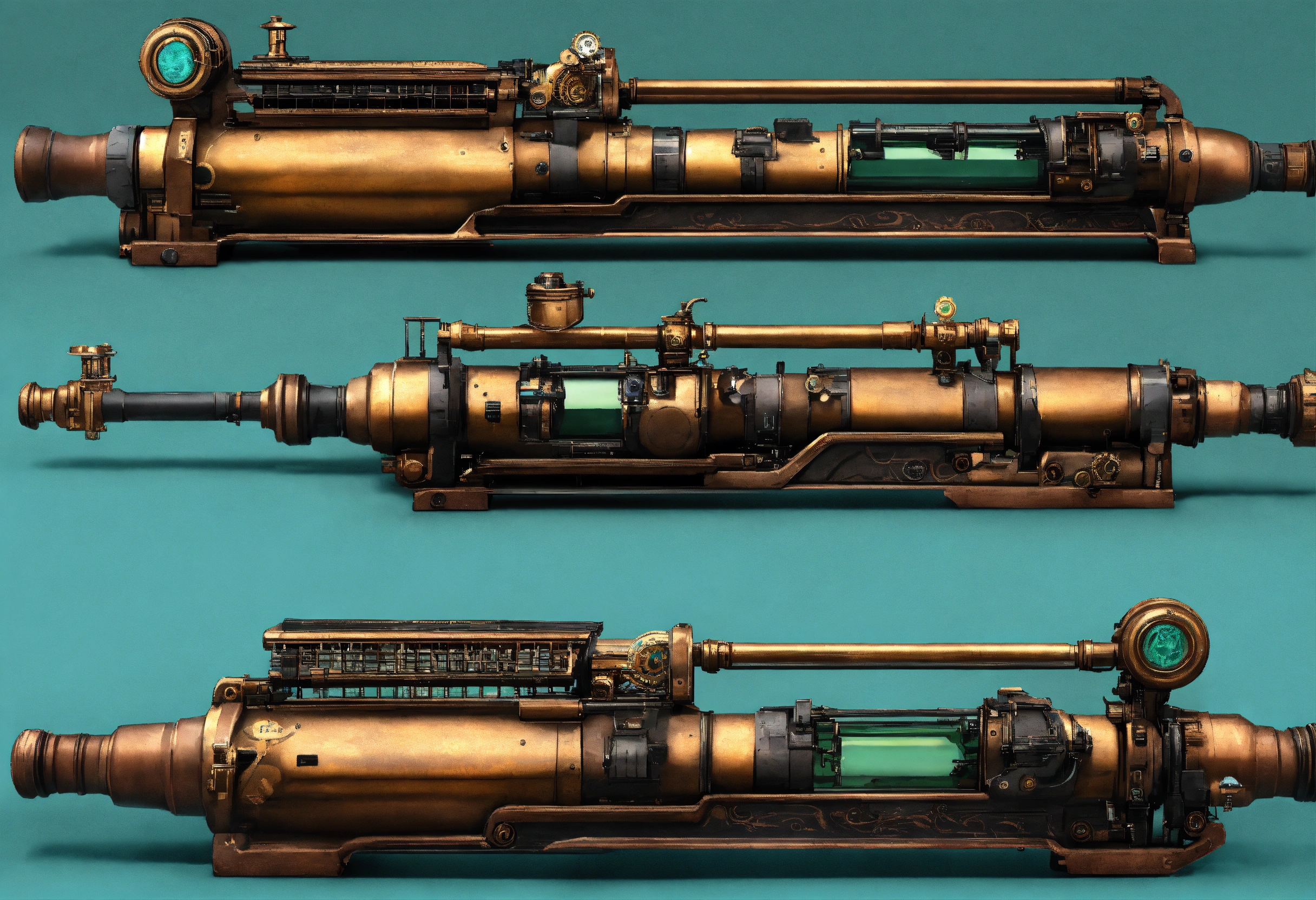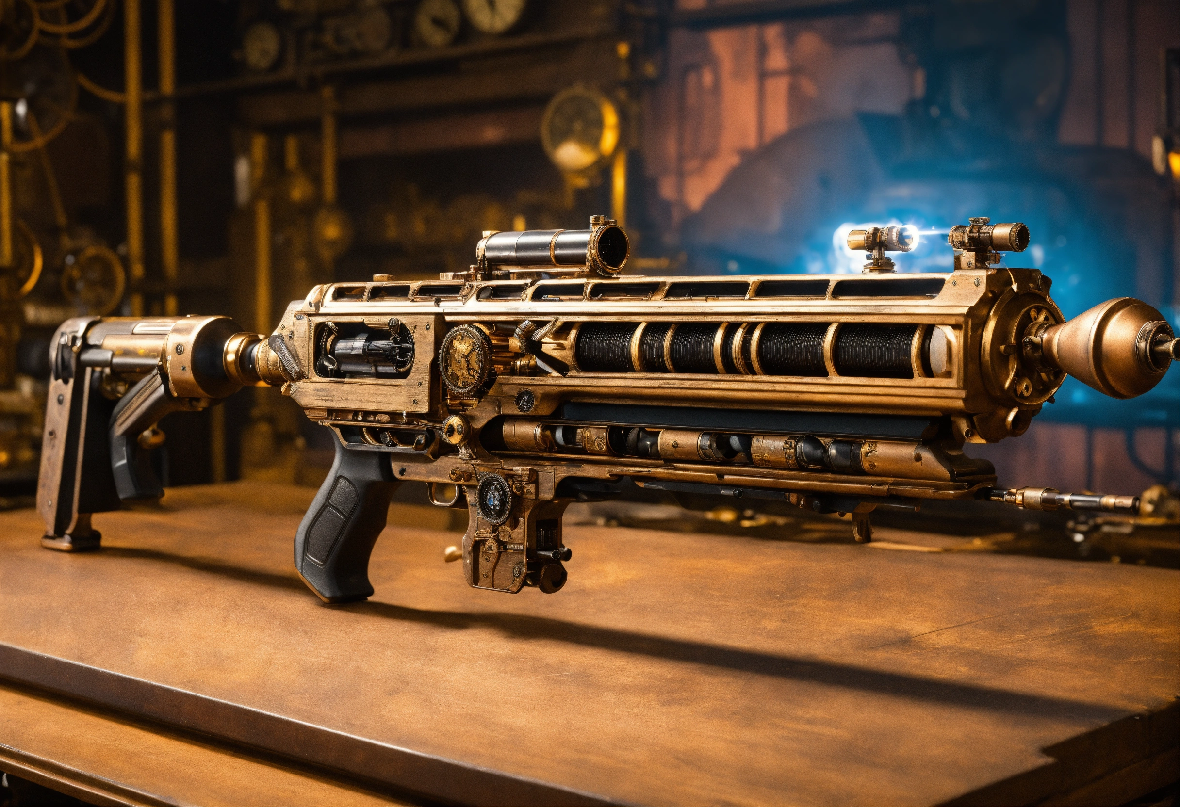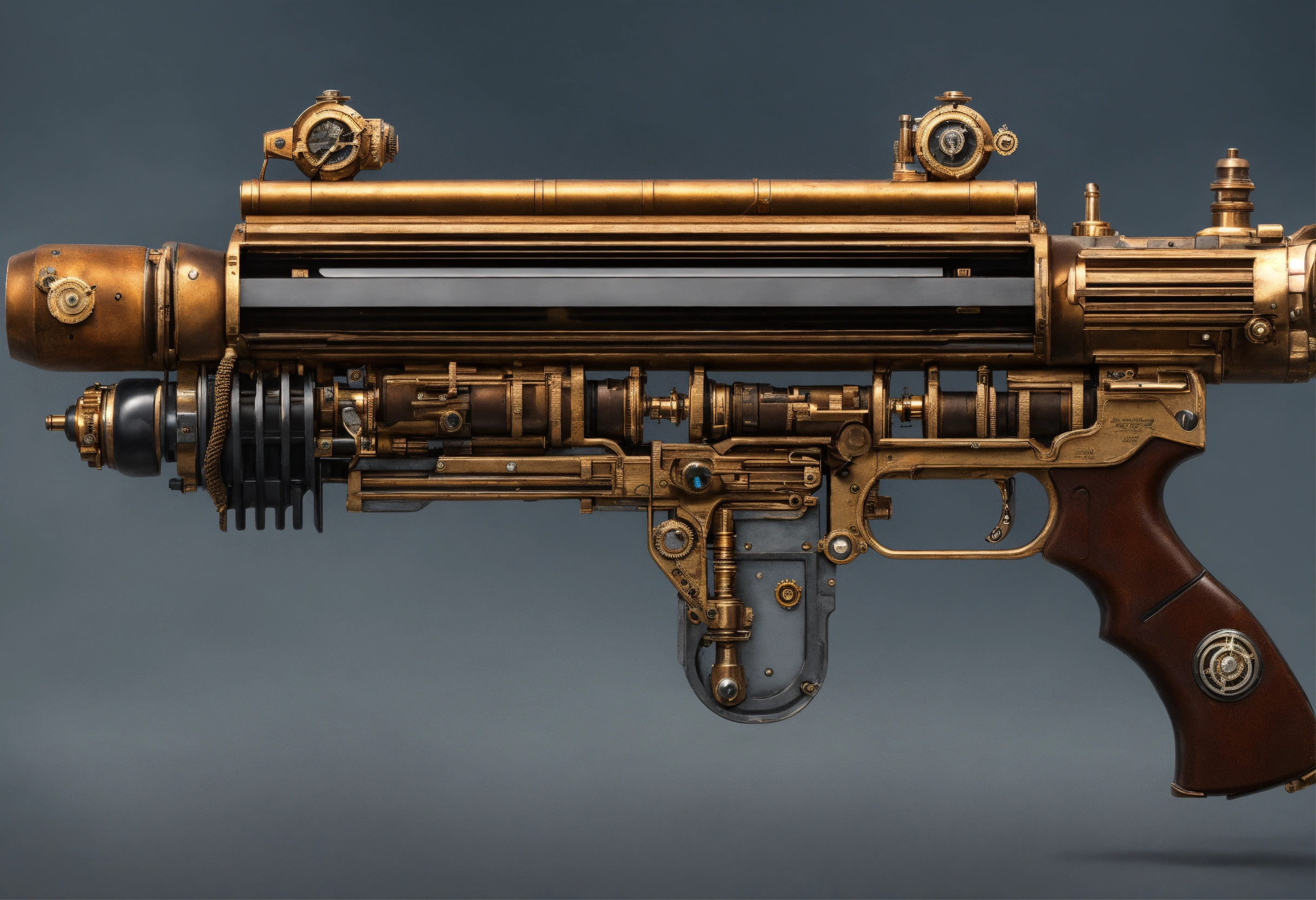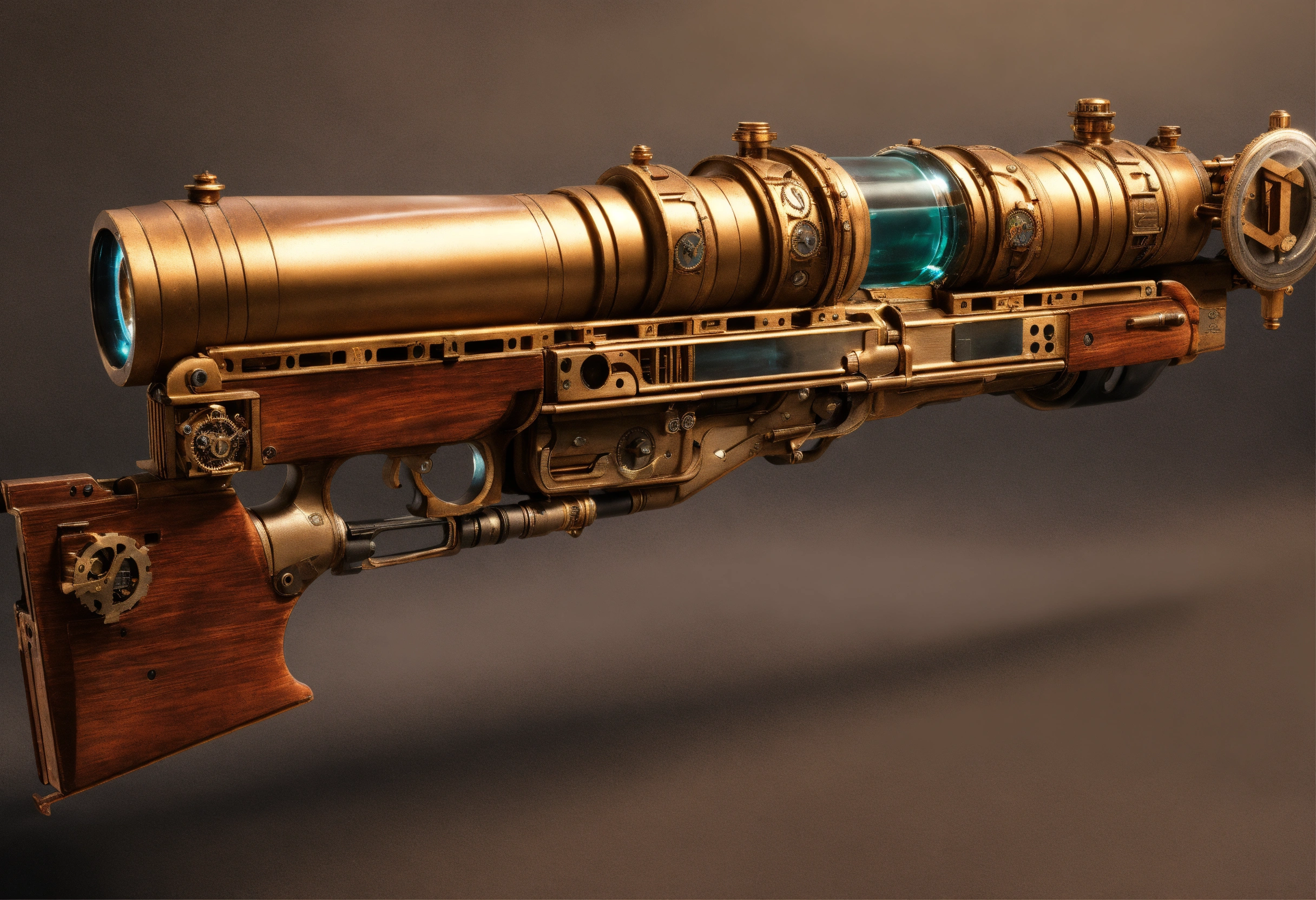 Side view of the full image of a steampunk energy rifle