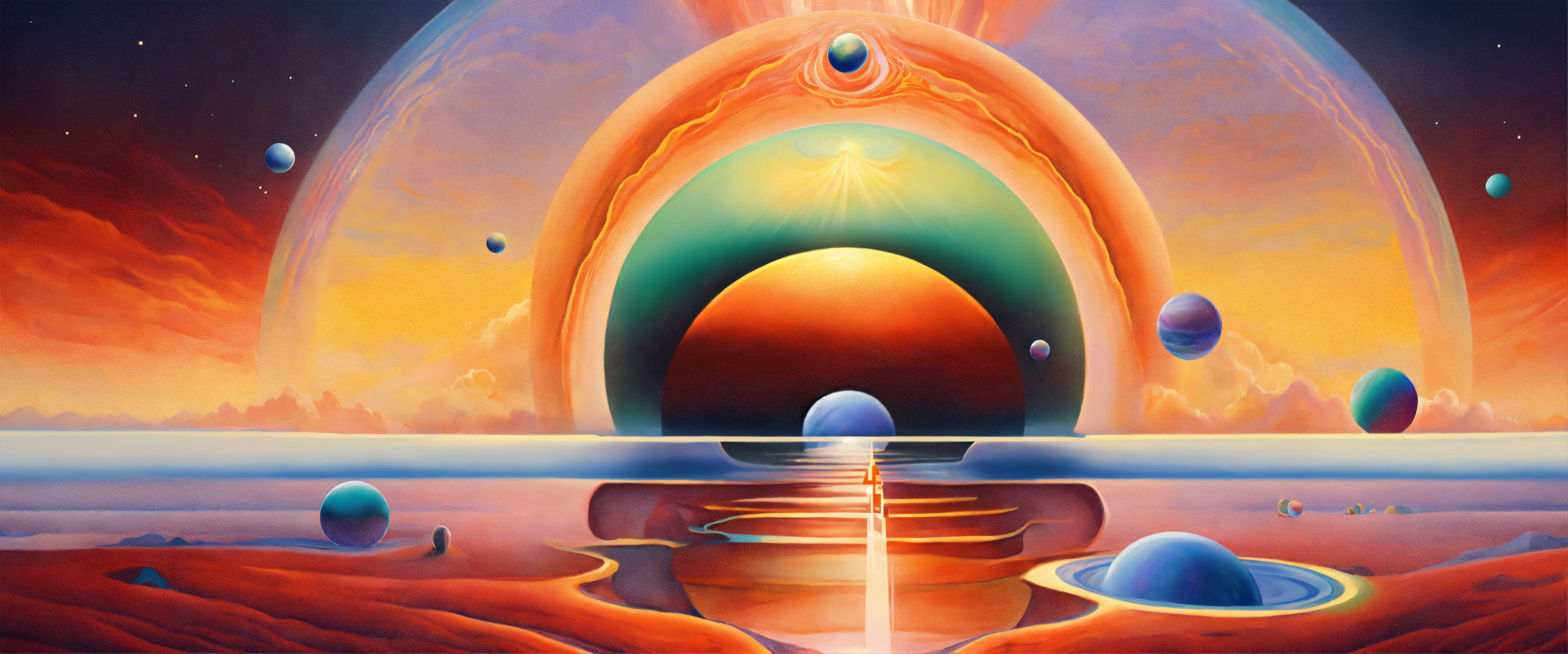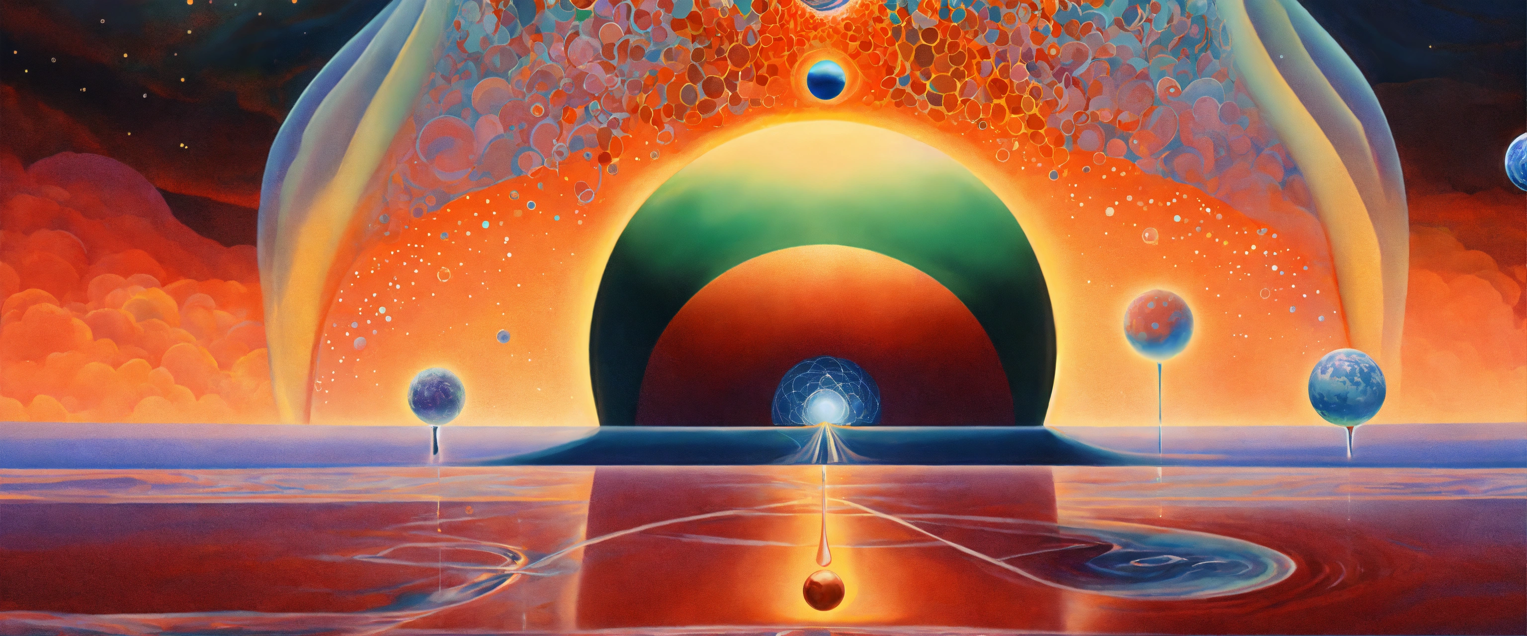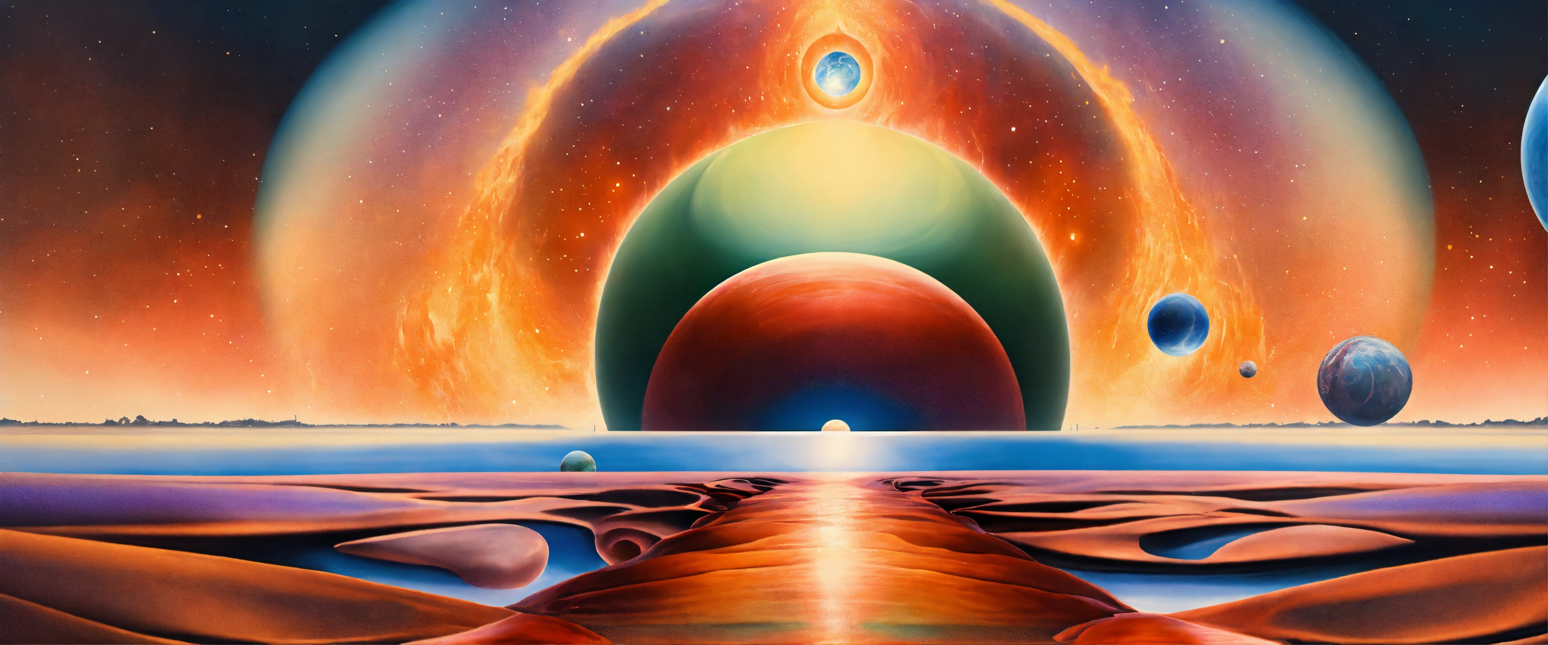 Visualize the possibility of parallel universes in quantum mechanics and aliens, in a digital artwork by georgia o'keeffe, 16k resolution.
