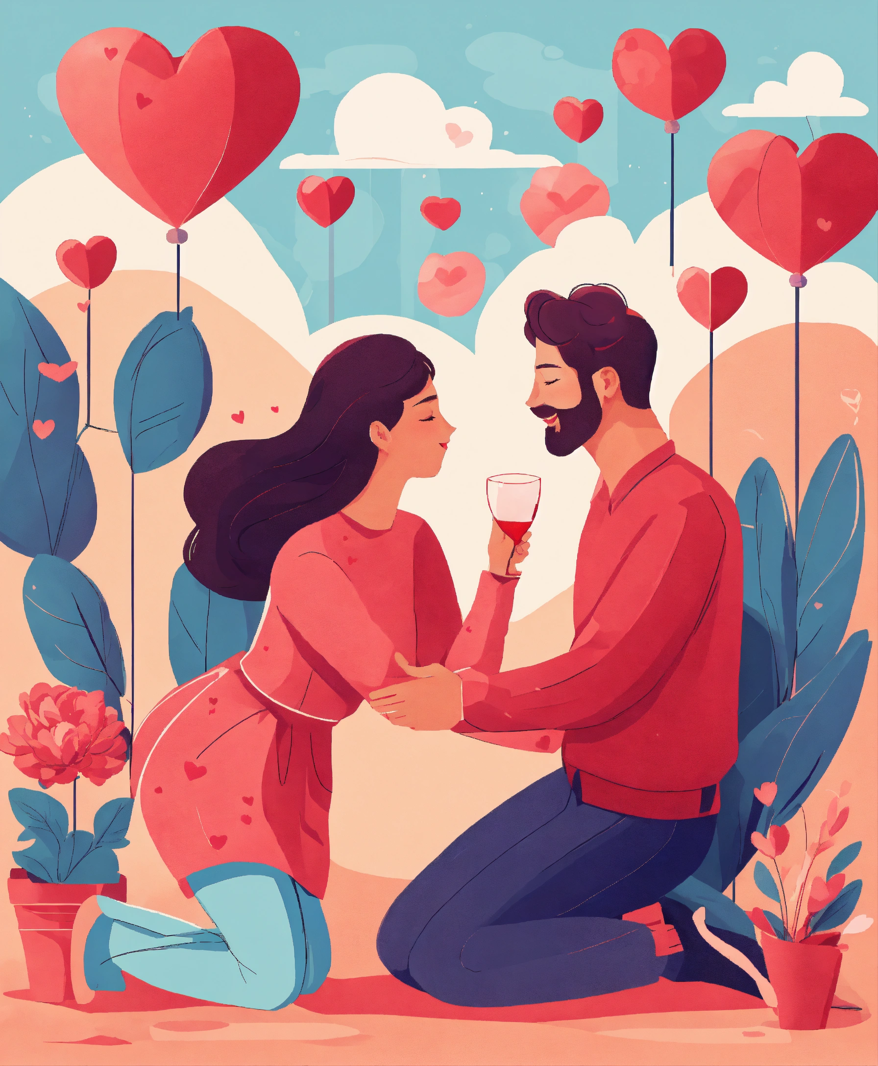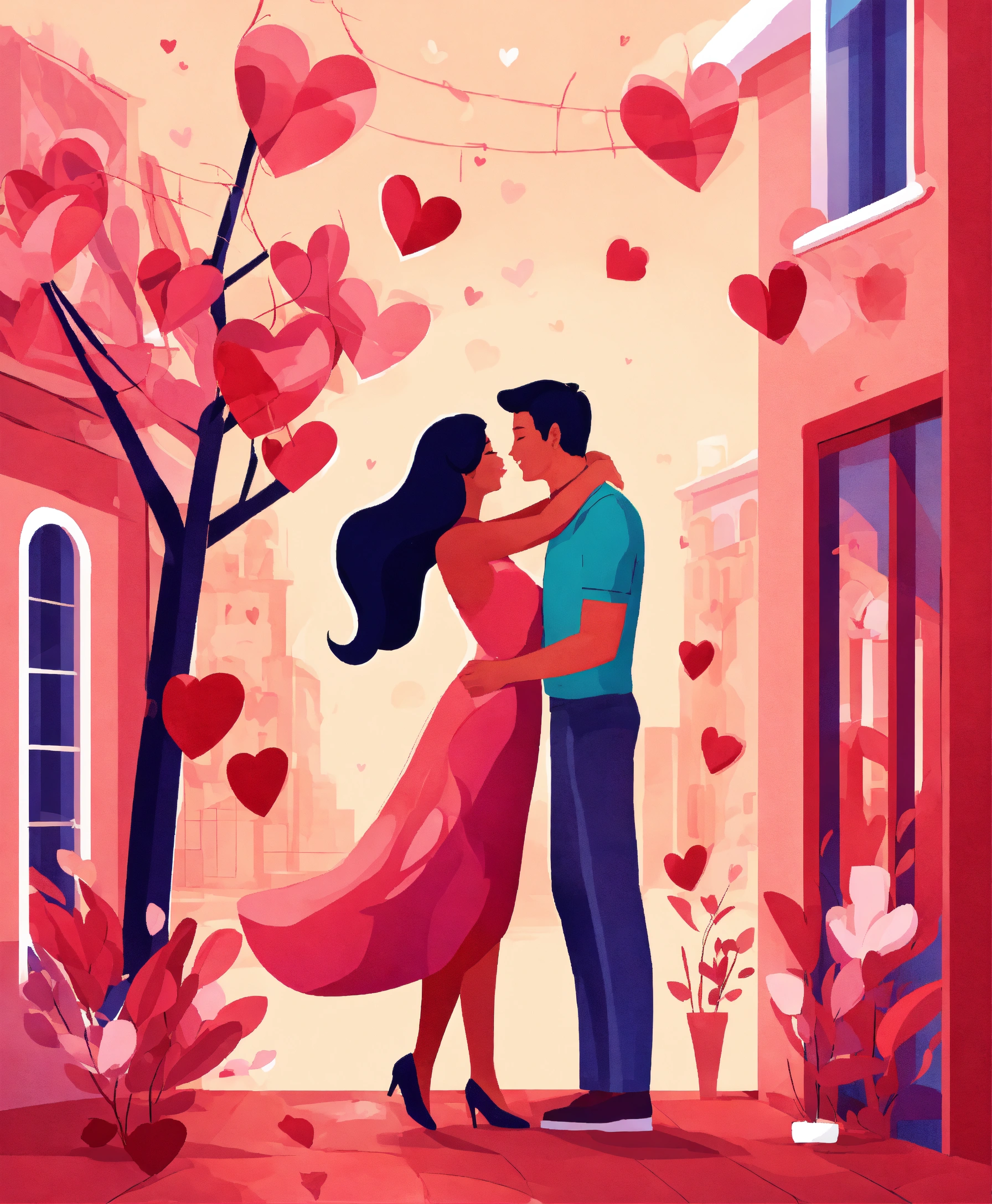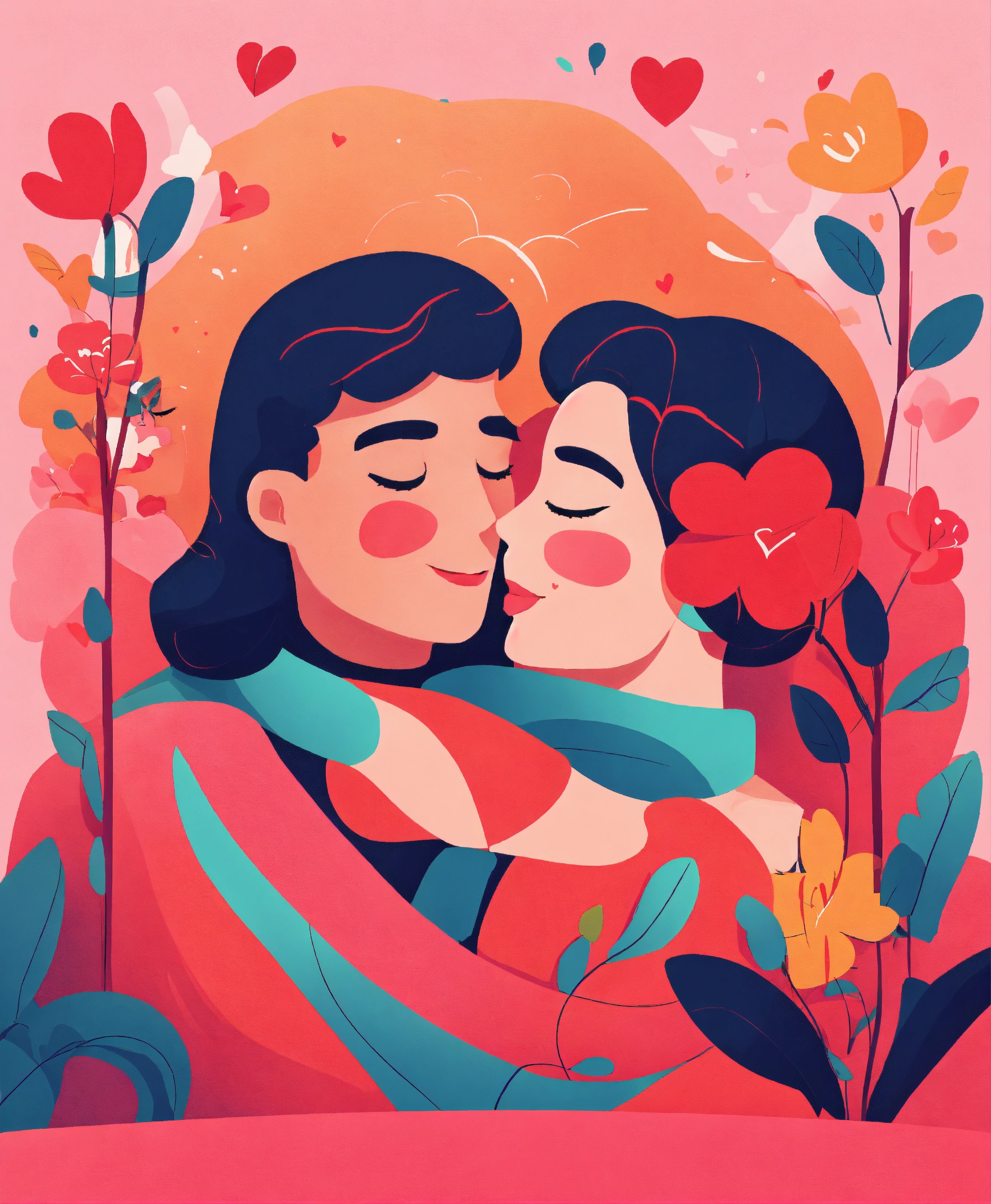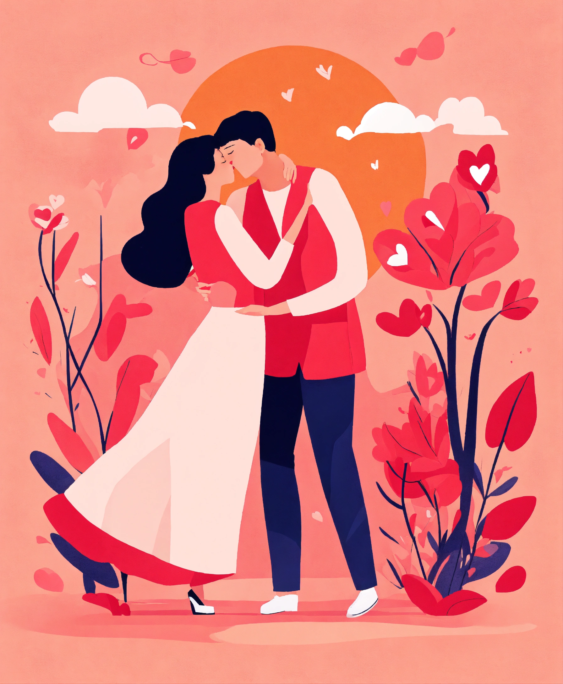 Romantic vector illustration on love story theme. happy flat people character. couples in love, they embrace and kiss. happy lover man and woman flirt. lifestyle concept on valentine day