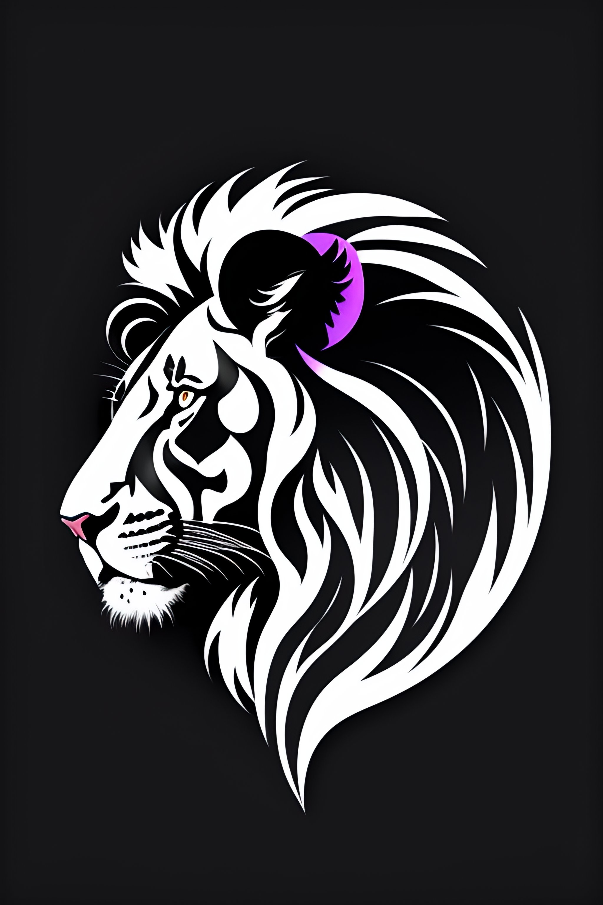 Abstract lion logo, geometric lion logo, abstract, logo, logo design, minimal line, minimalist geometric shape, rounded, less detailed, black and white logo
