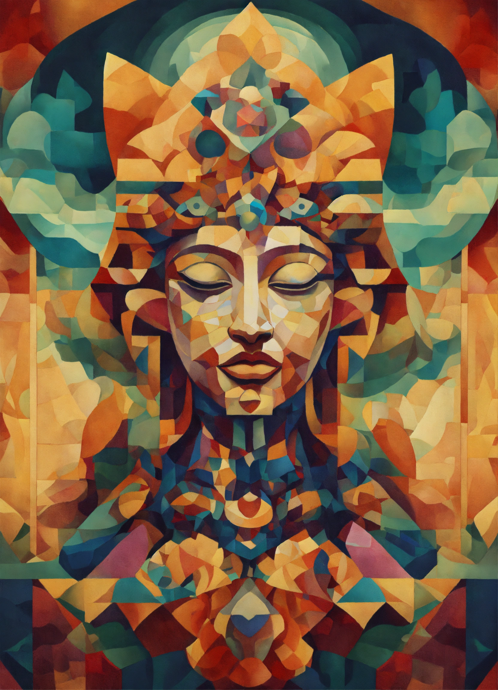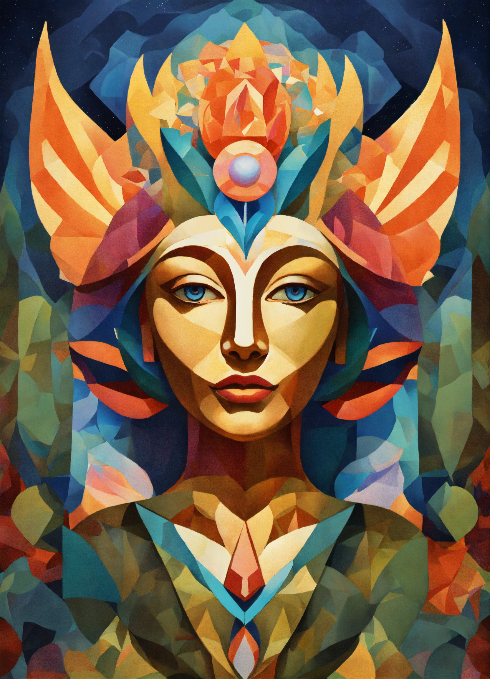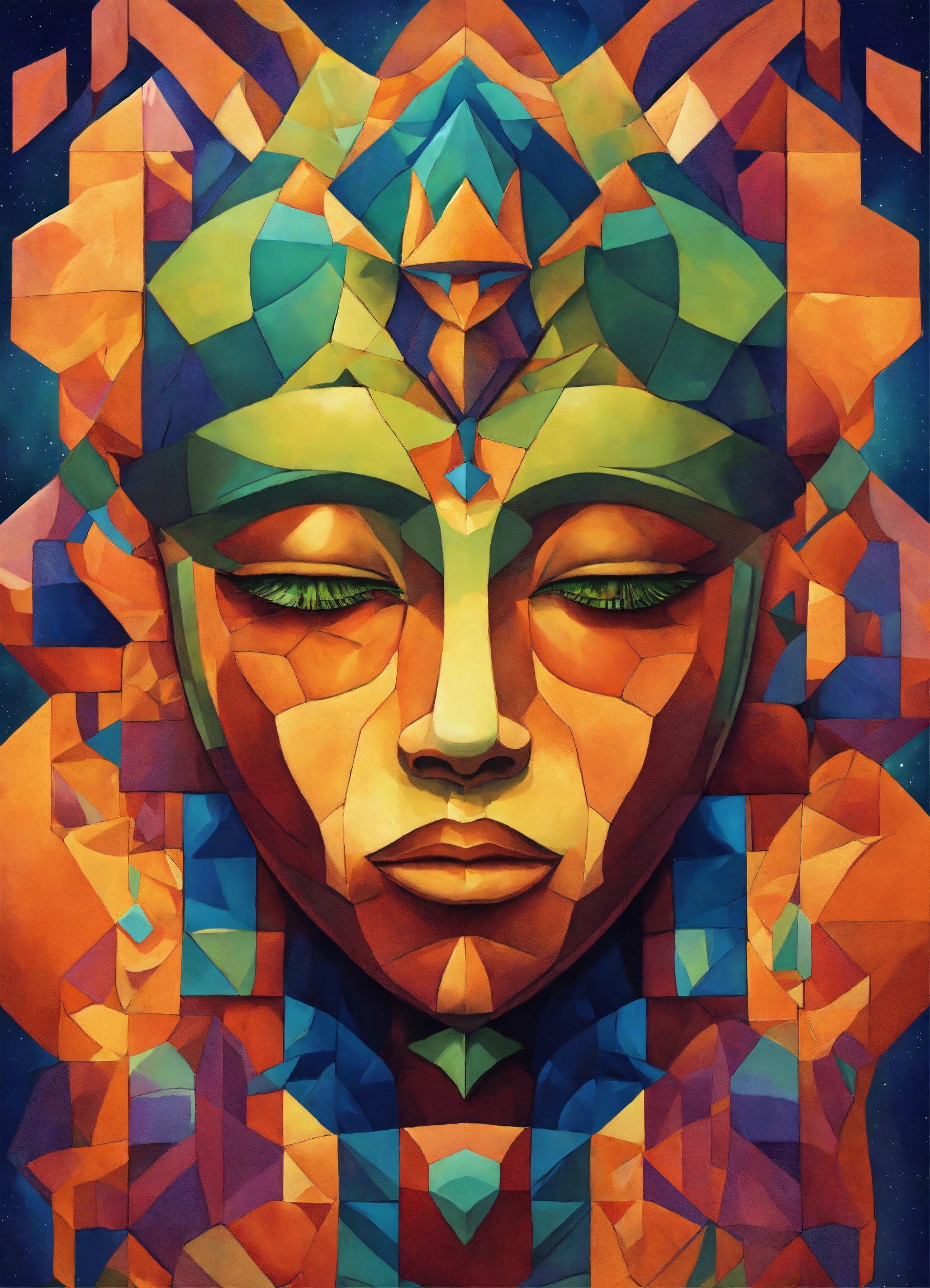 Nature-inspired design of cosmic deity cubist art in high resolution