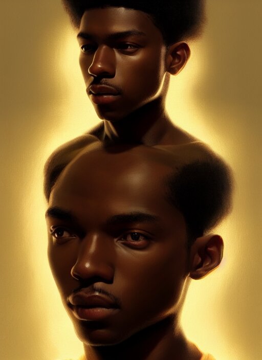 Portrait of young chuck clayton, black man, 1 7 years old, intricate, elegant, glowing lights, highly detailed, digital painting, artstation, concept art, smooth, sharp focus, illustration, art by wlop, mars ravelo and greg rutkowski
