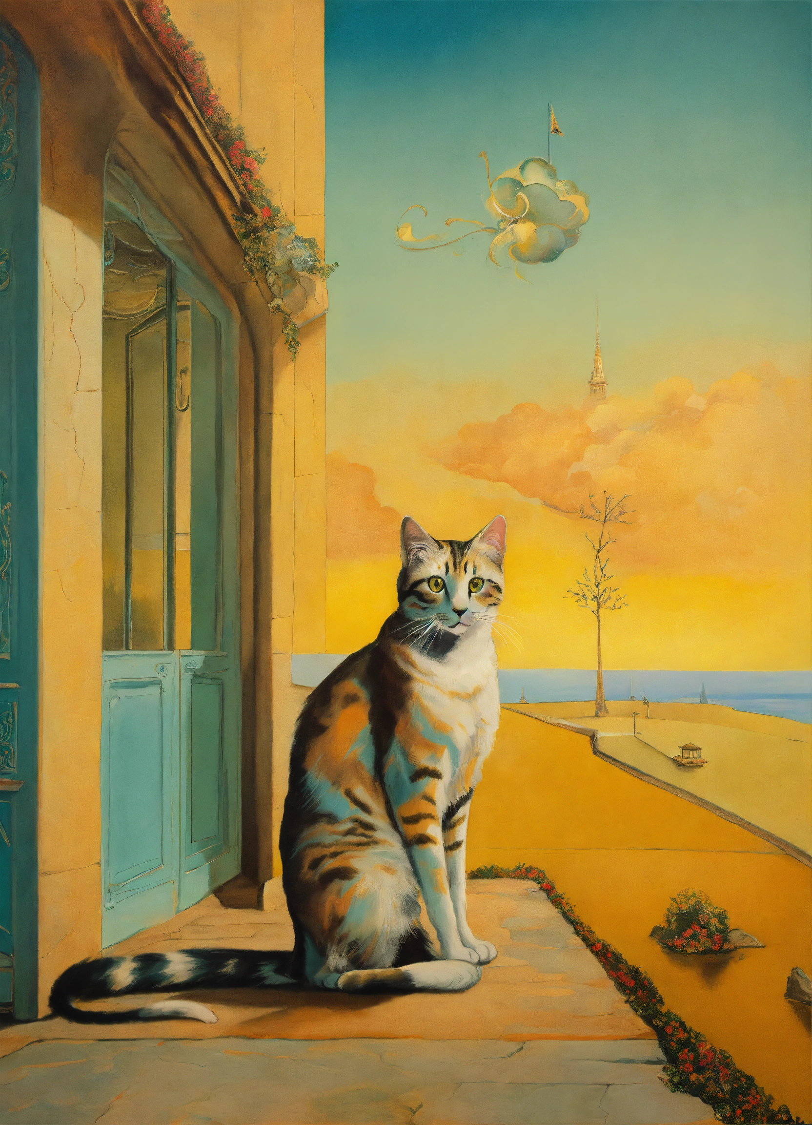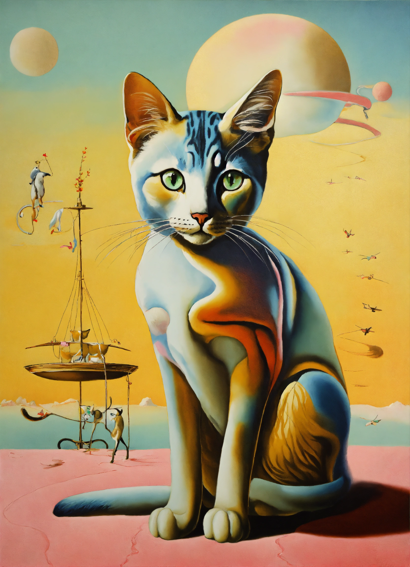 Surreal salvador dali painting cat in pastel shades
