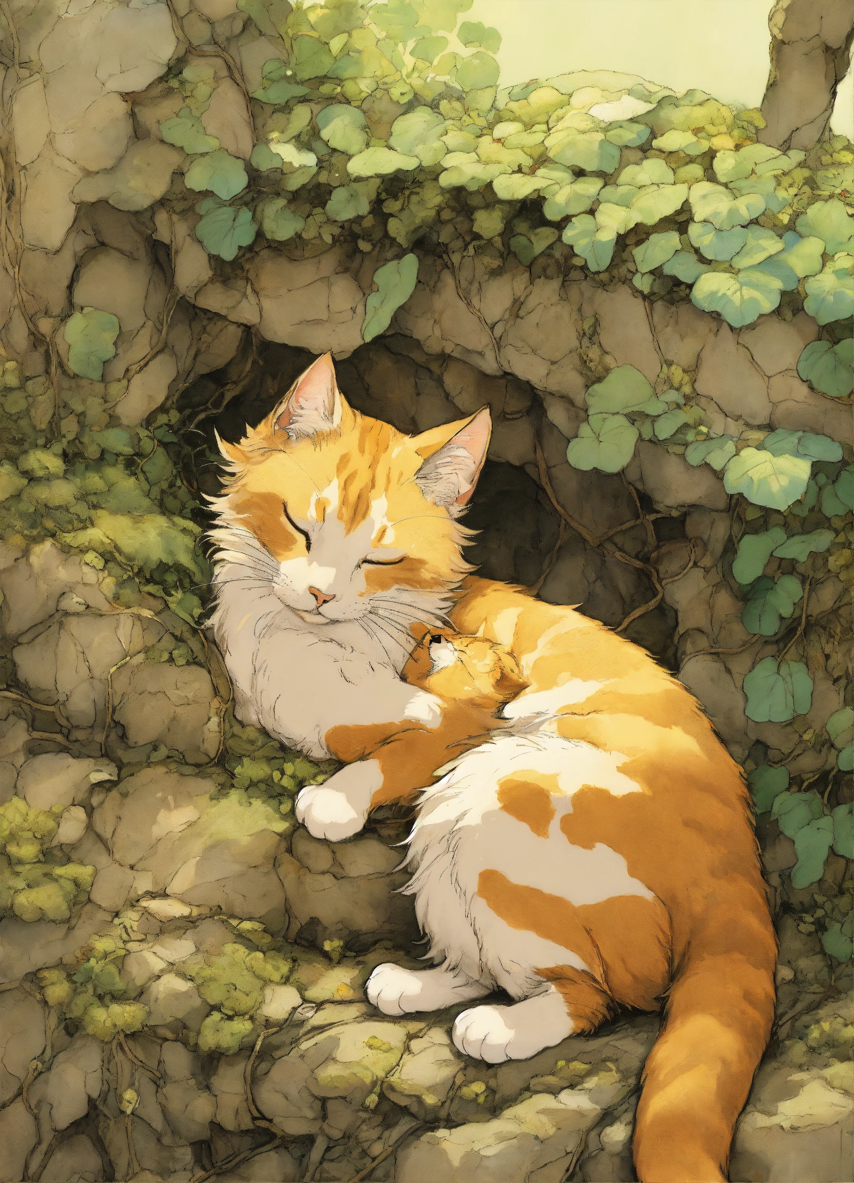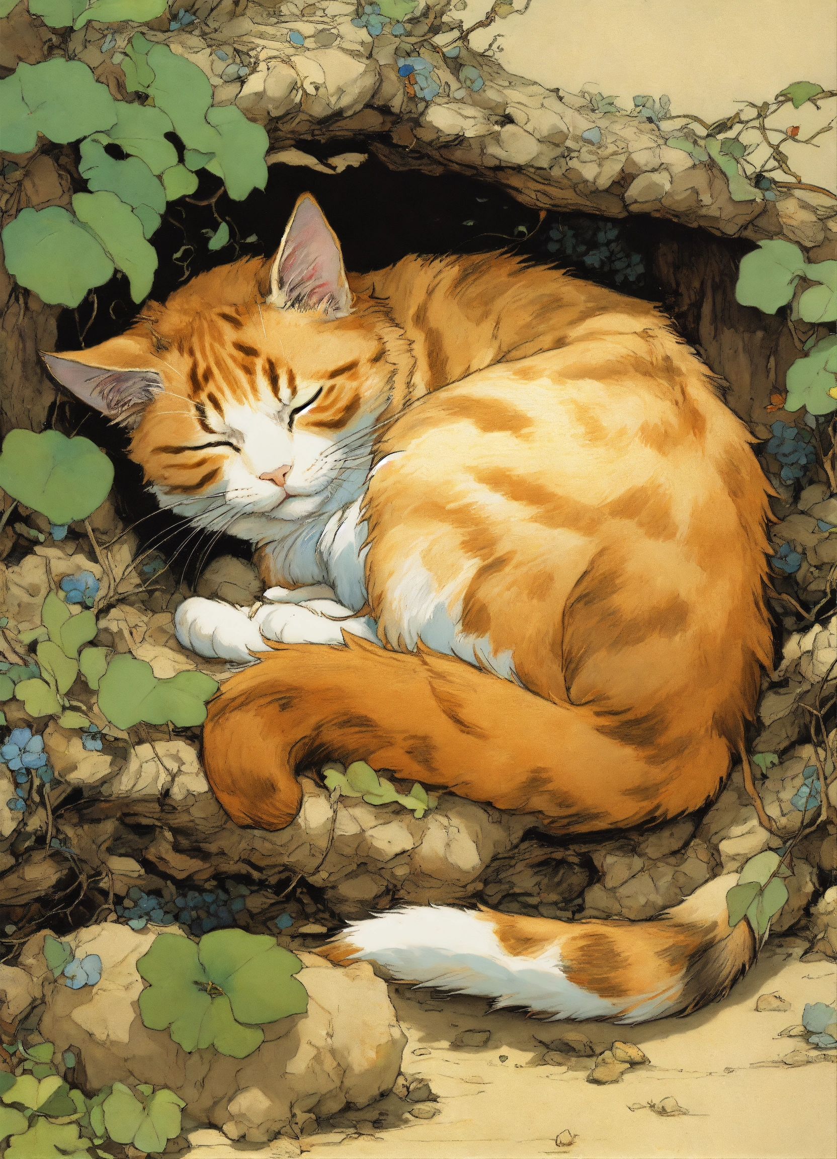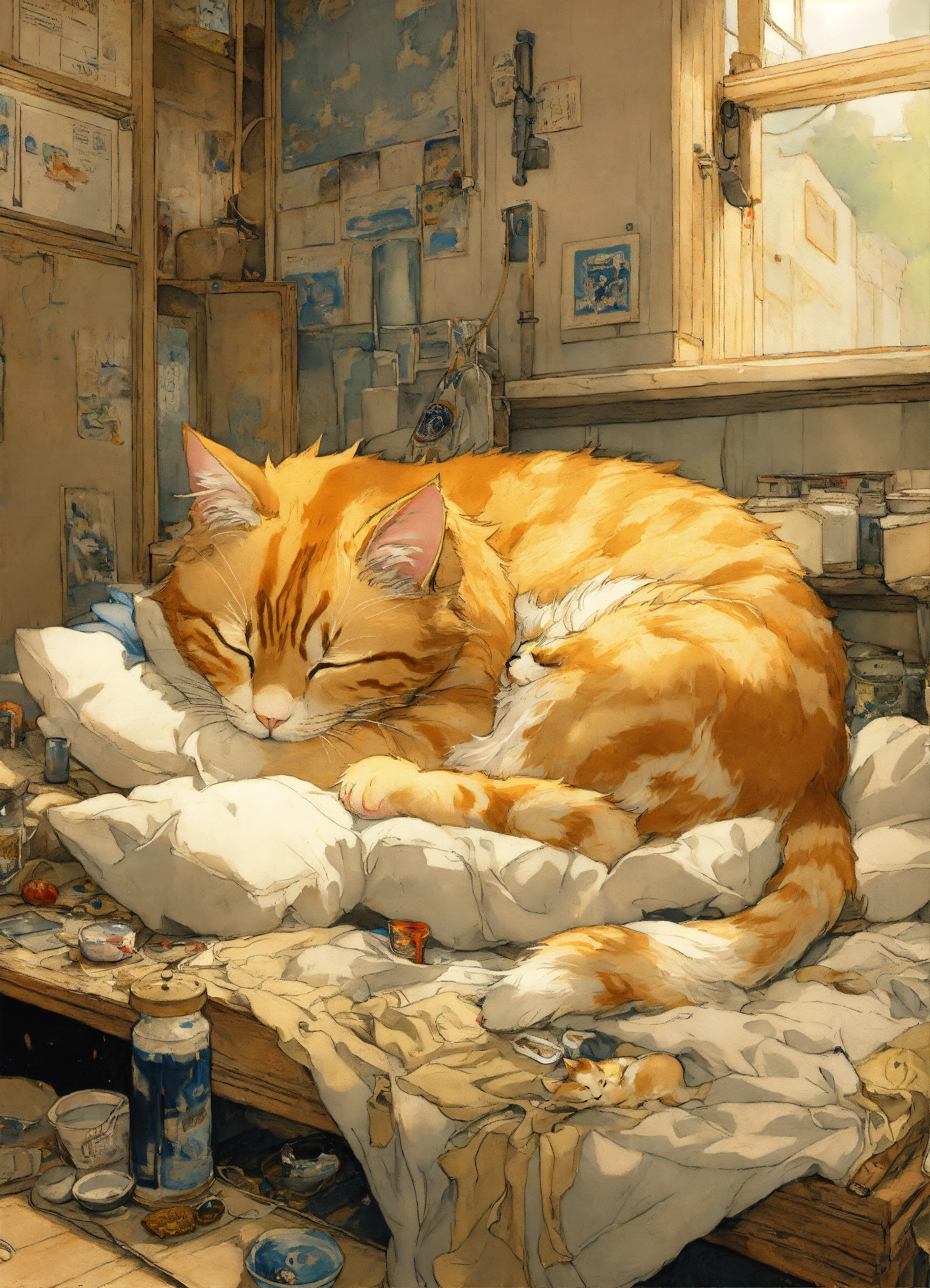A cat sleeping, a detailed painting by katsuya terada, featured on pixiv, analytical art, detailed painting, 2d game art, official art