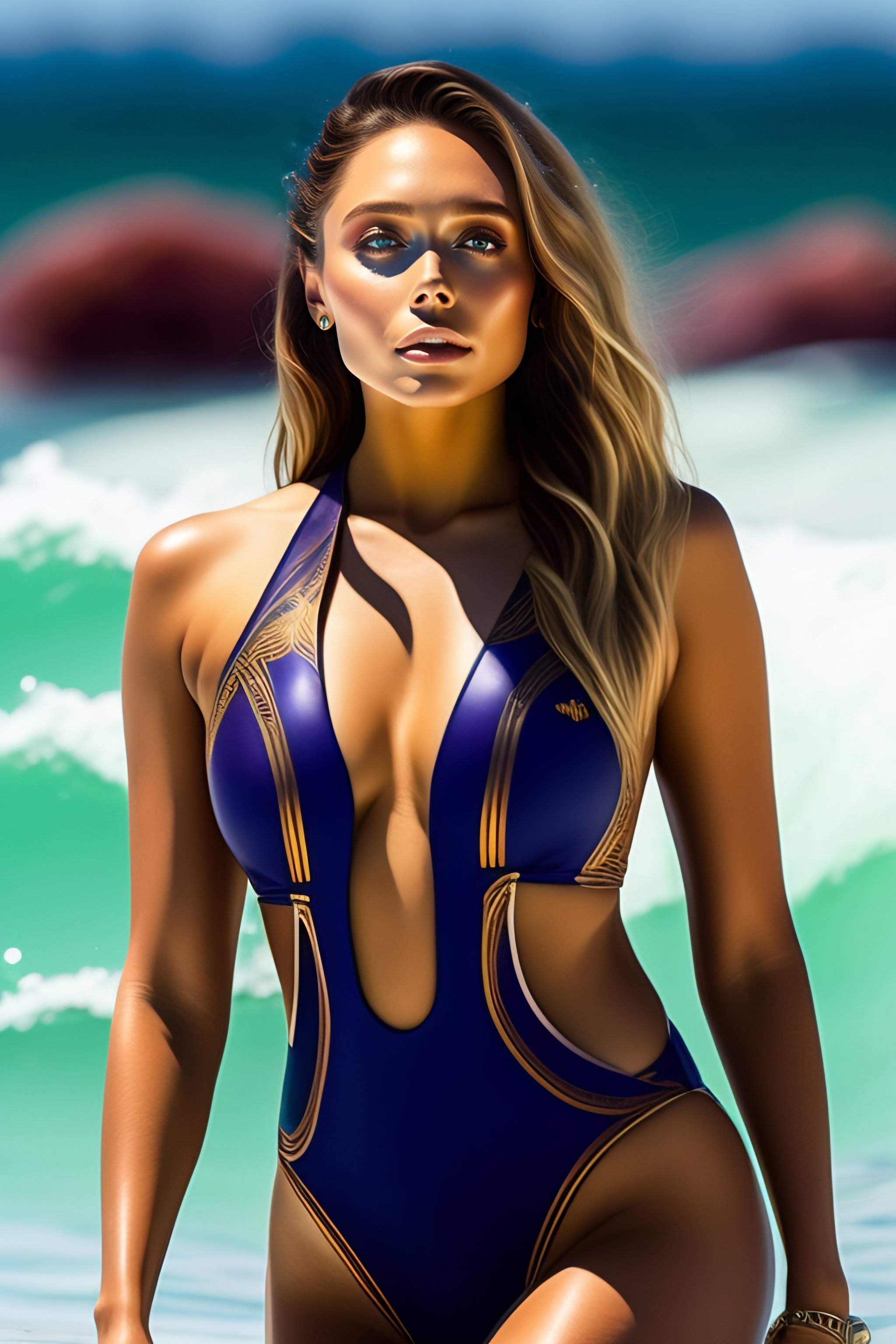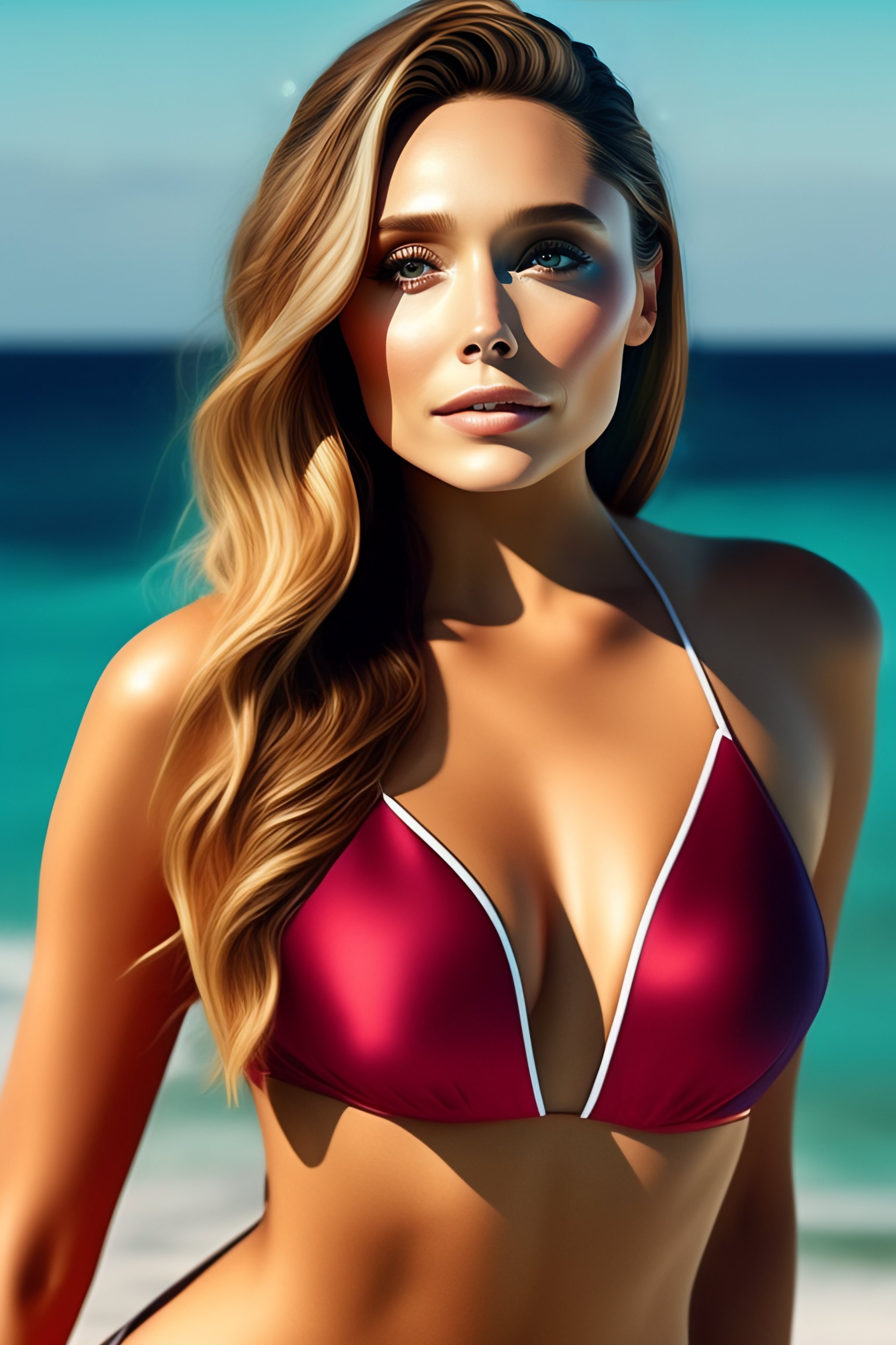 High detailed elizabeth olsen swim suit