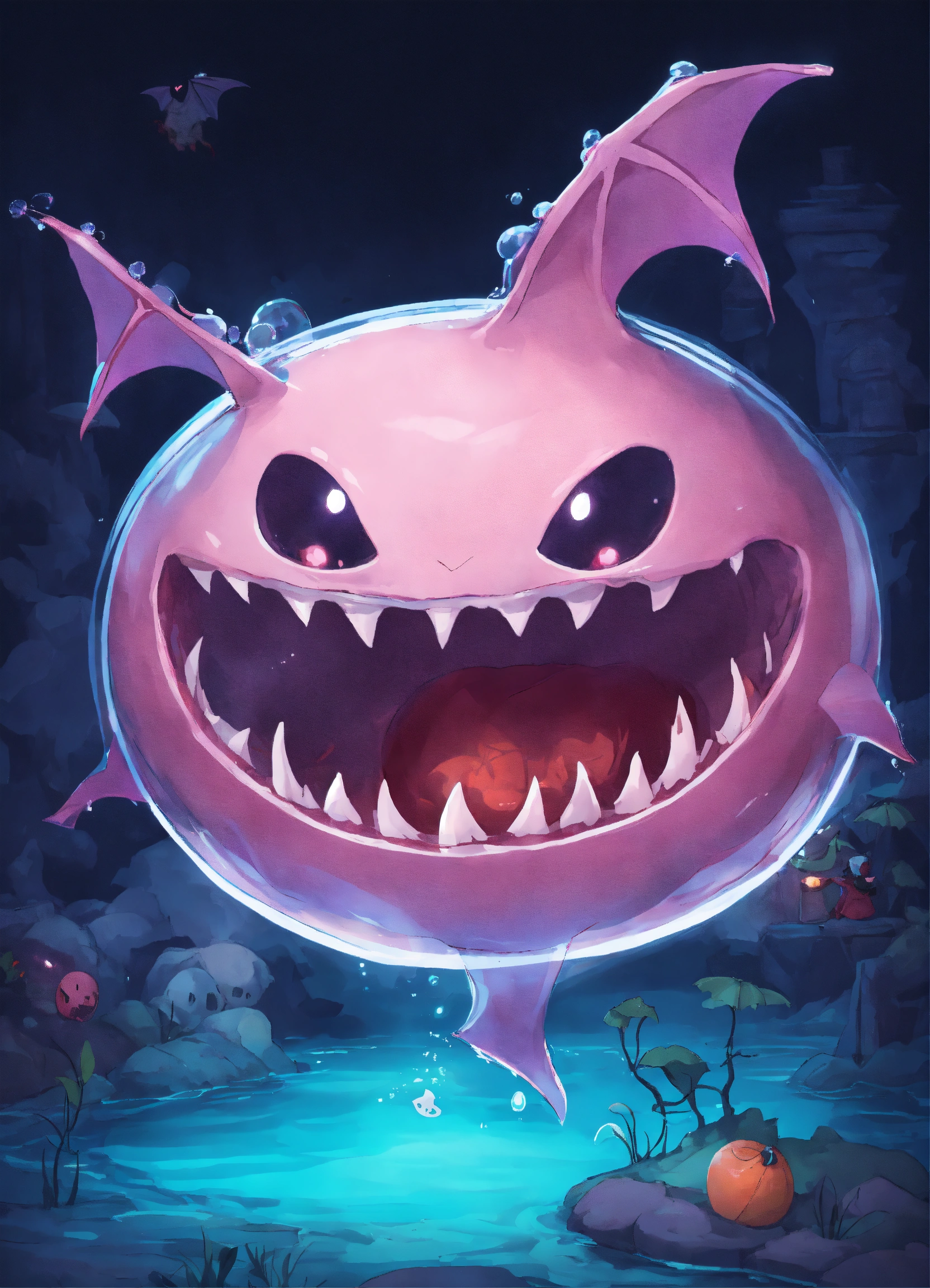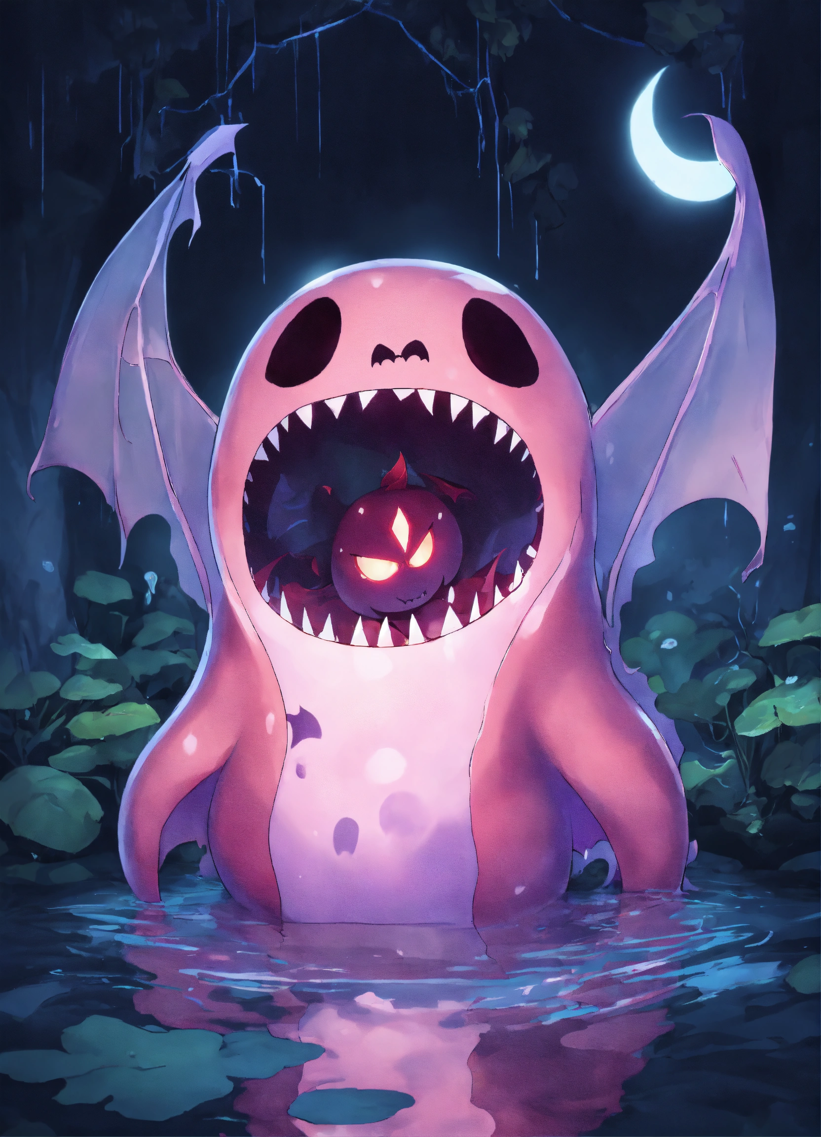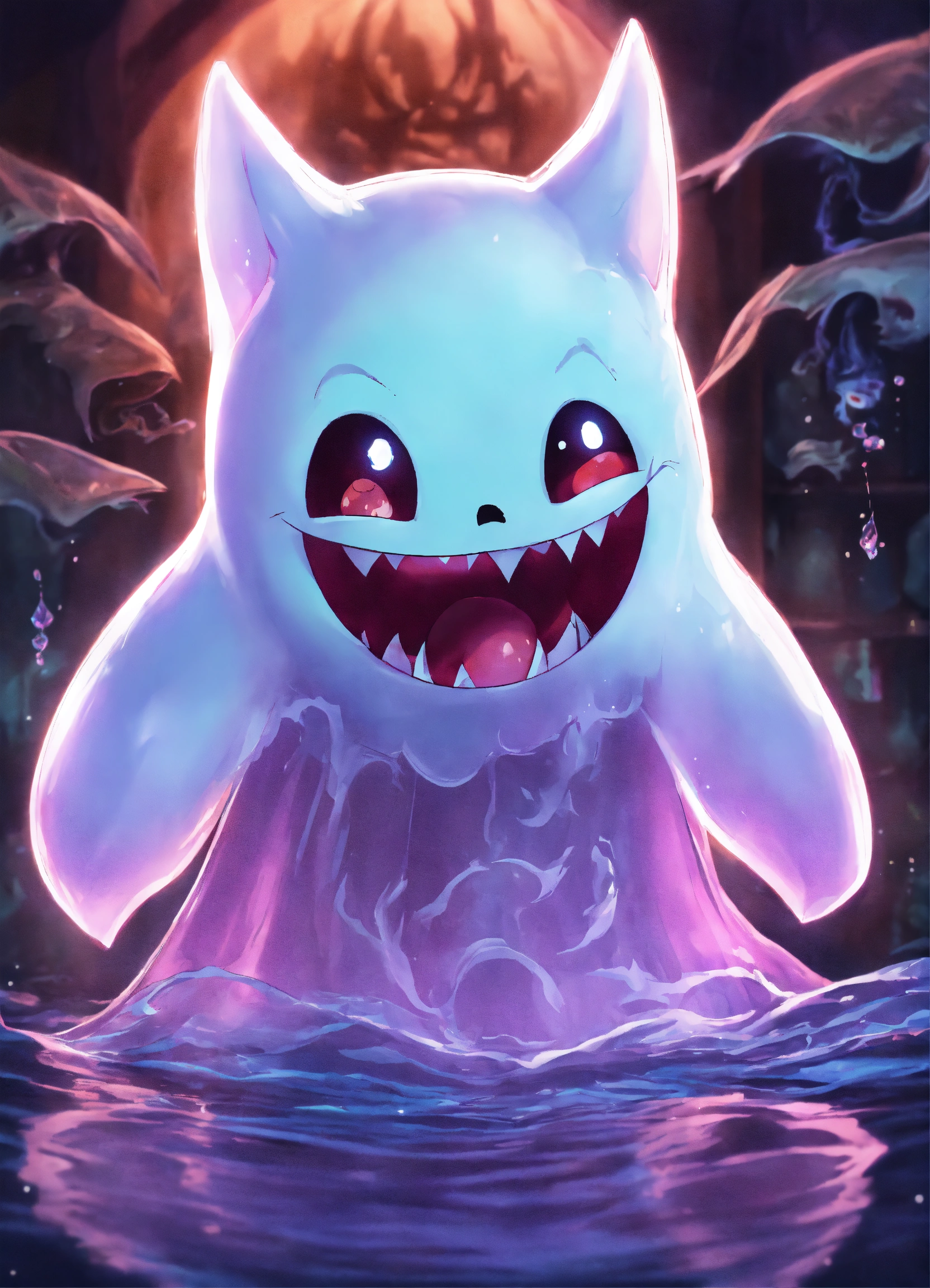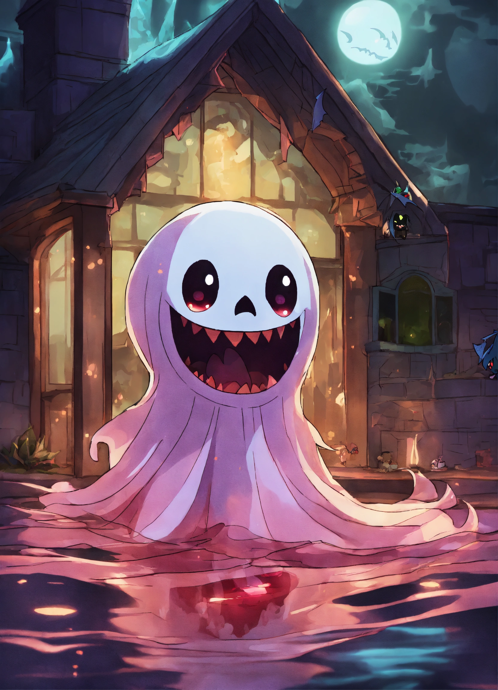 (evil transparent ghost with belly) and (fearful rouge the bat swimming entierly inside transparent ghost's belly), at night, anime sonic artstyle