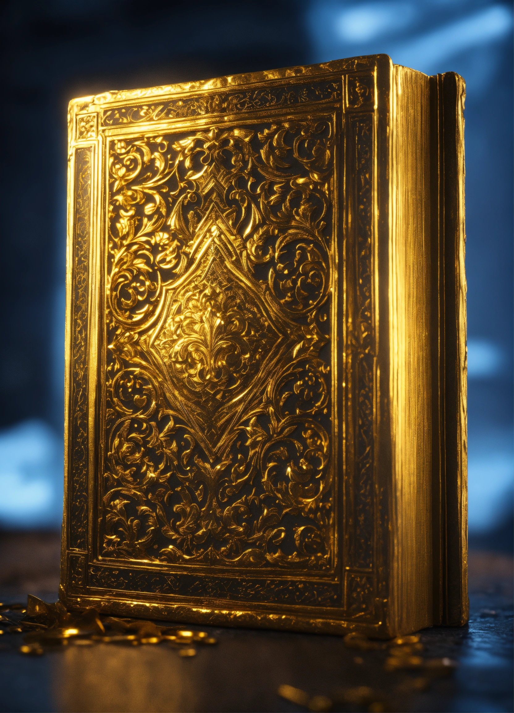 Enchanted tome covered in embossed gold