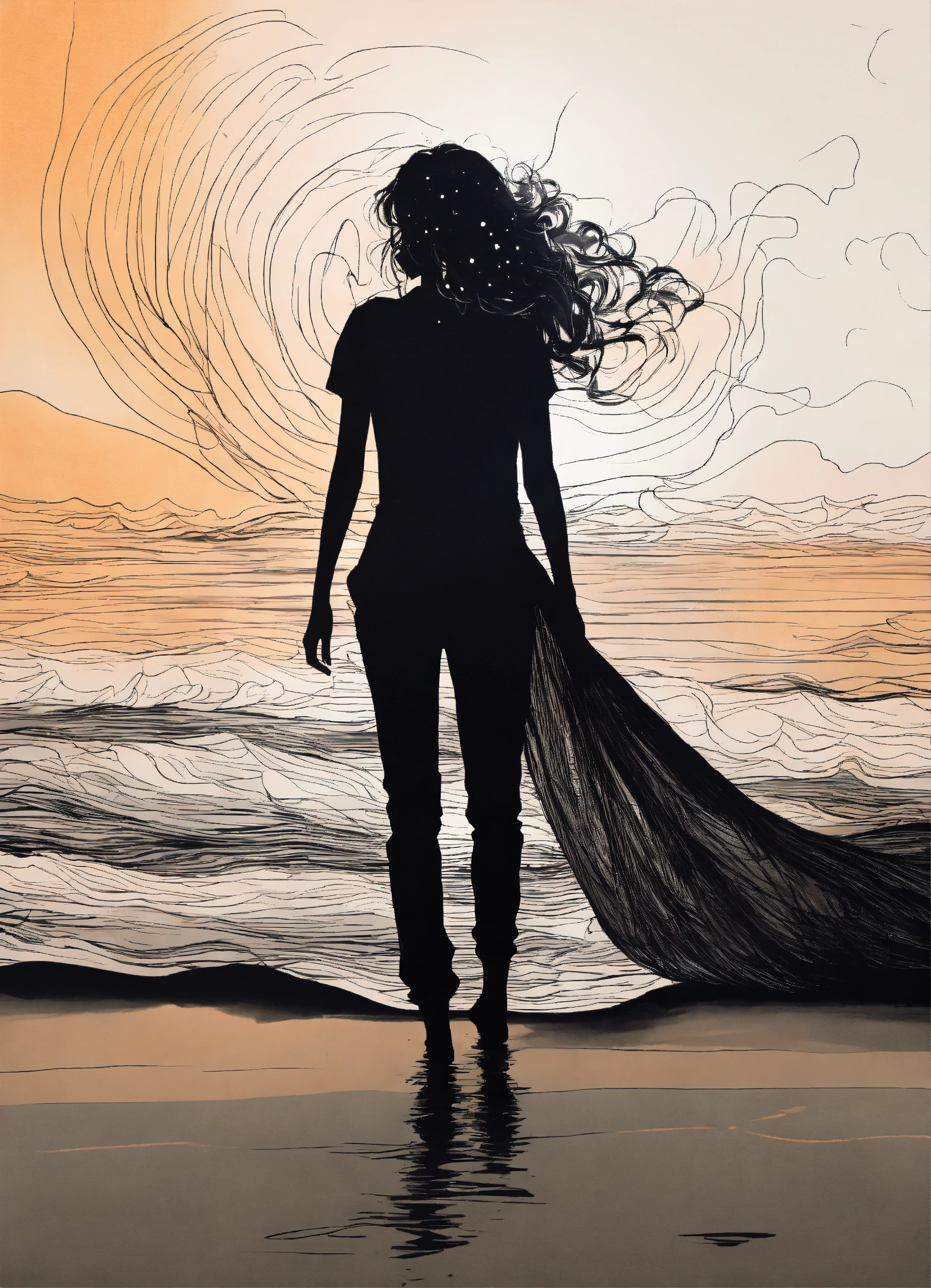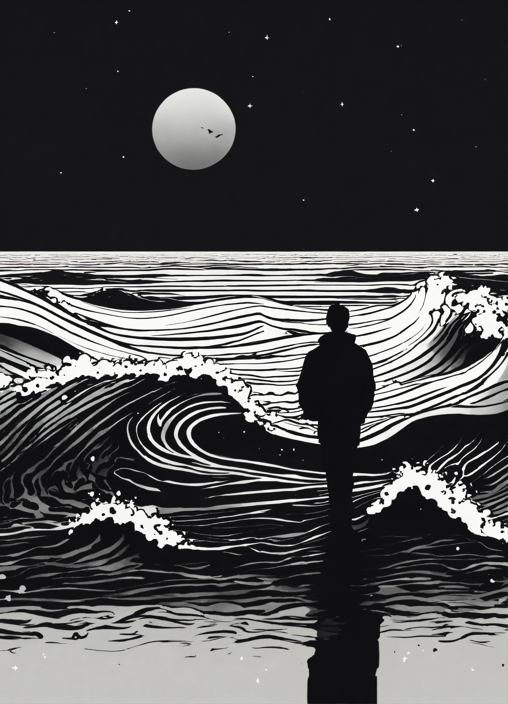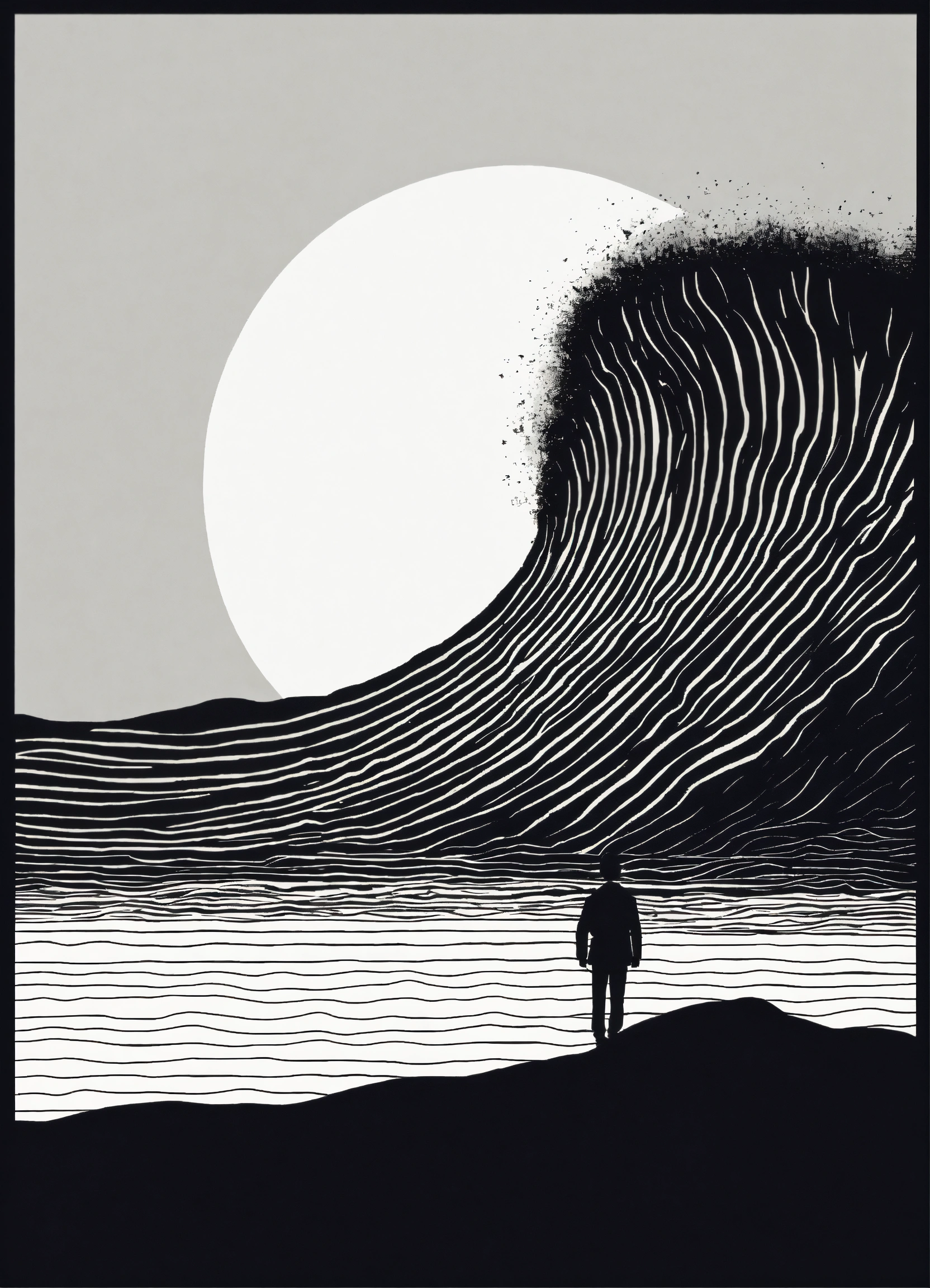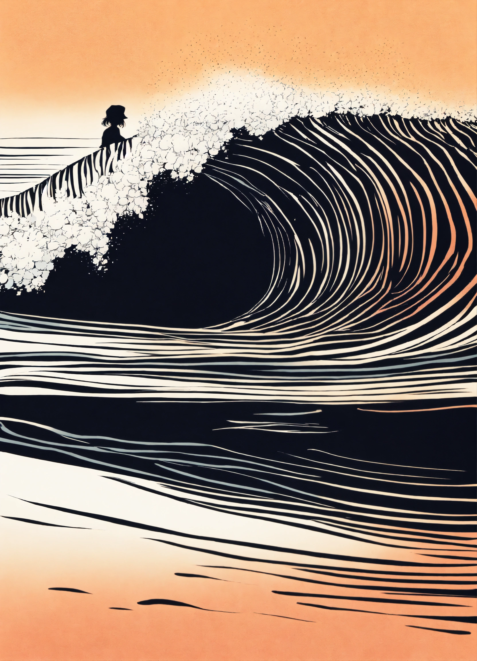 Ombre simple d'une personne et d'une vague le dessin est en noir