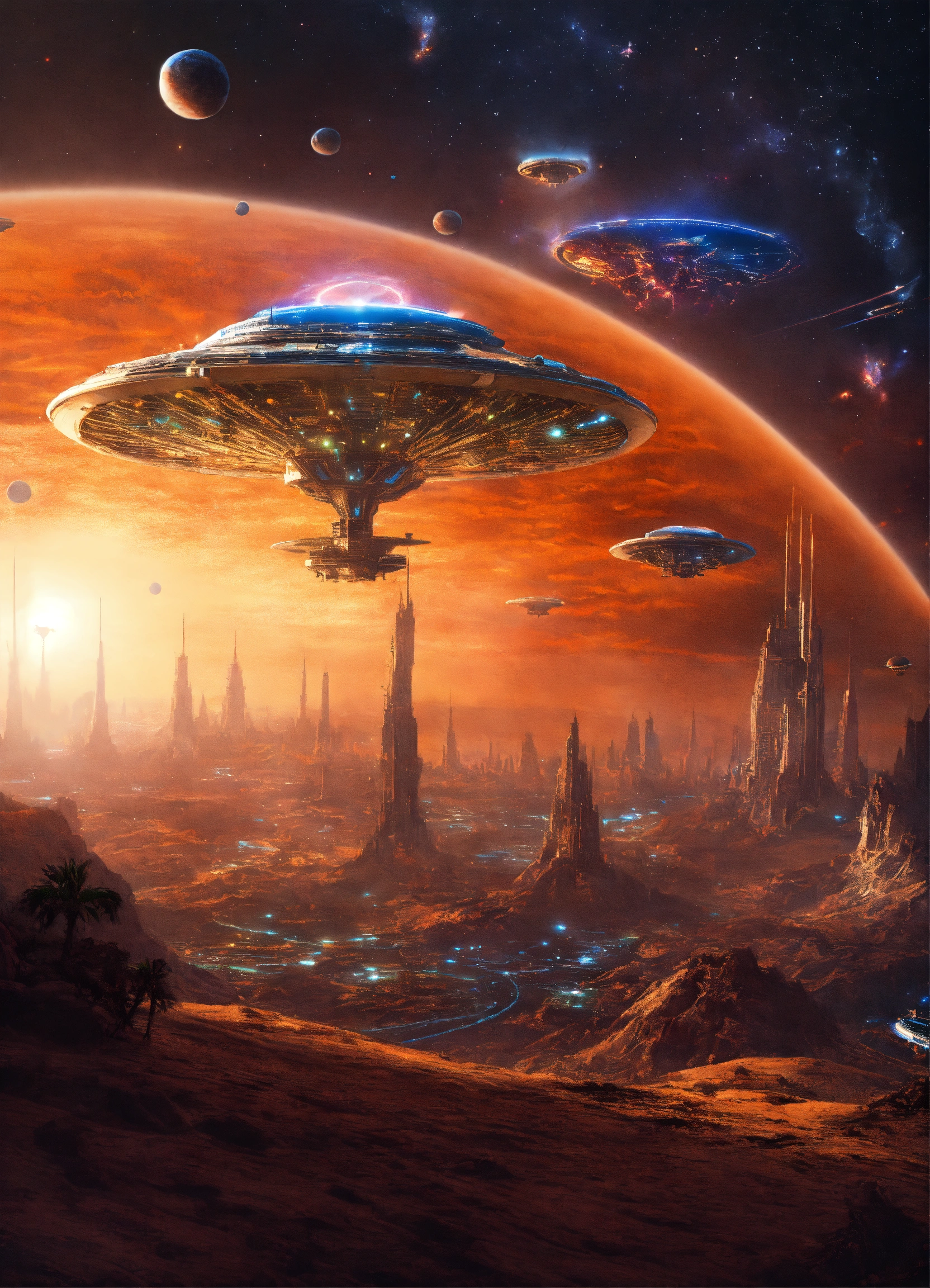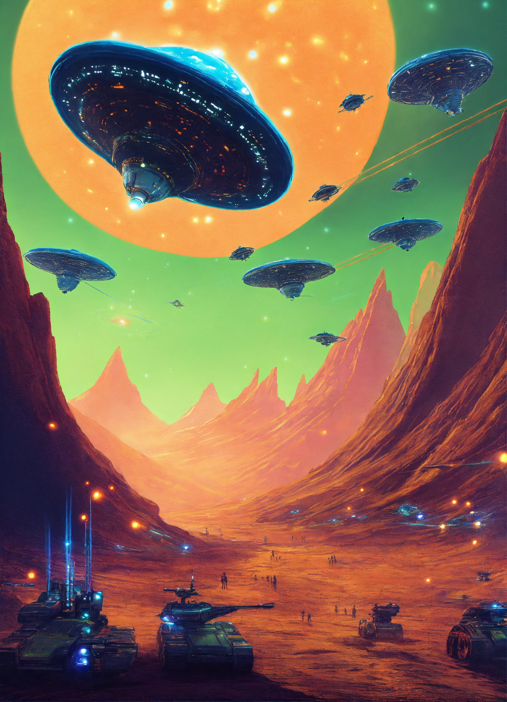 Alien invasion in the hyperspace with alien technology battles