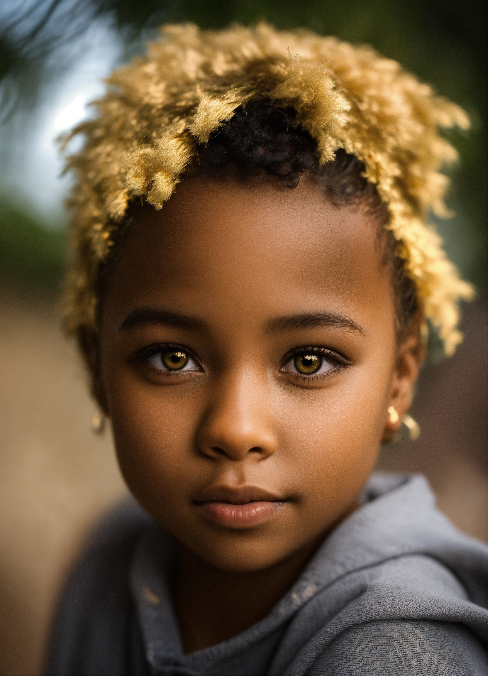 Black kid blonde hair golden eyes