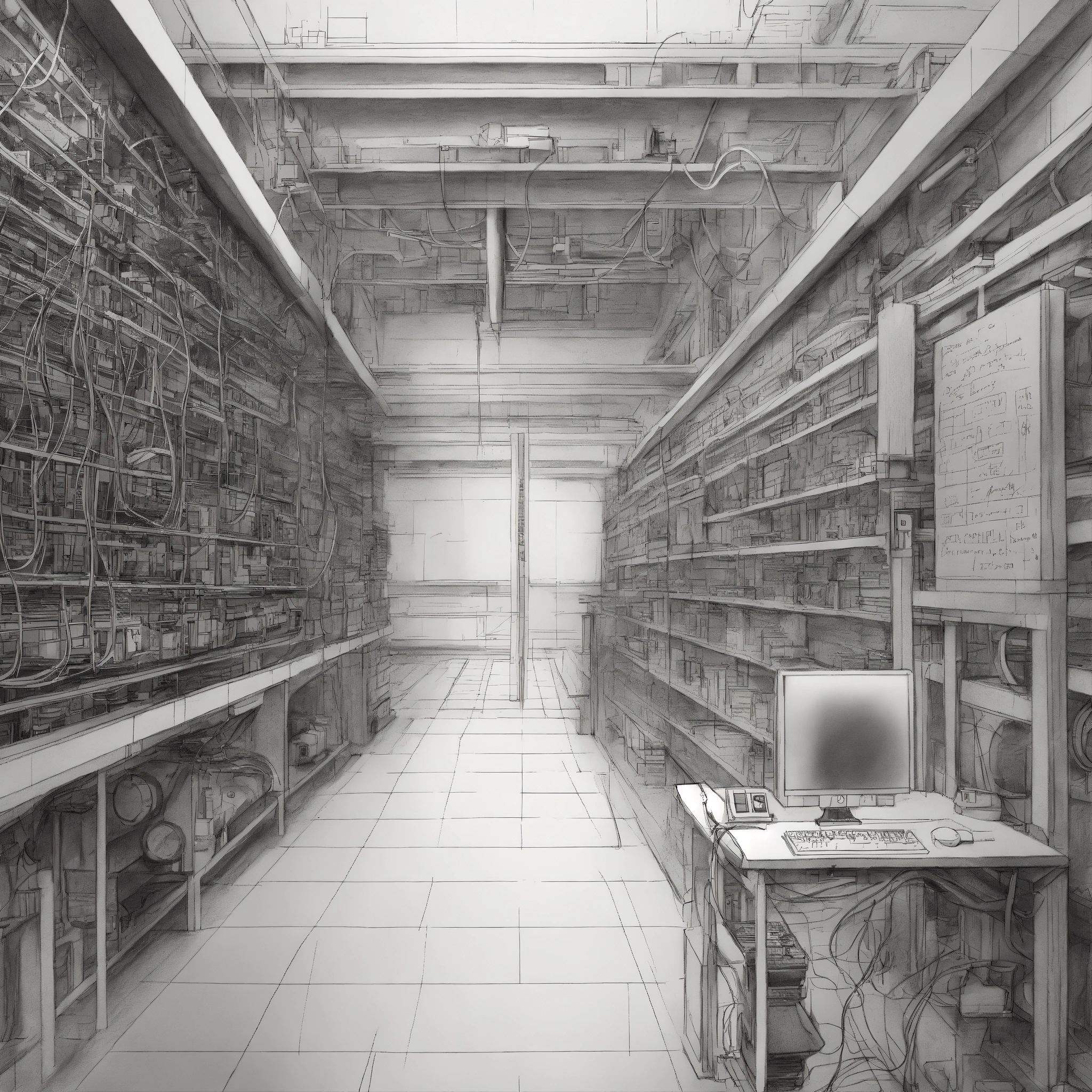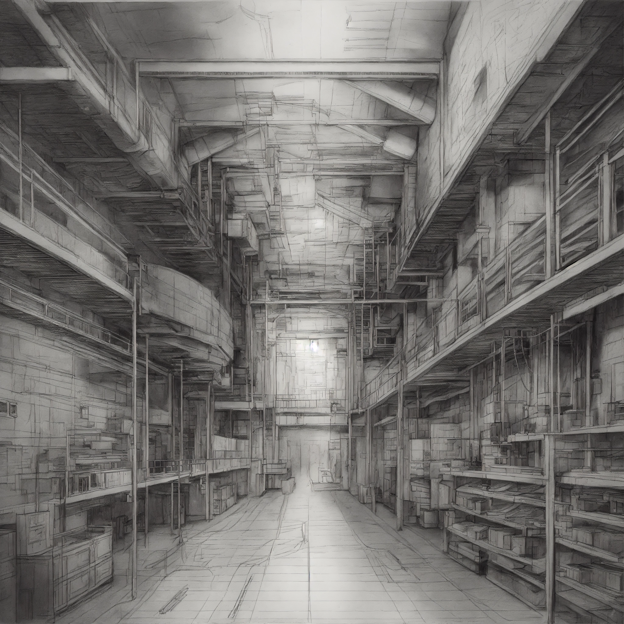Detailed engineering pencil sketch that explains the concept of deep learning