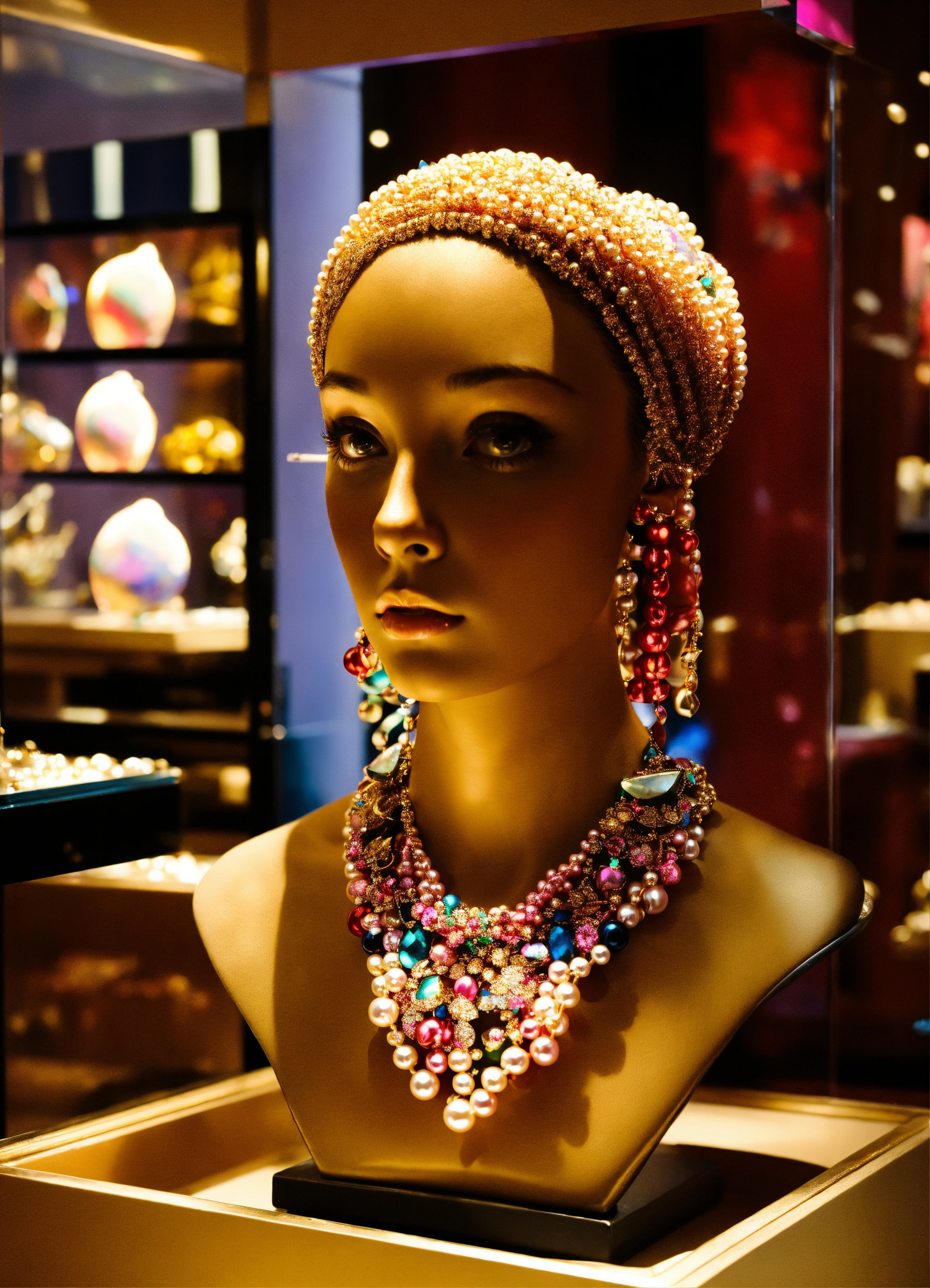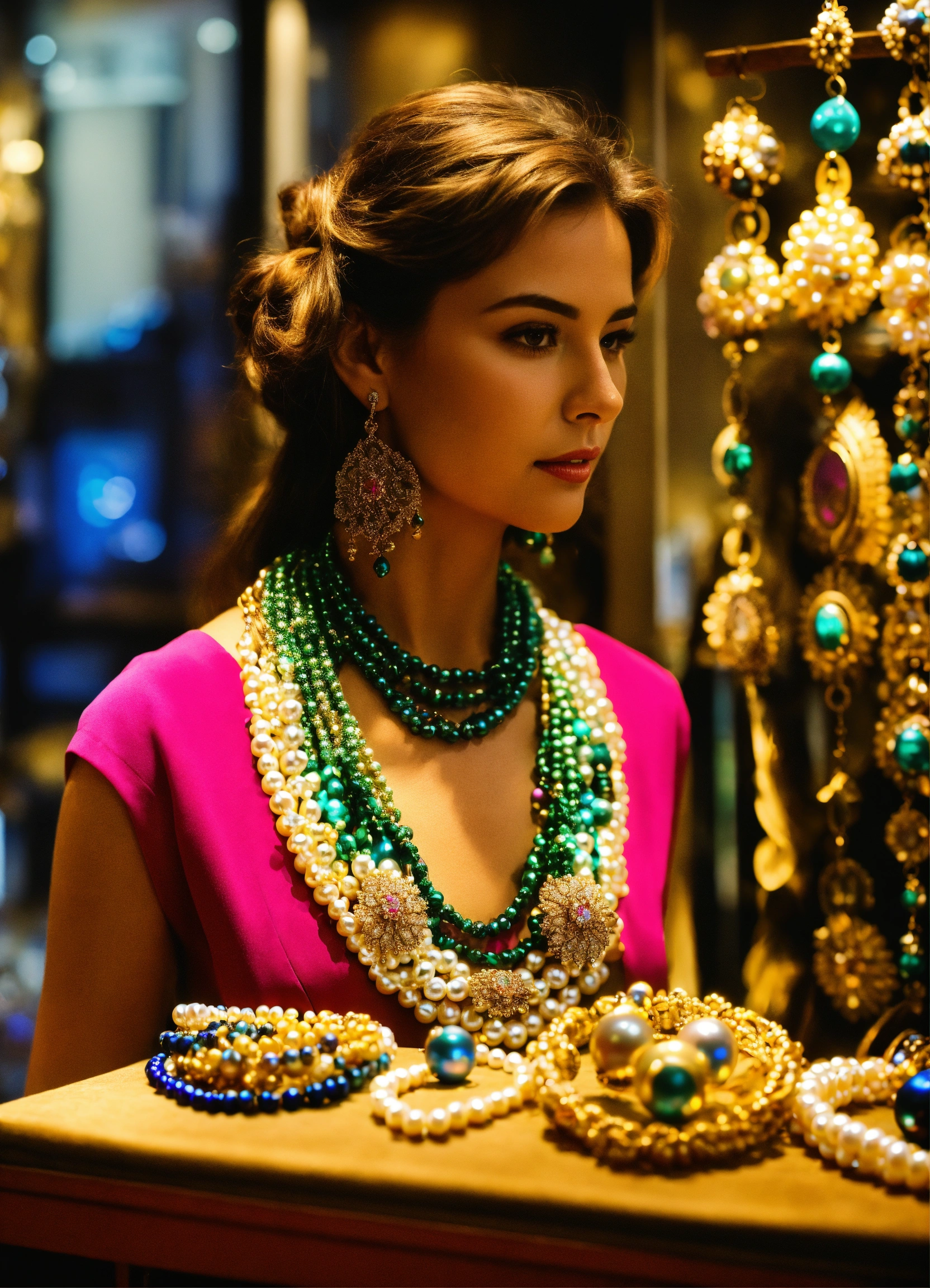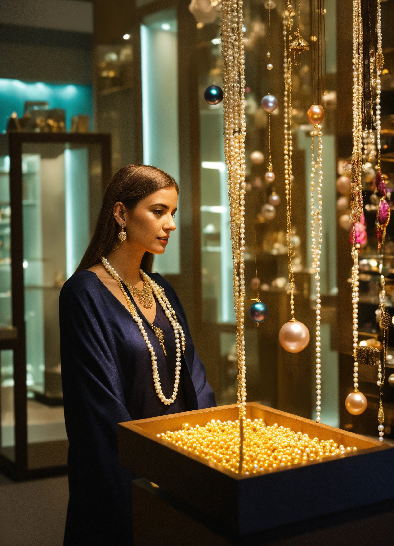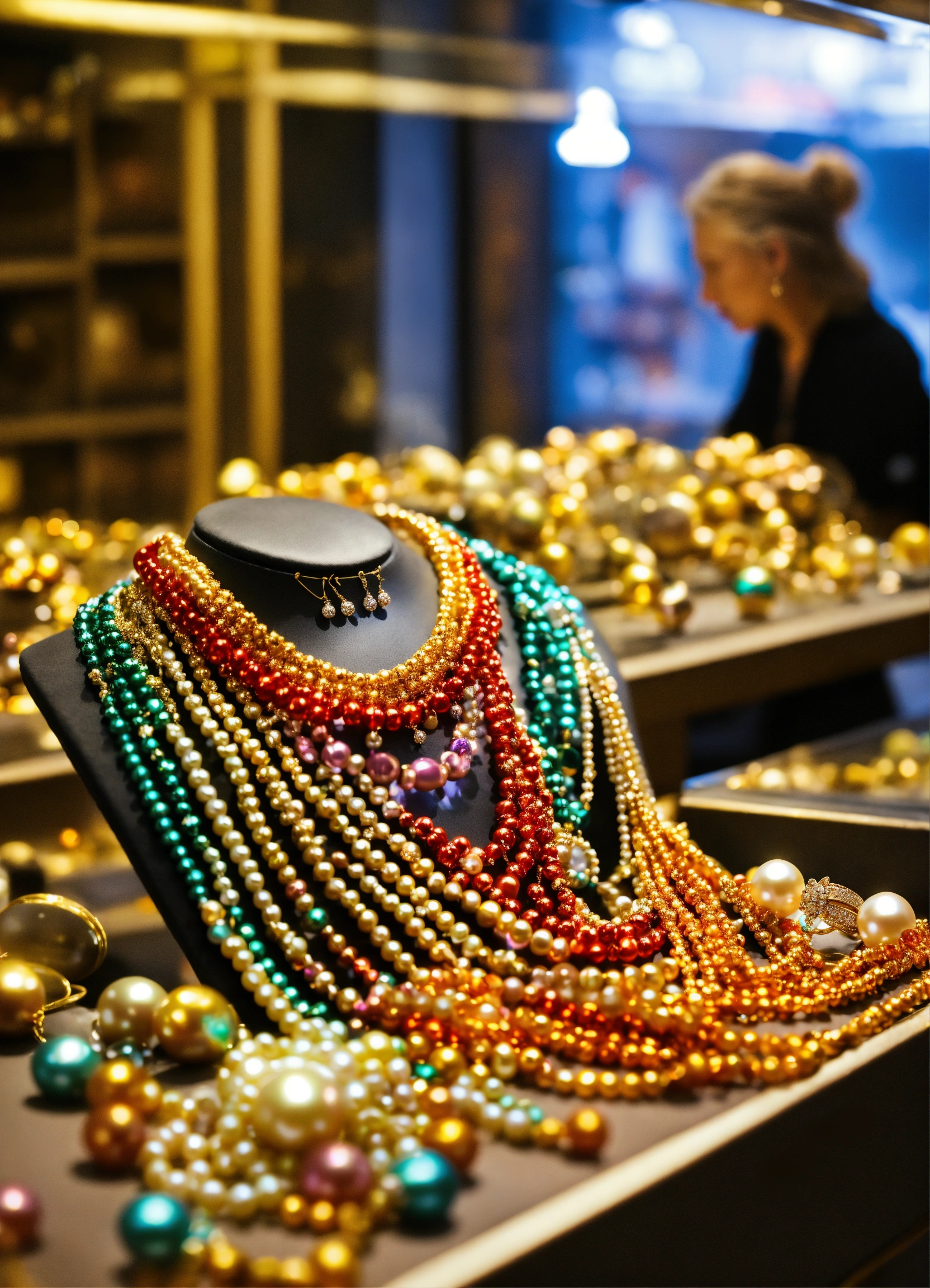 Jeweller in a jewellery store with color pearls watching me 3d art