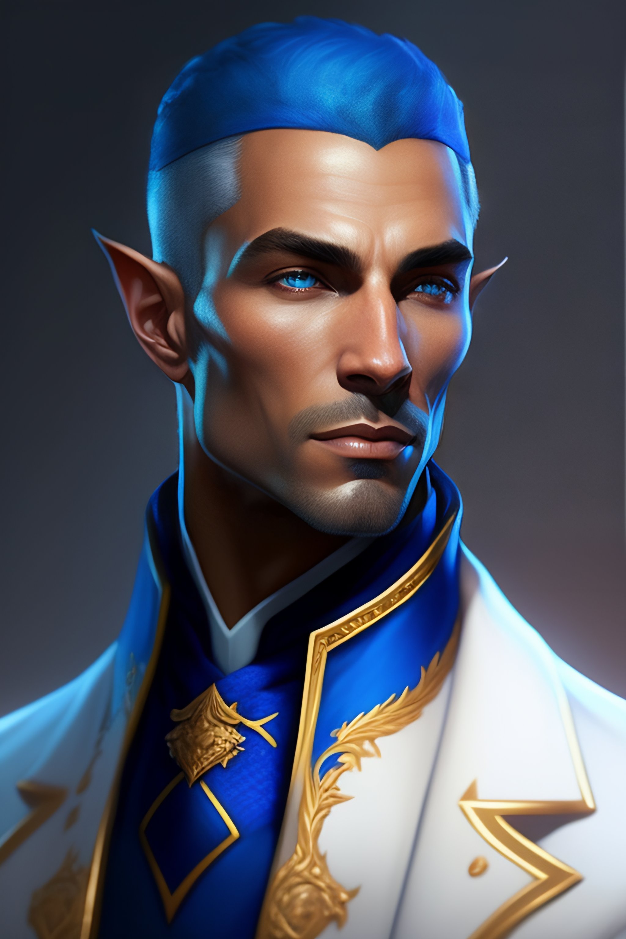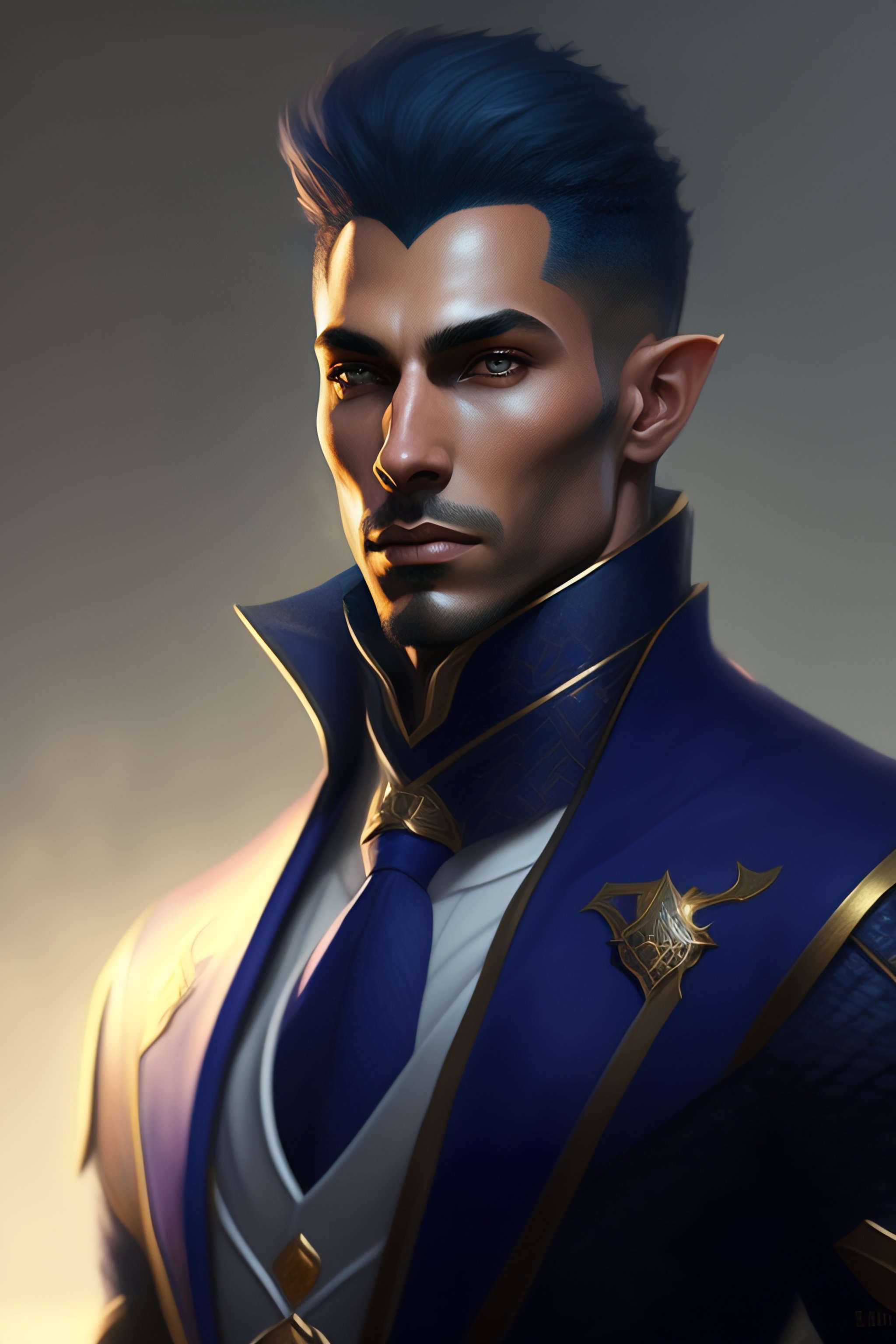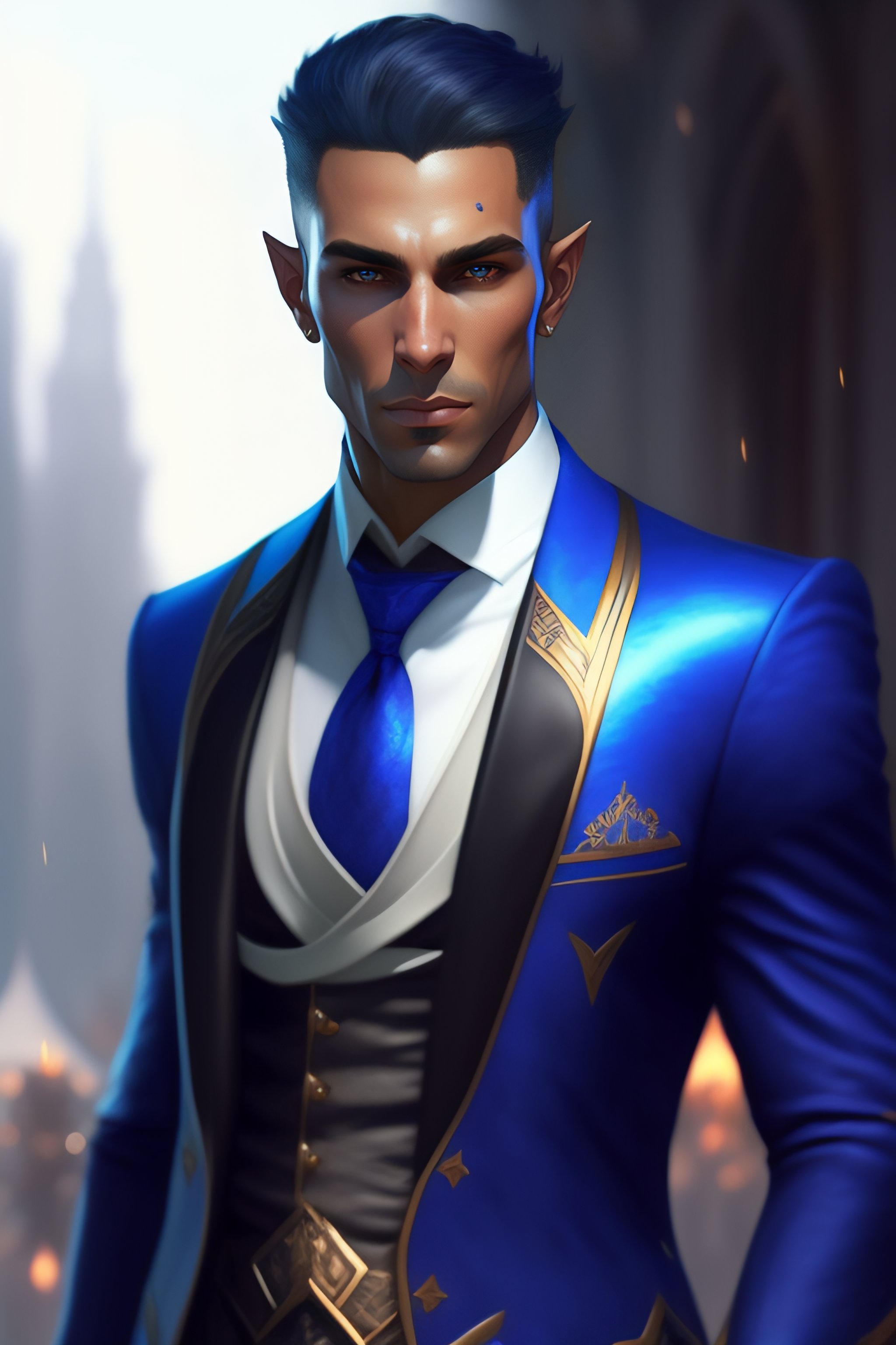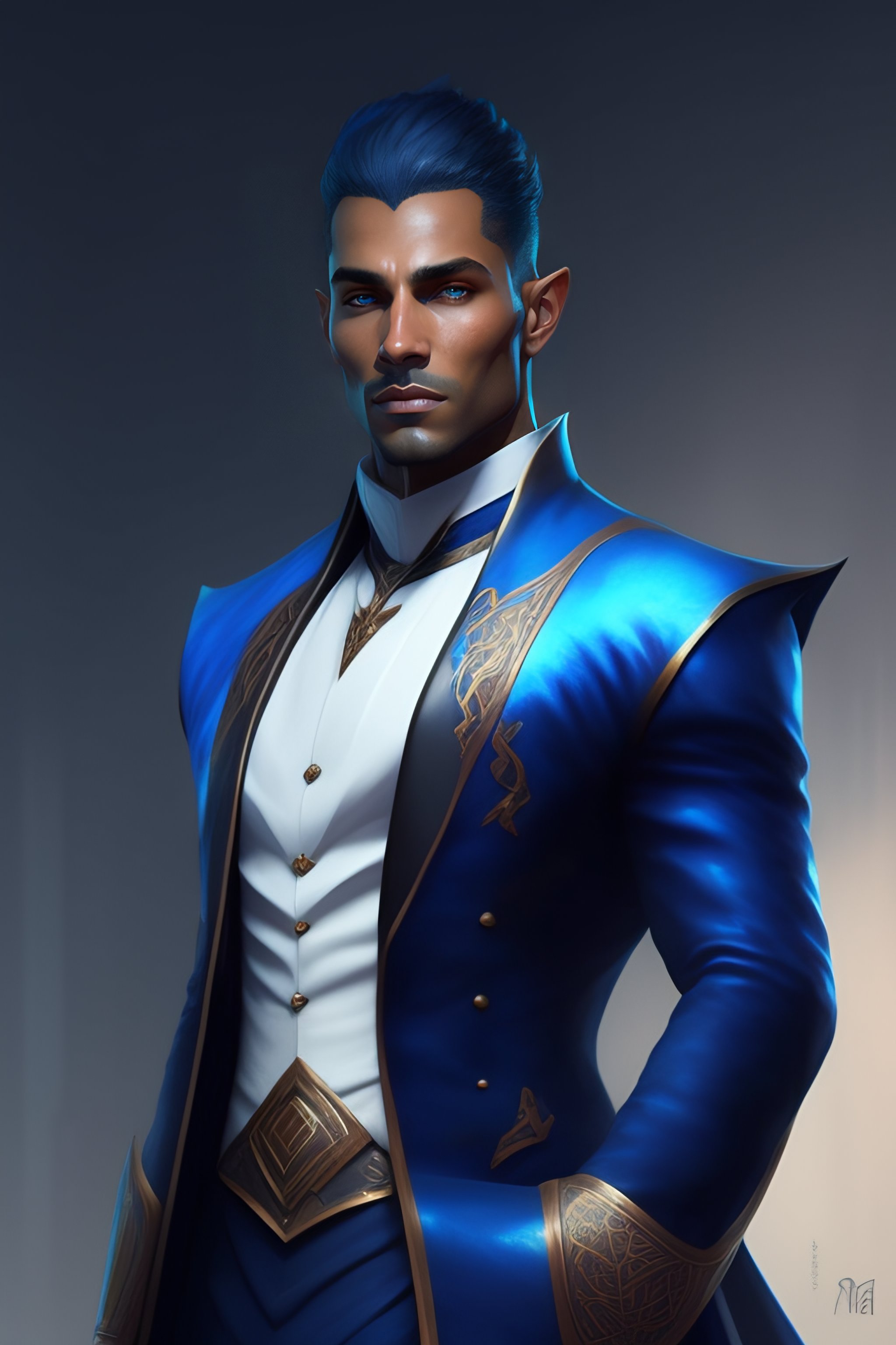 Male elf, blue scaled skin wearing aged suit, from d&d by greg rutkowski, d&d character, blue, black background, highly detailed portrait, digital painting, artstation, concept art, smooth, sharp foccus ilustration, artstation hq