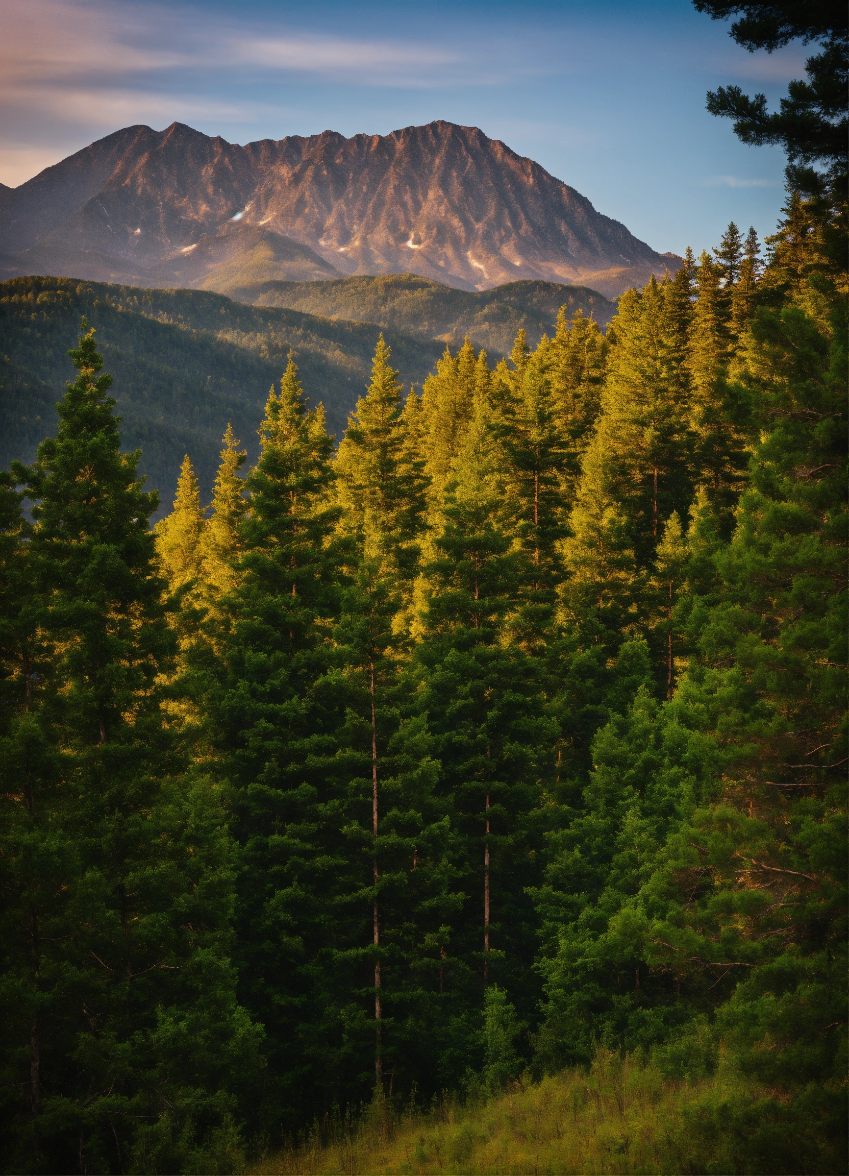 Pine trees near mountain