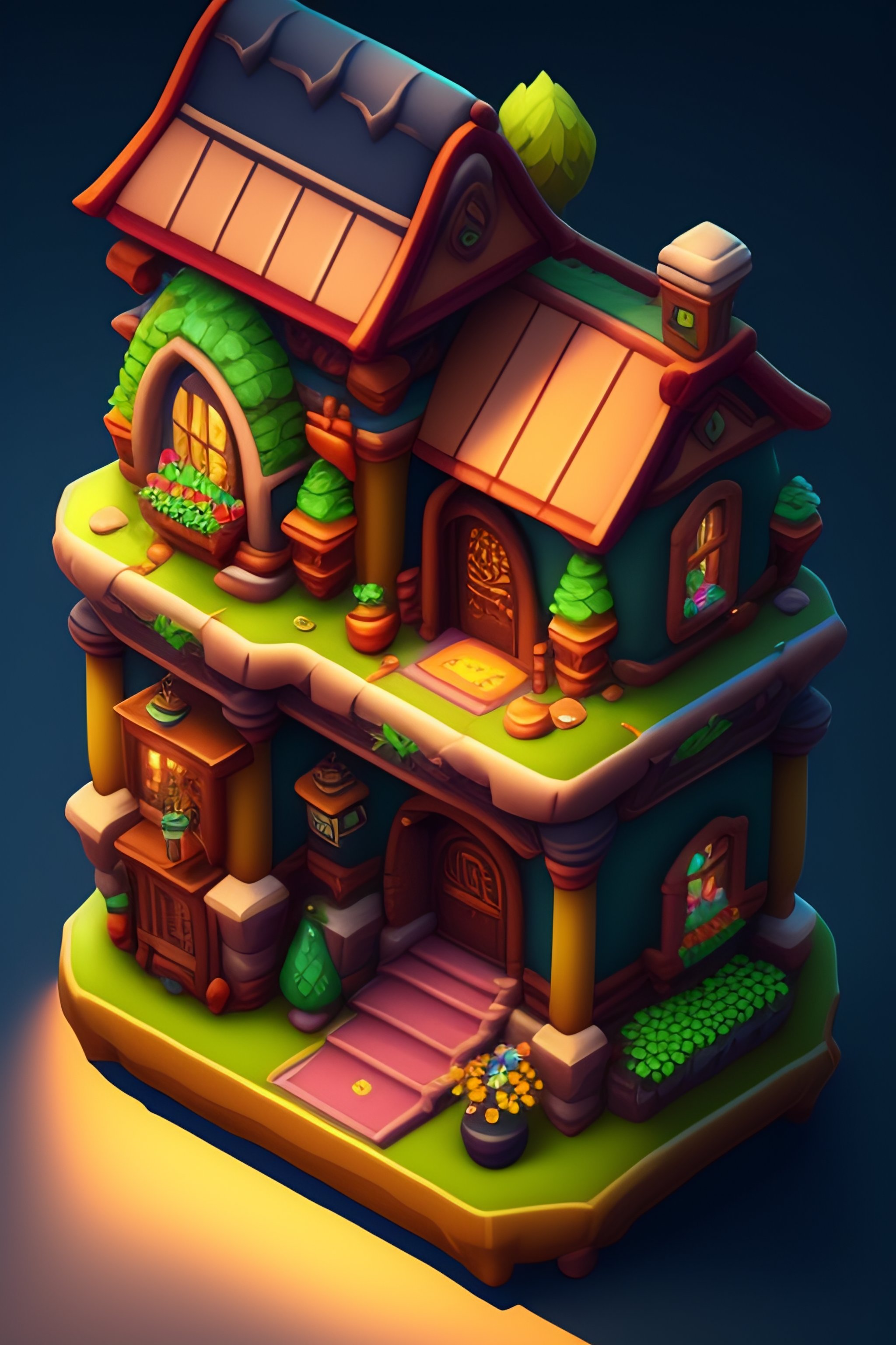 Isometric house, concept art, by senior environment artist, featured on polycount, romanesque, 2d game art, isometric, artstation