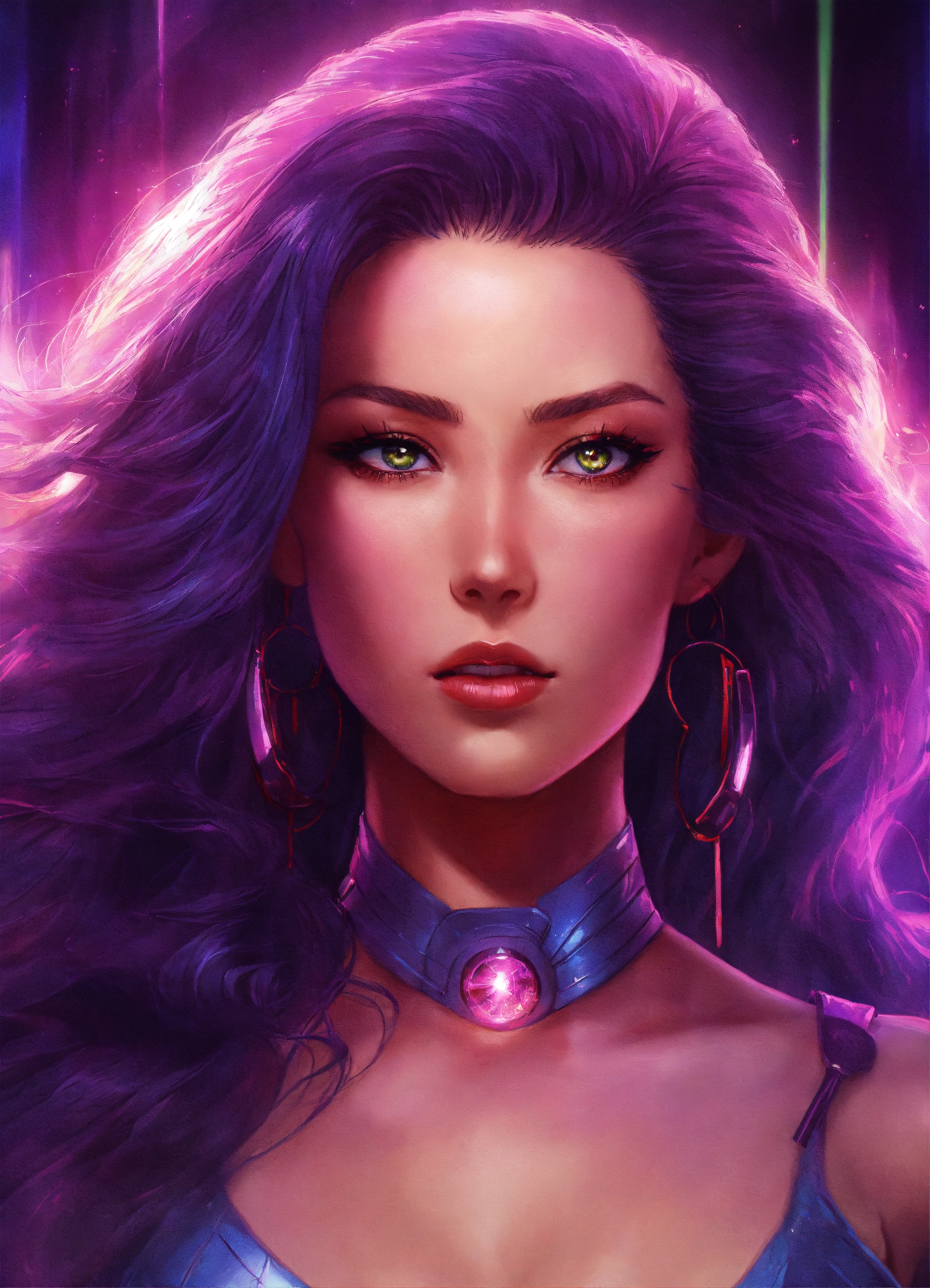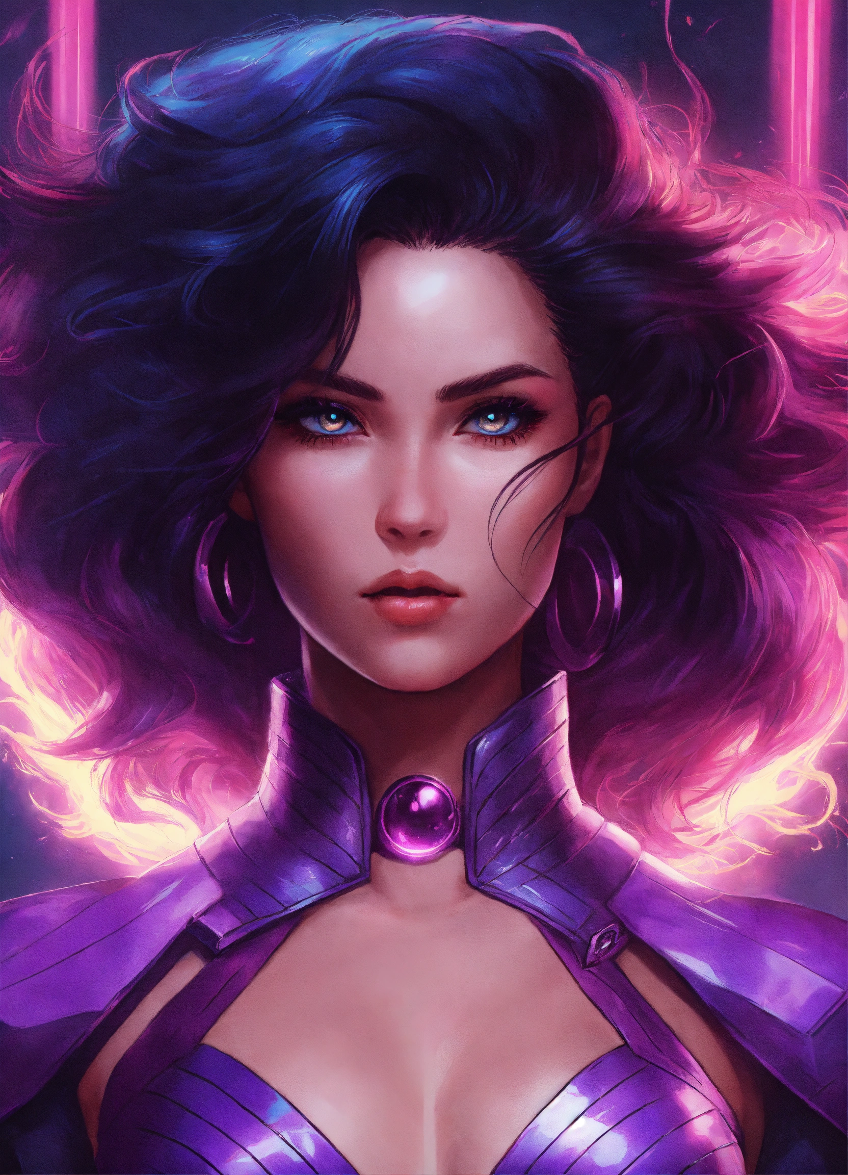 "80s psylocke", big hair, psionic, psychic, light, glowing, power, intricately detailed eyes, head and shoulders portrait