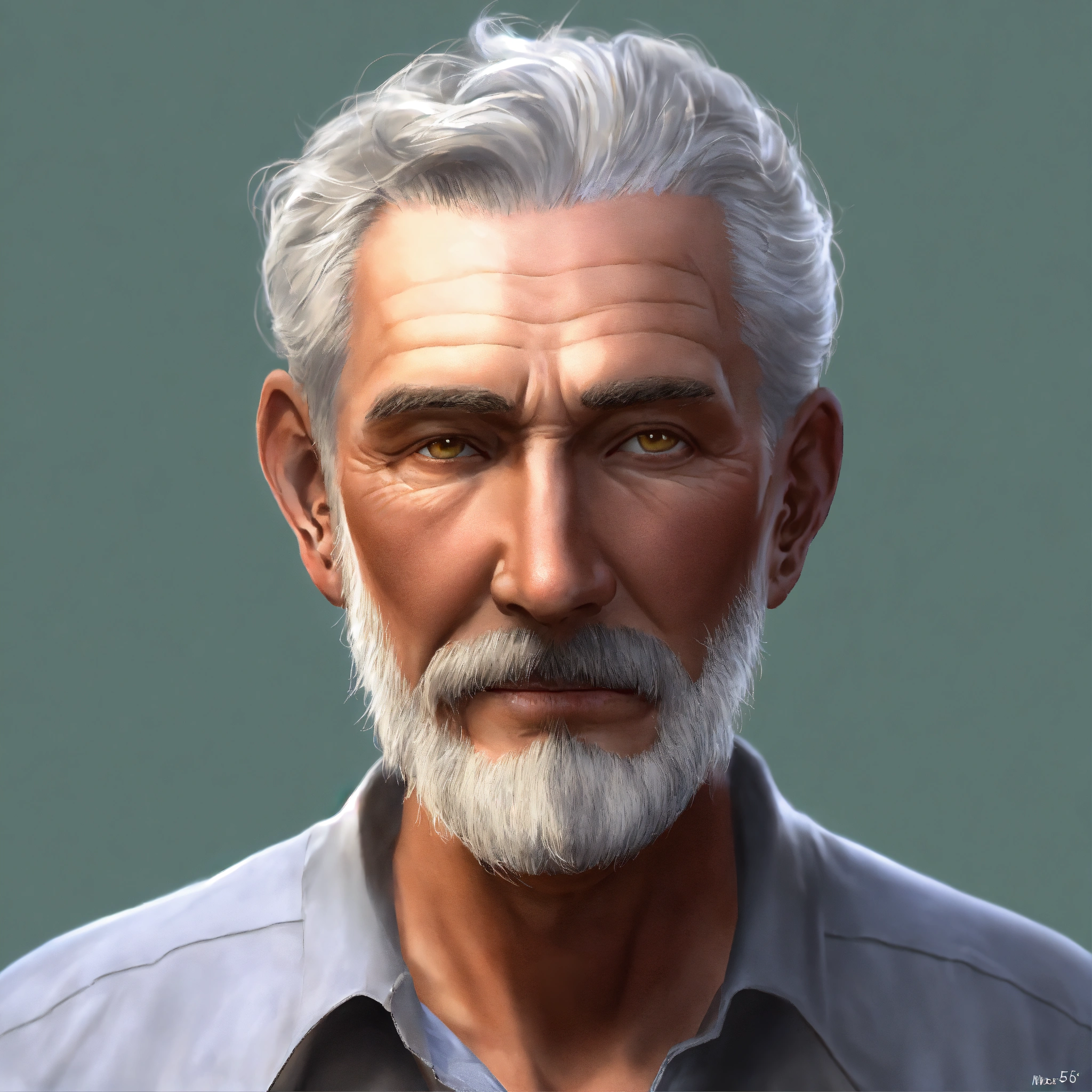 Old man grey, in his 50tes. middelage man goatee grey light hair with pale part in the middle, white skin digital art