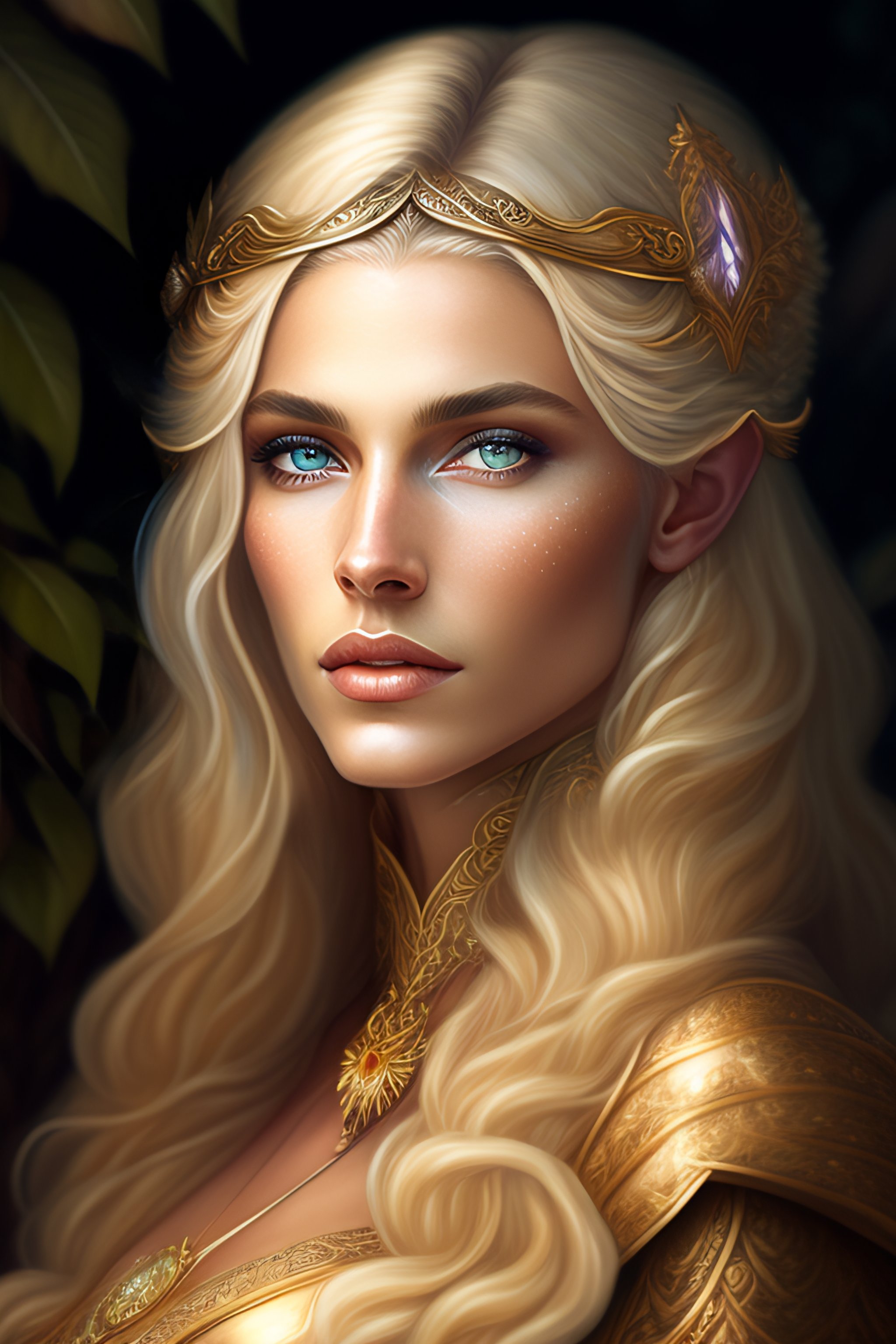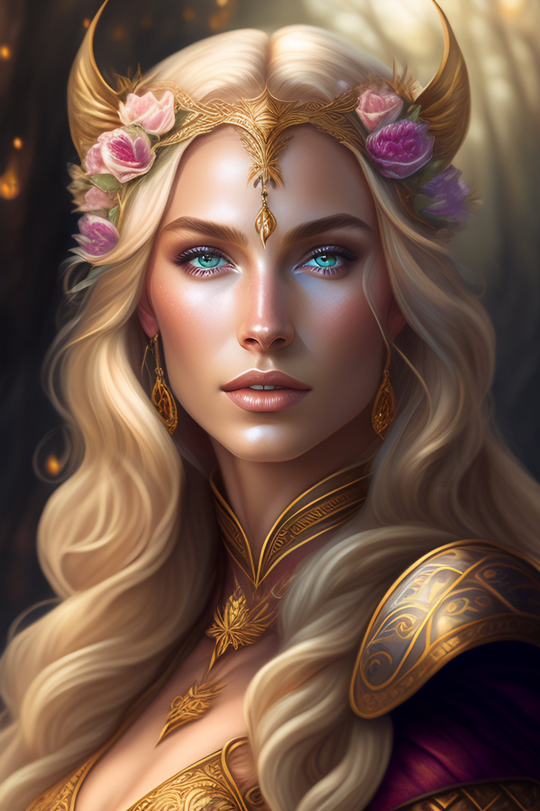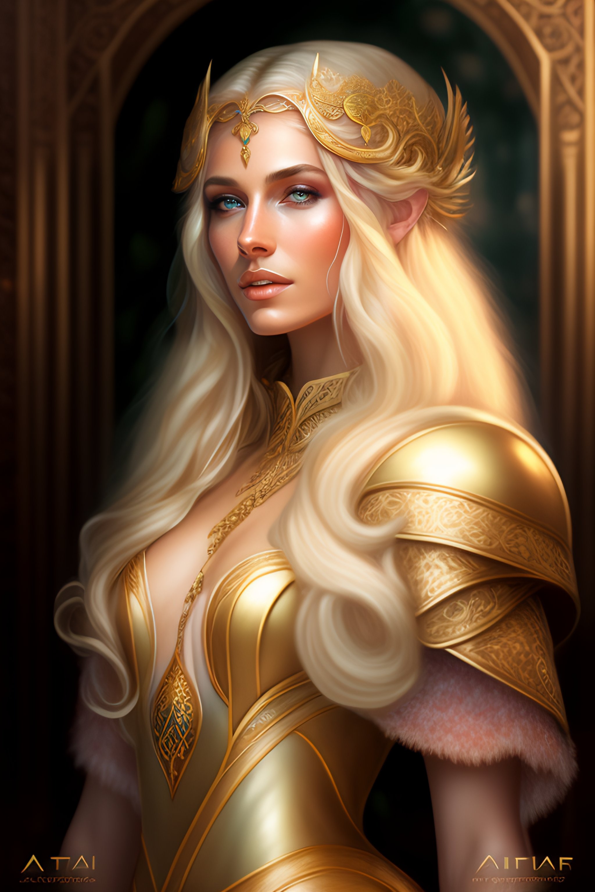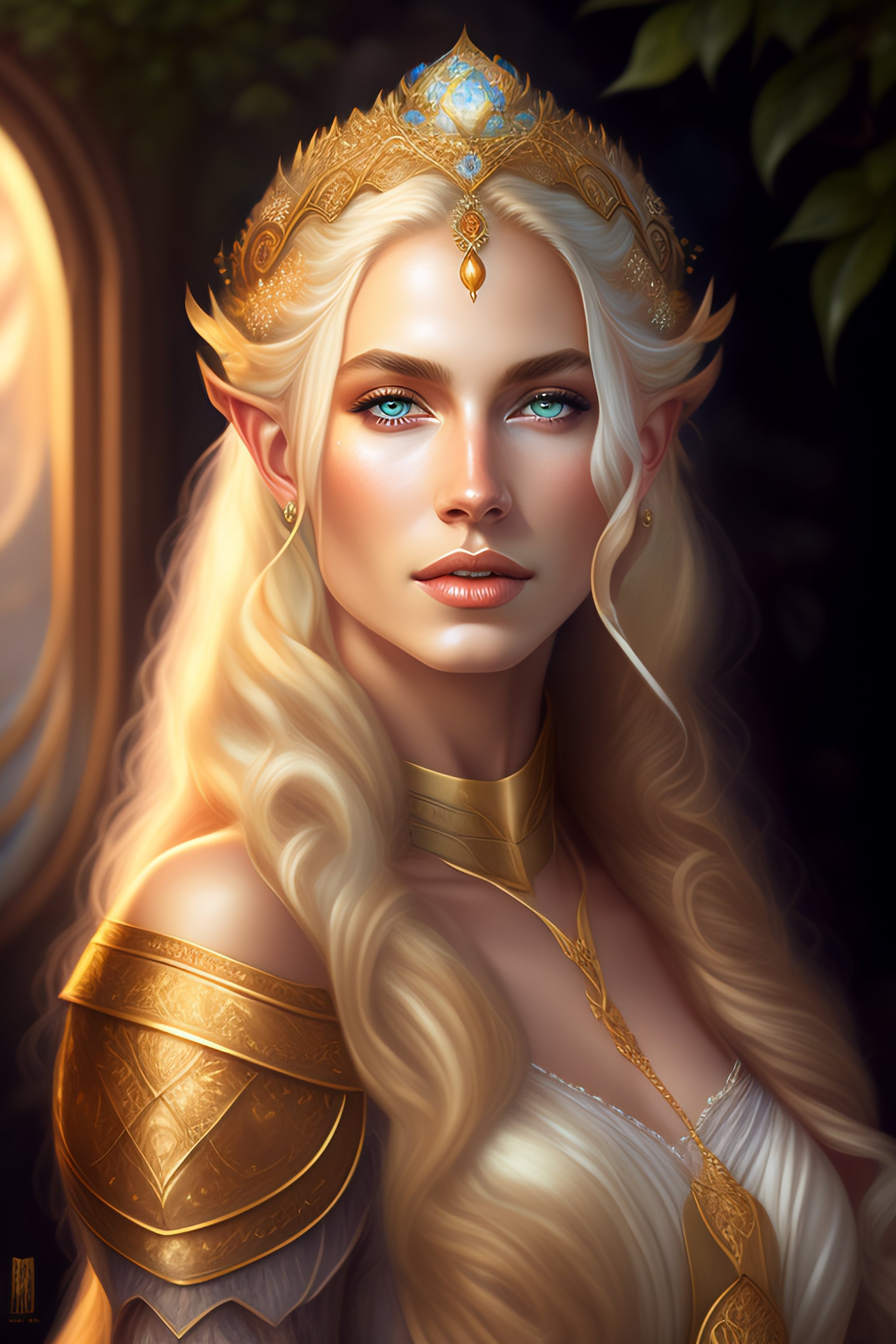 A masterpiece painting of a blonde elven princess, fantasy outfit, photorealistic face, 8k, d&d, fantasy, intricate, elegant, highly detailed, digital painting, atmospheric lighting, elaborate background, depth of field, artstation, award-winning, concept art, matte, sharp focus, illustration, art by artgerm and greg rutkowski and alphonse mucha