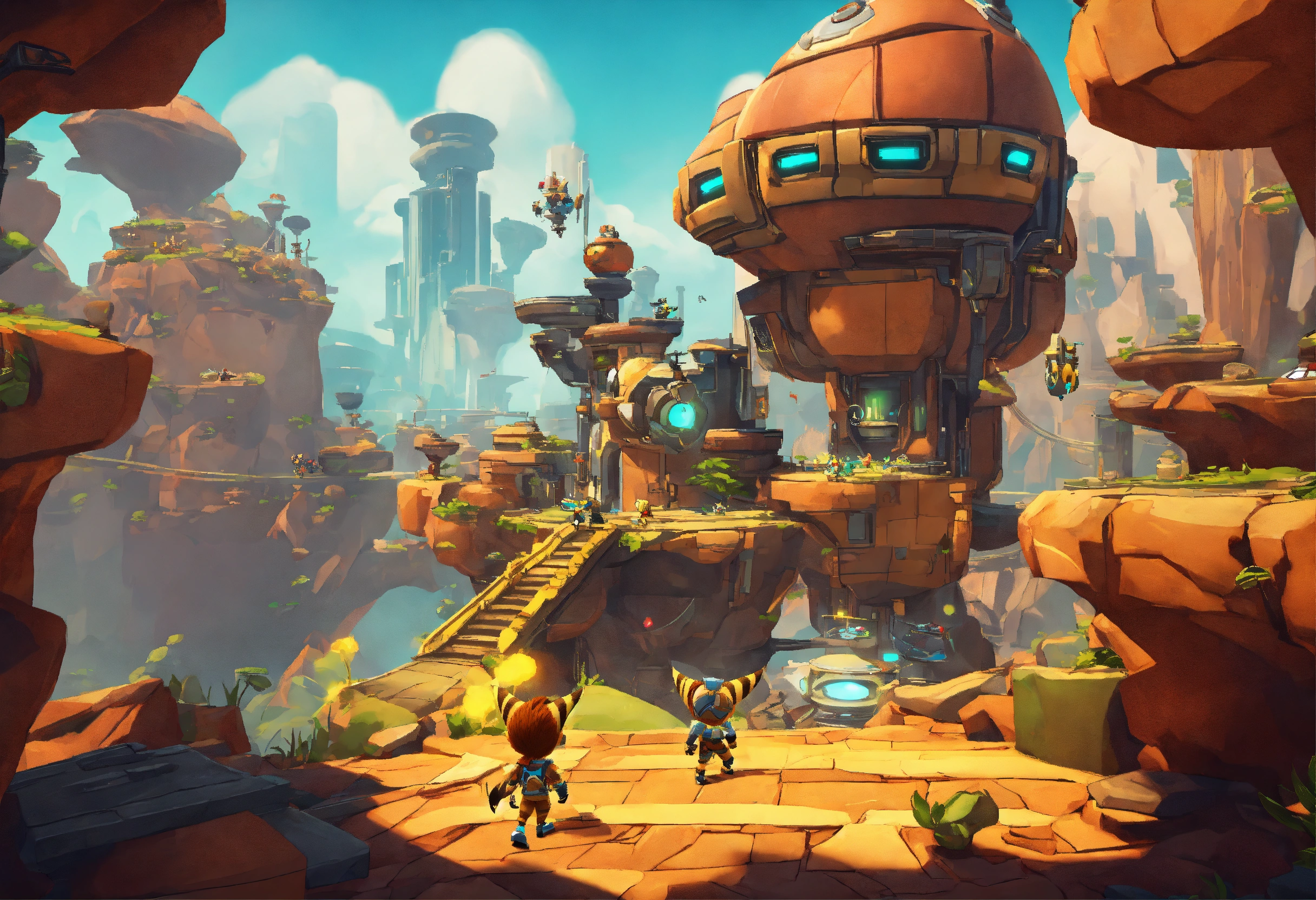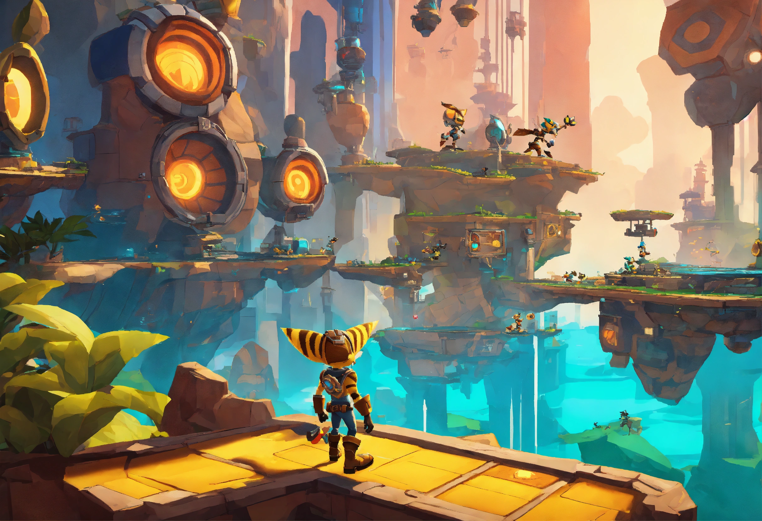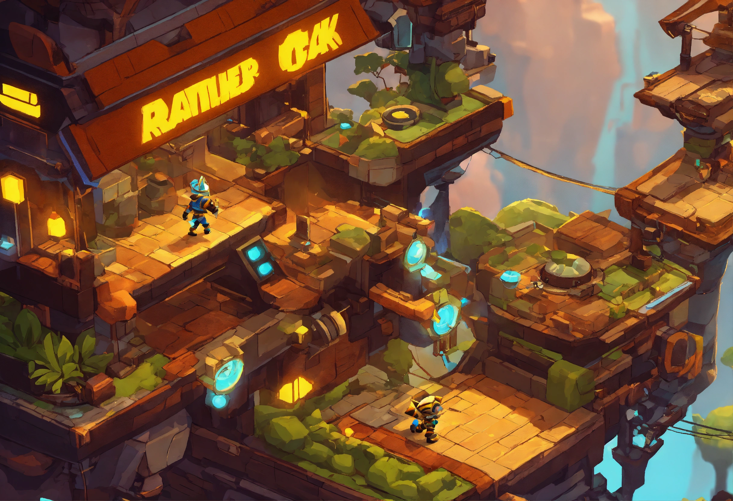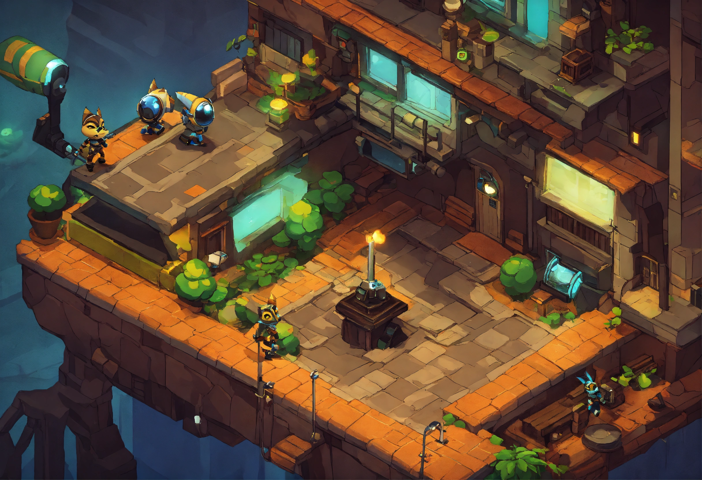 Jogo de plataforma 2d estilo ratchet and clank com perspectiva isométrica