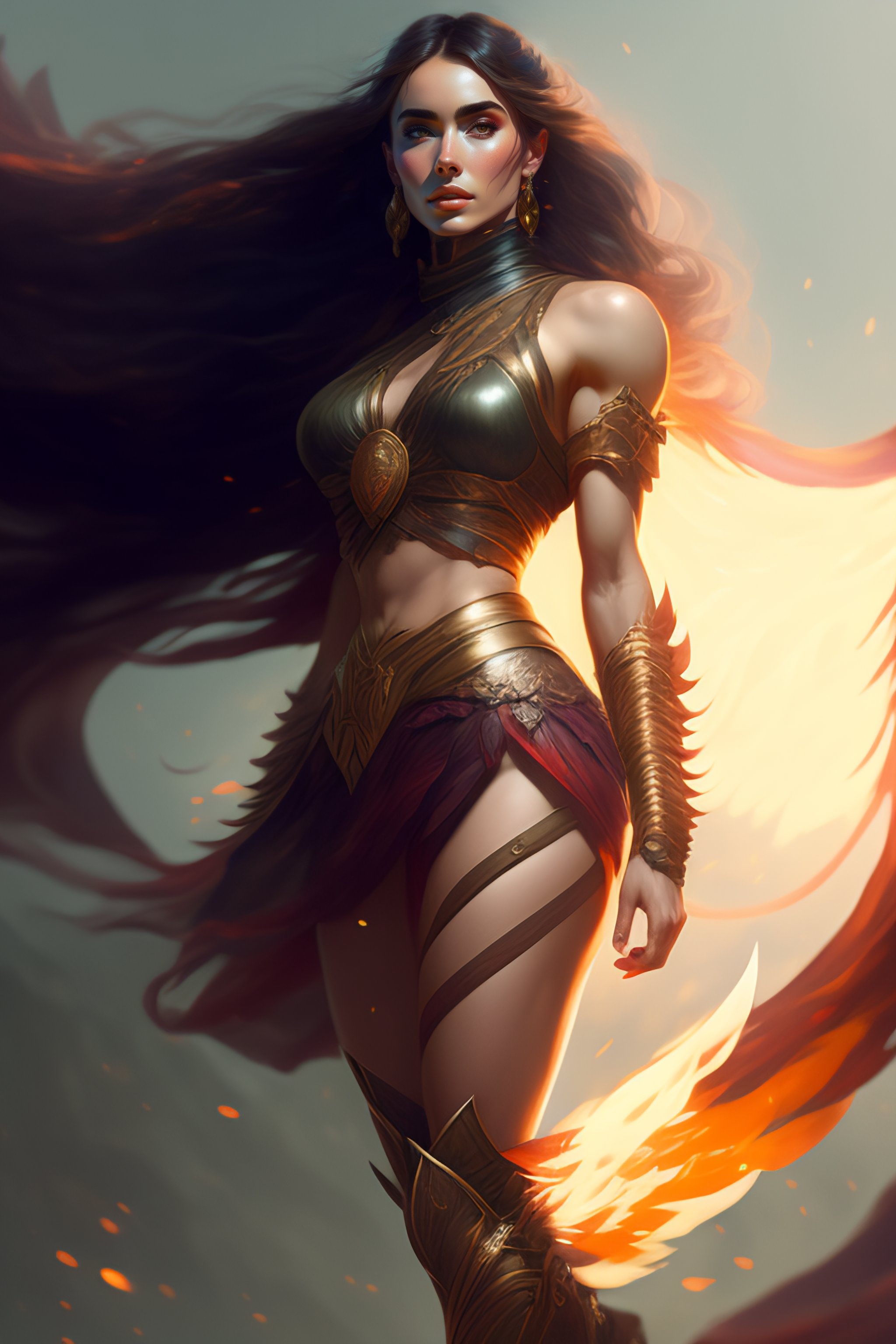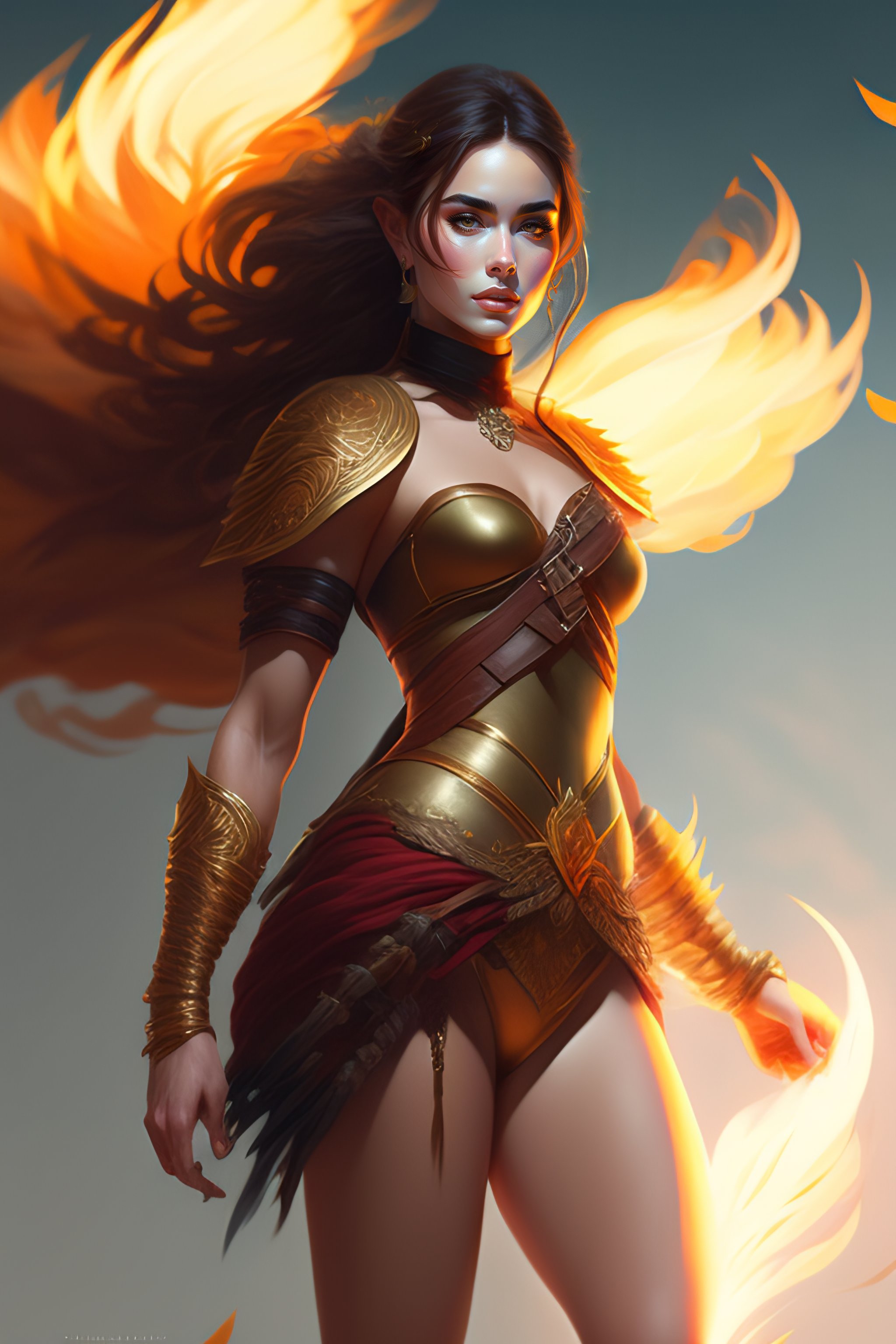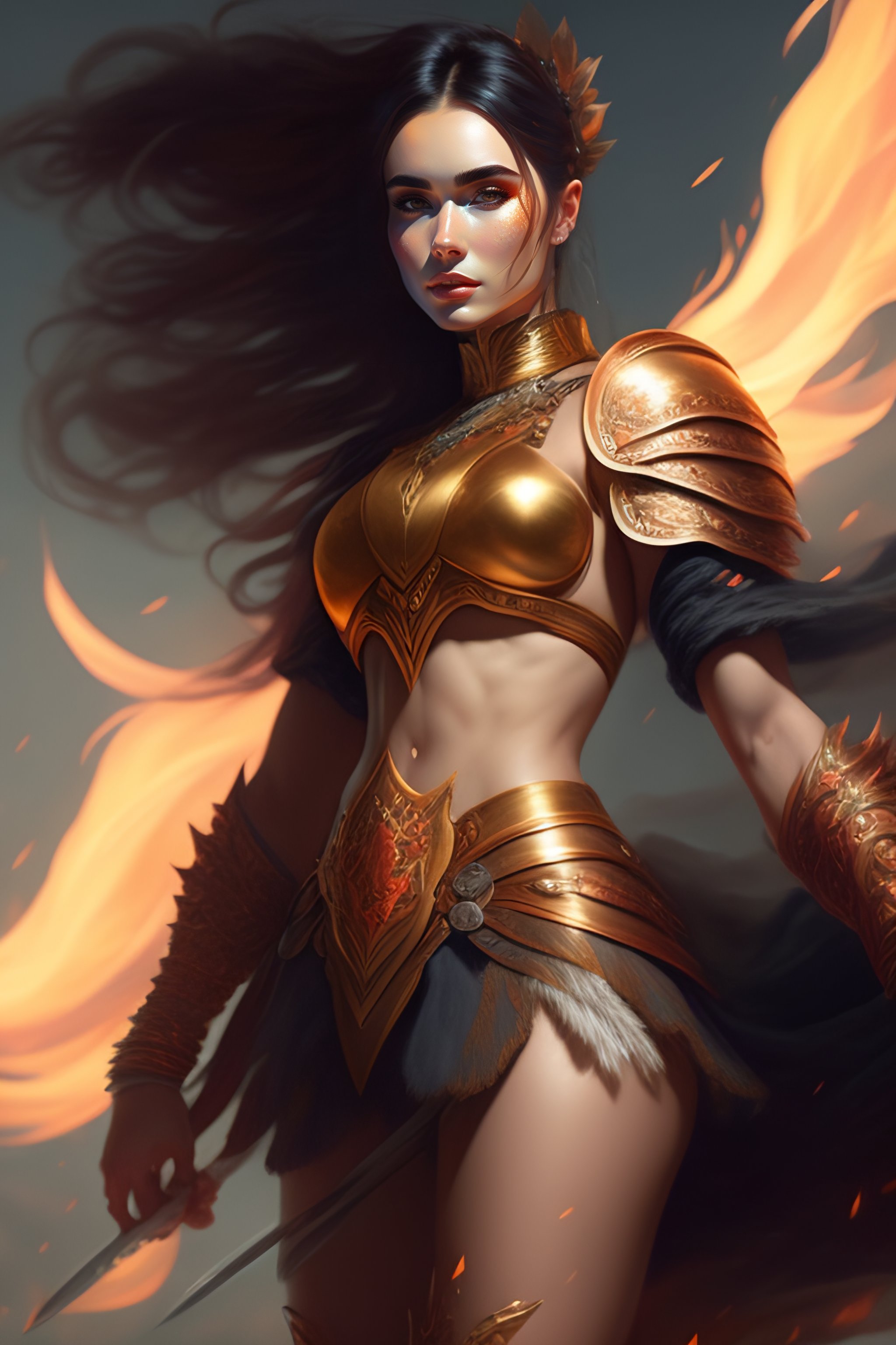 Full body potrait of muscular lily collins as rugged warrior sparying sword(flame) in air, muscular legs and six abs, highly detailed, digital painting, artstation, concept art, smooth, sharp focus, illustration, art by tian zi and wlop and alphonse mucha