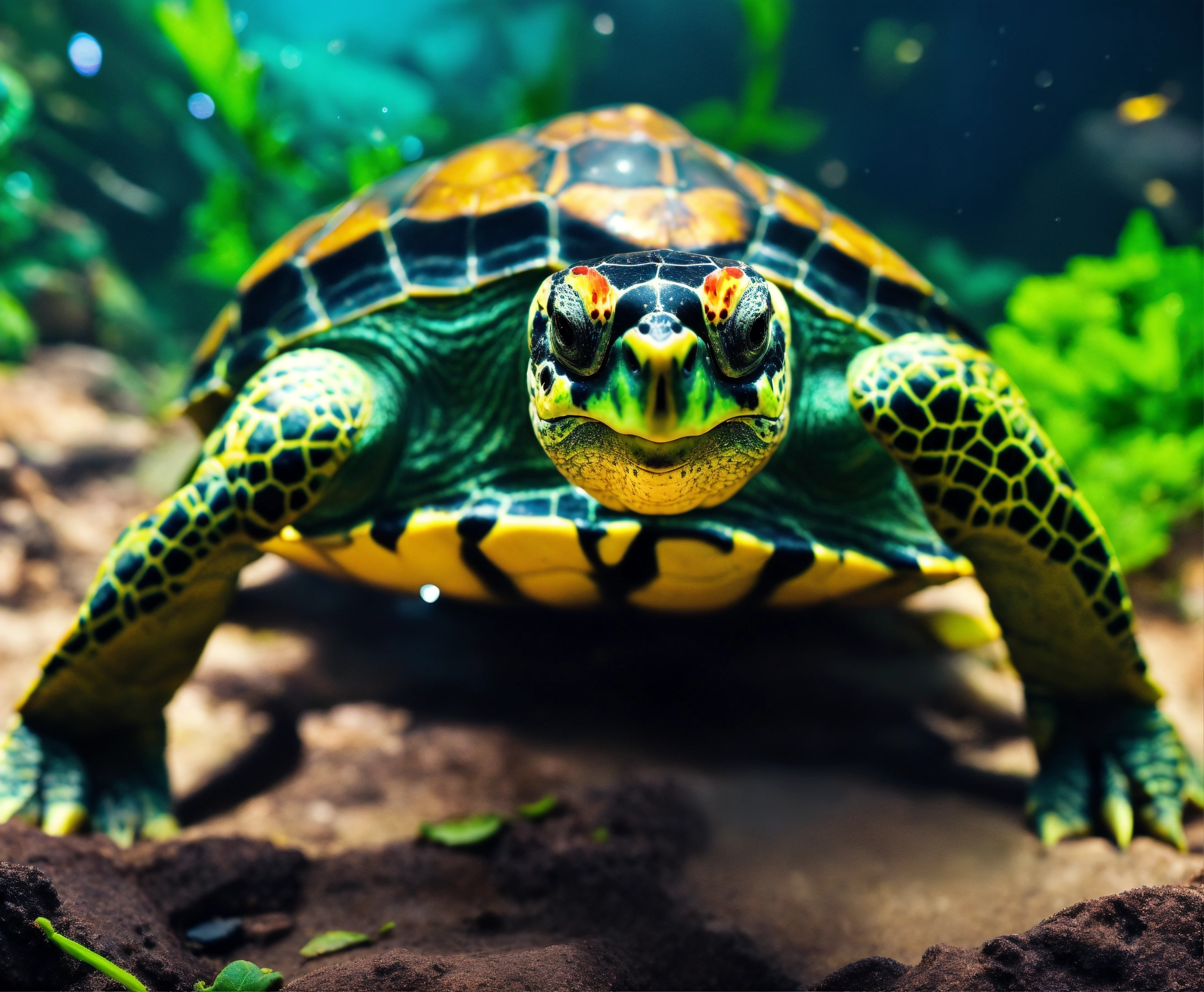Please picture turtles adopting new technologies such as computer, phones, screens fitbit and look happy in a realistic manner.