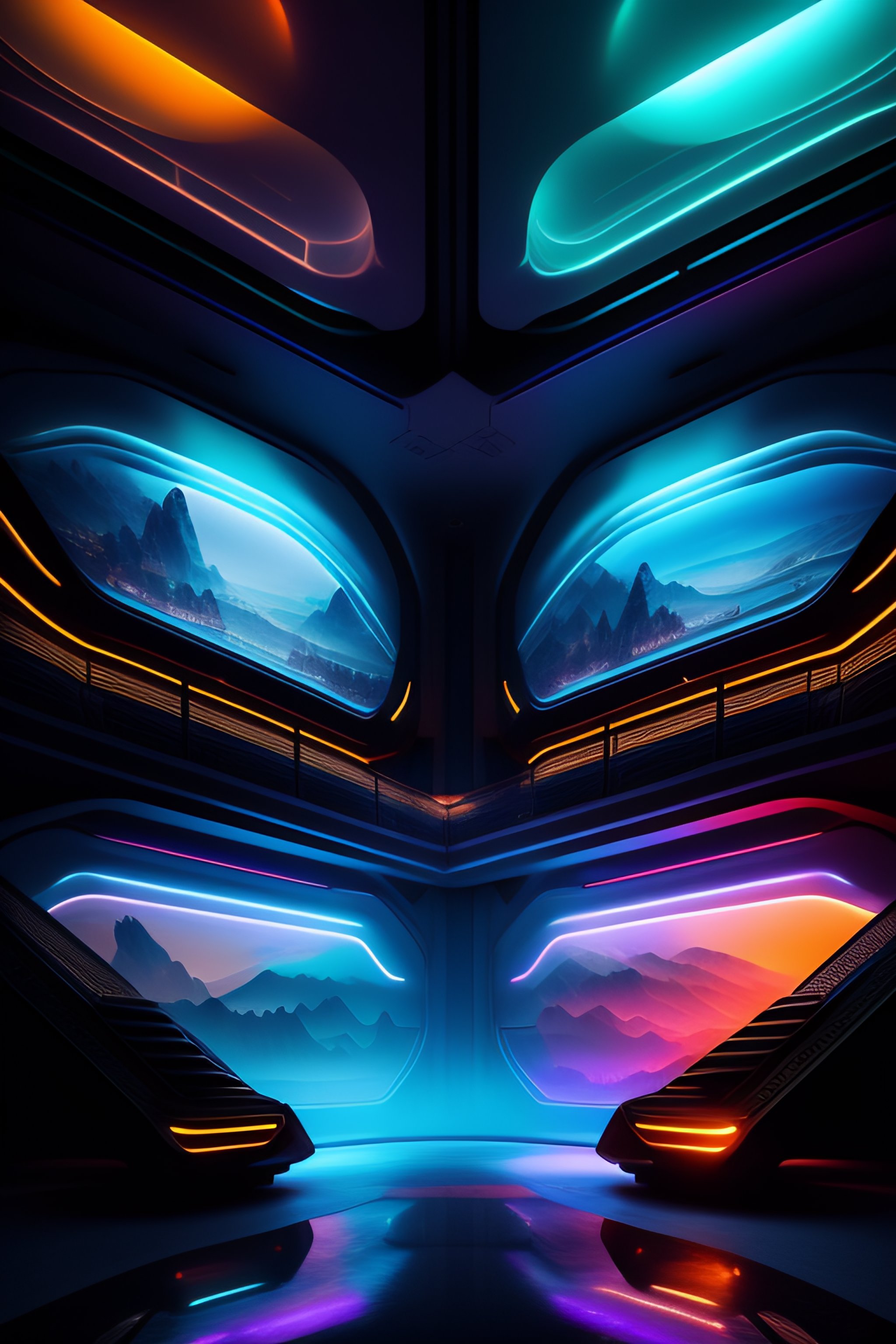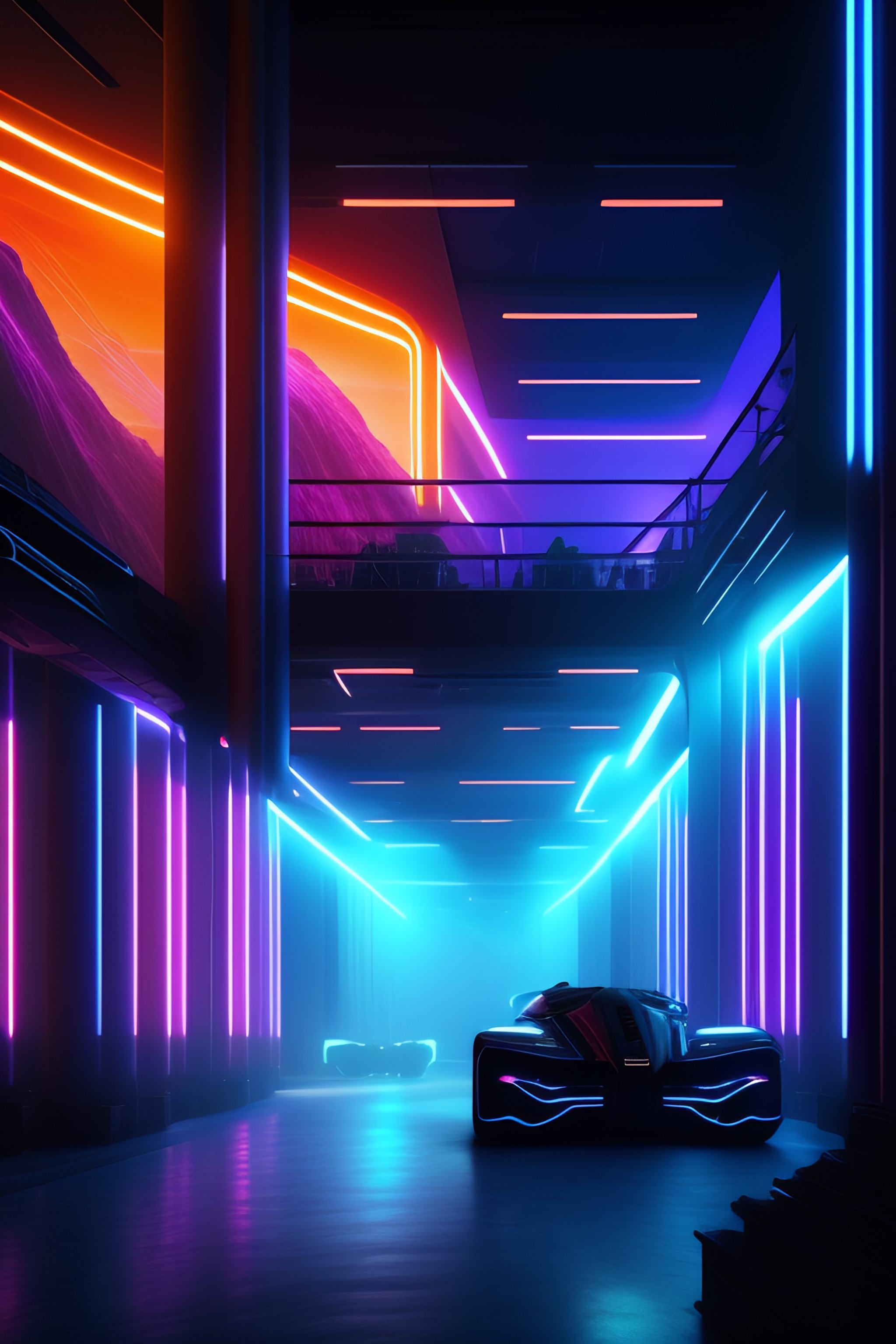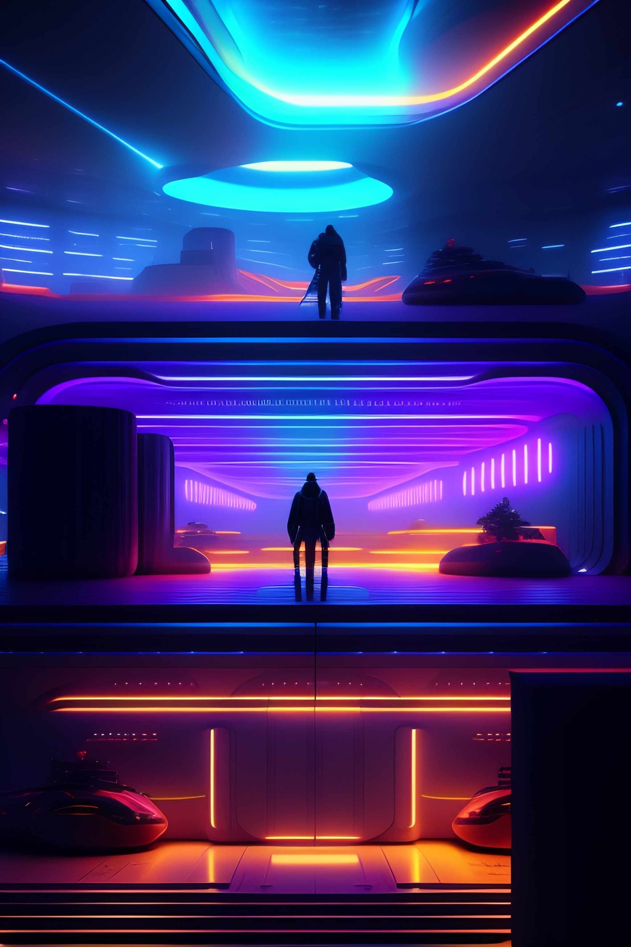 A indoor immersive high tech theme world with led and dark rider about cyberpunk and future