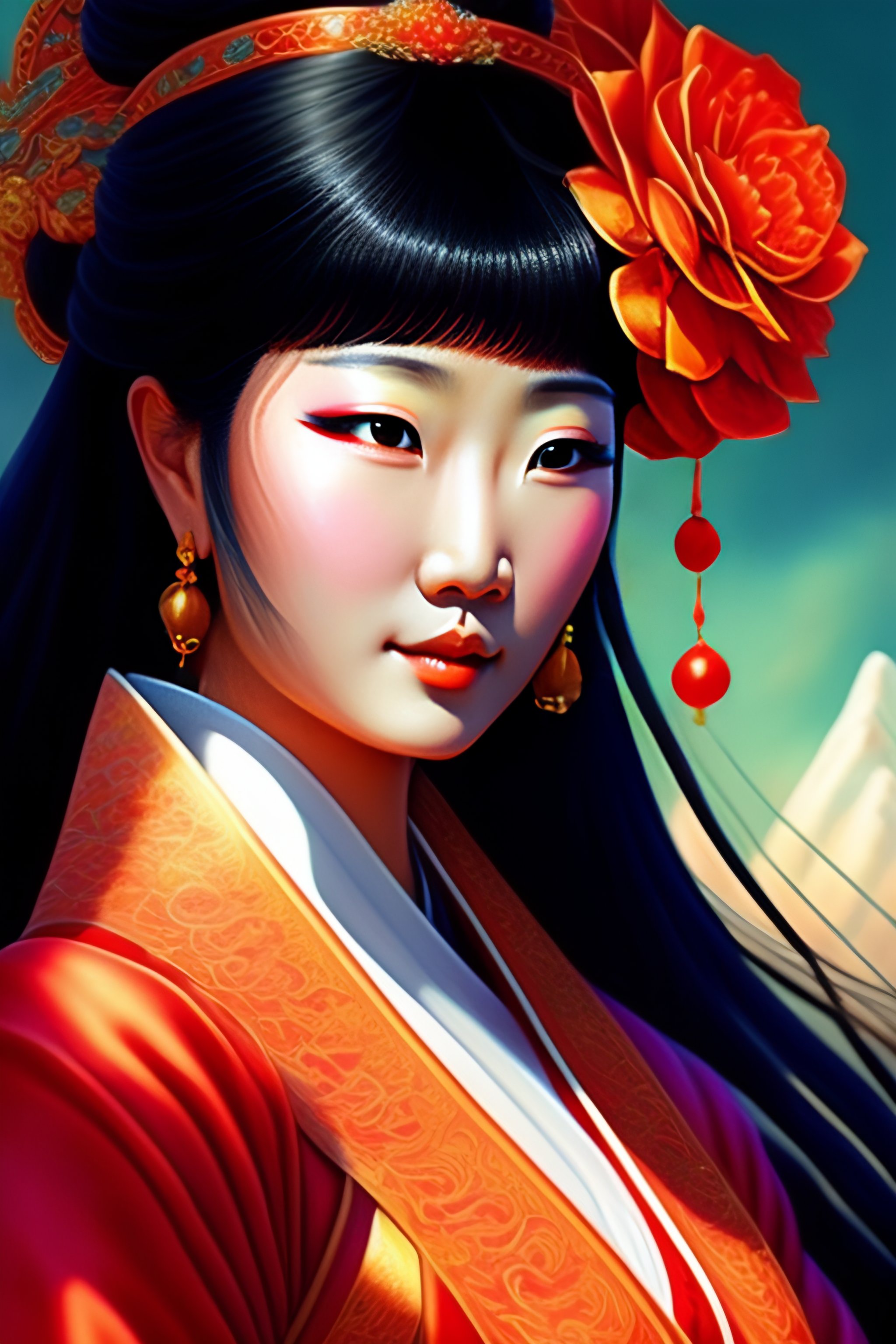 Detailed paint of korean goddess, highly detailed paiting by naoko takeuchi, 8k, royal paiting, dynamic lighting