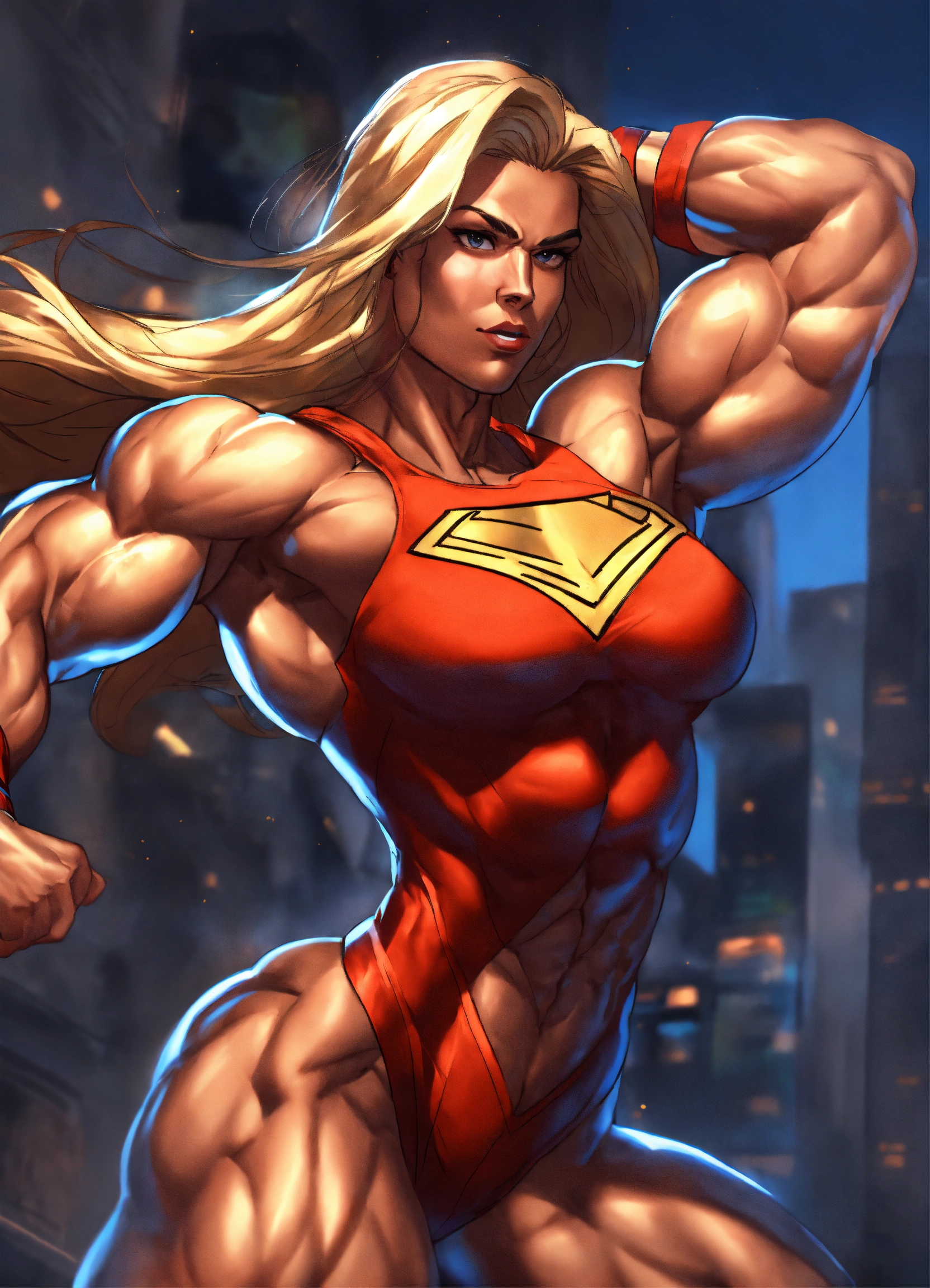 (((muscular))) supergirl, huge biseps, huge deltoids, (((bodybuilder body))), body bigger than superman, stronger than hulk, impressive musculature, rippling muscles