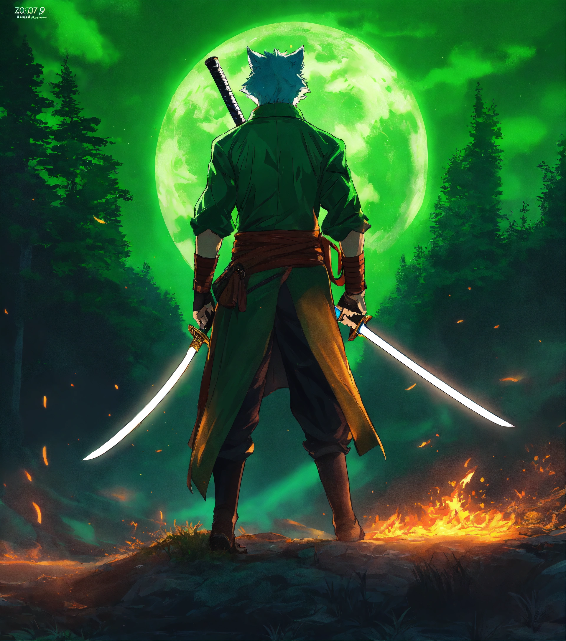 Wolf draw in the style of roronoa zoro from one piece with the three sabers, ultra detailed, 4k, with the color of green which stands out perfectly https//lexica.art/prompt/f7d3190b-f8af-42d9-8bde-a059e70963f9