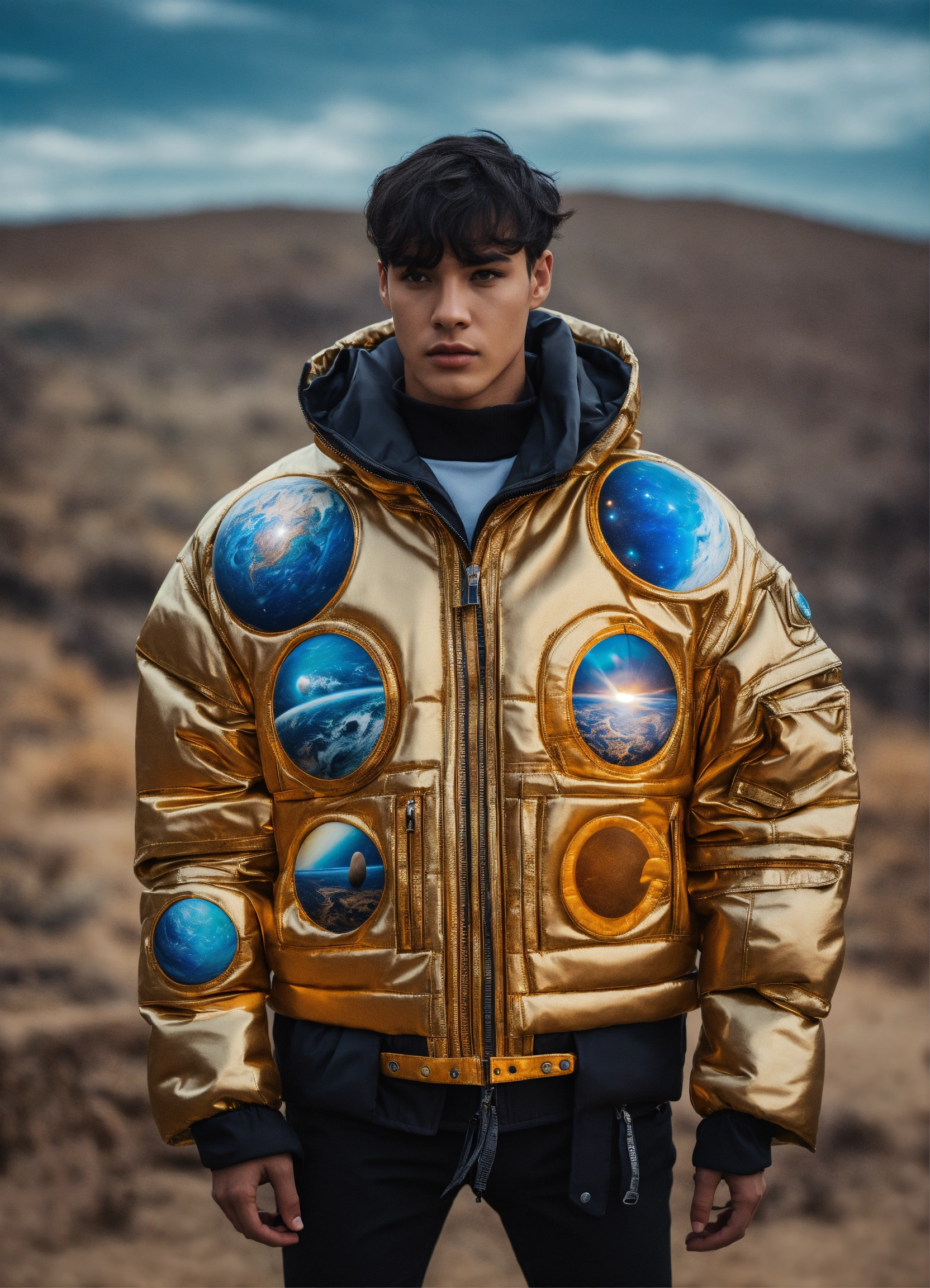 Futuristic jacket in different dimensions and planet