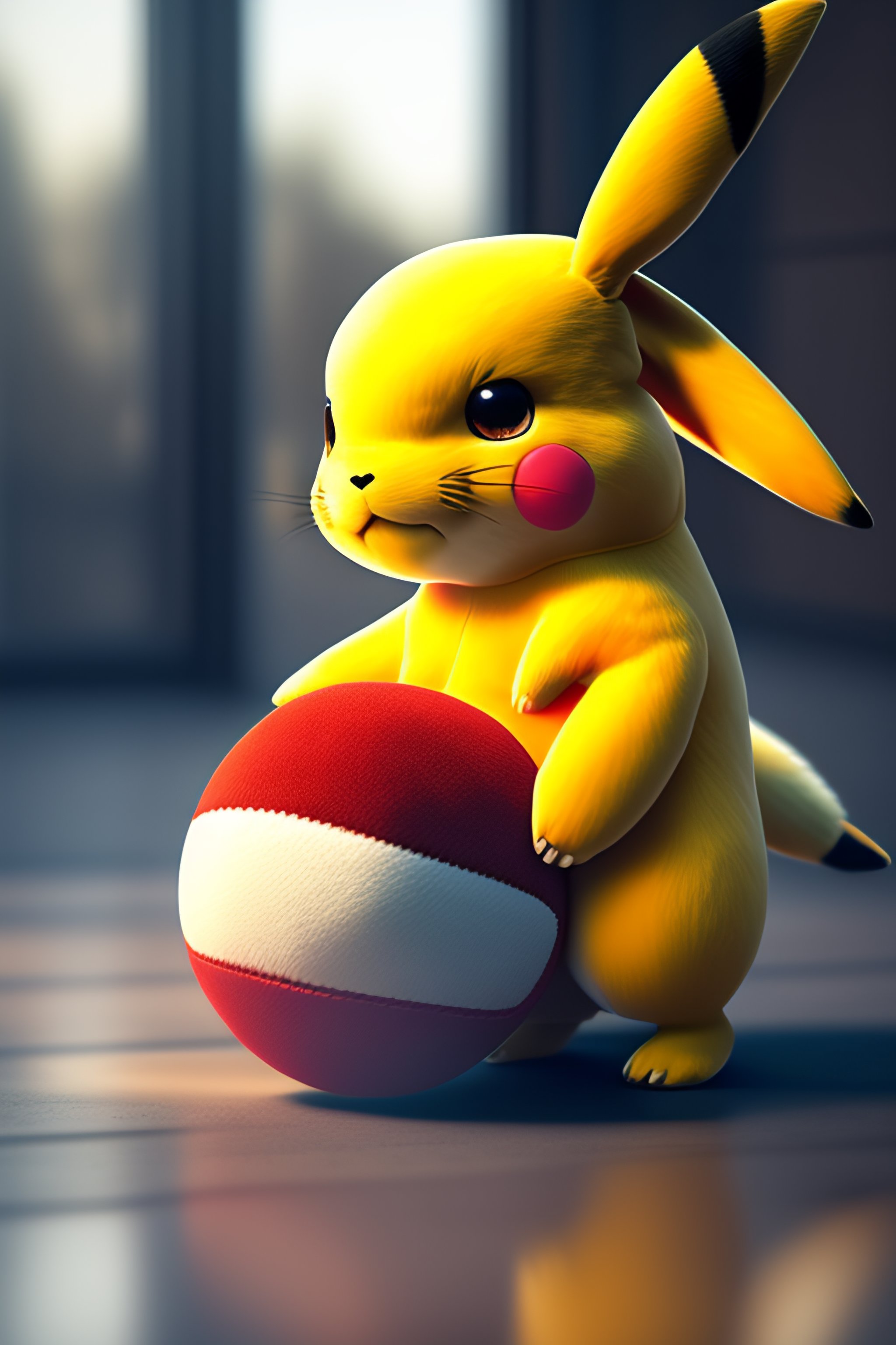 Plush pikachu holding a ball